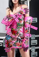 Tattoo Belt Gloves - Pink