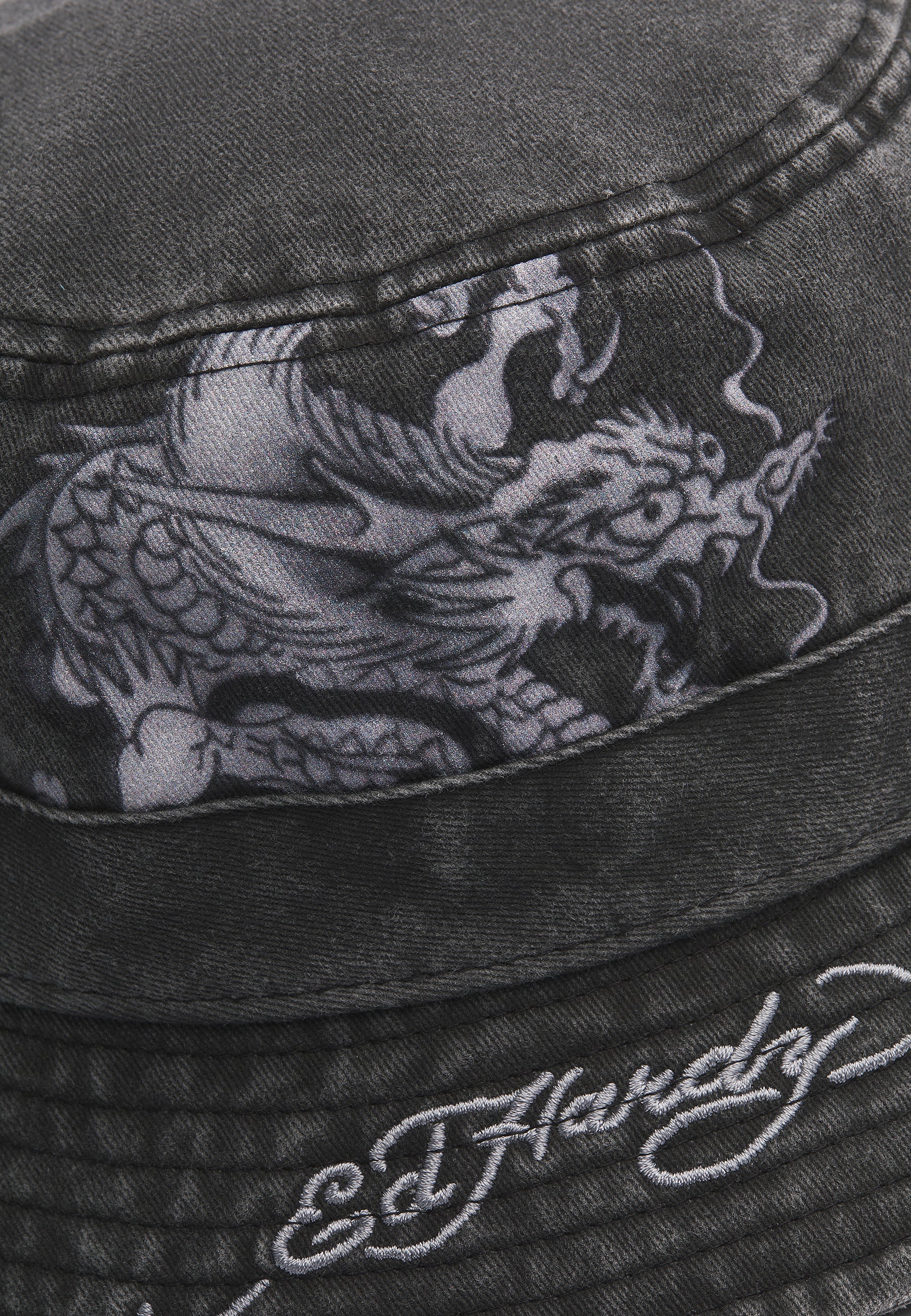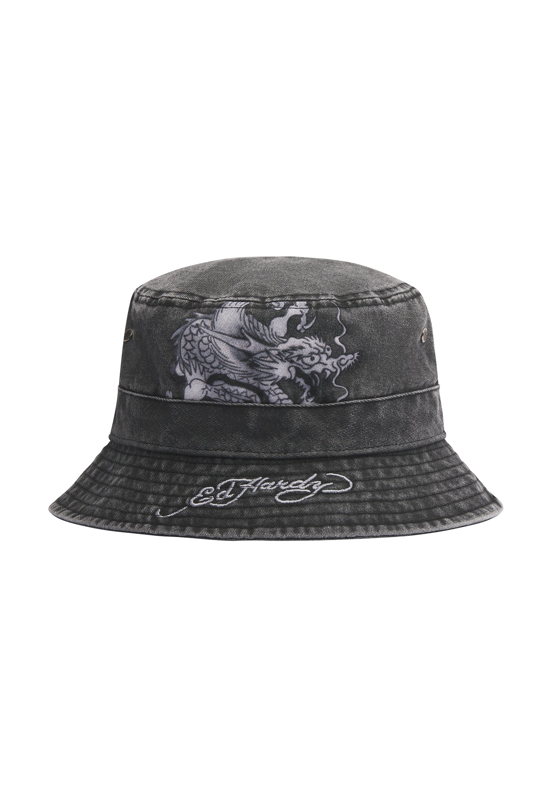 Unisex Crawling Dragon Graphic Acid Wash Bucket Hat - Charcoal