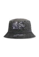 Unisex Crawling Dragon Graphic Acid Wash Bucket Hat in Charcoal