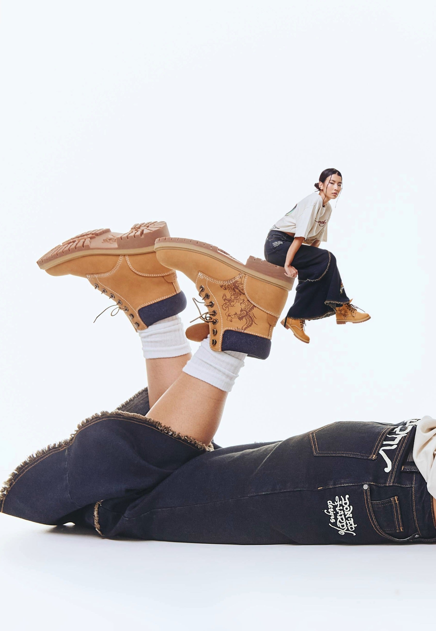 - A vivid dragon pattern is carefully carved on the side of the shoe.