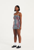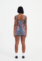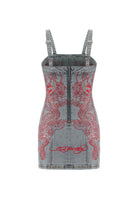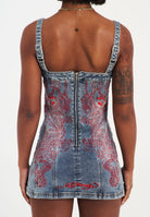 Womens Dragon Flame Denim Mini Dress - Mid Blue