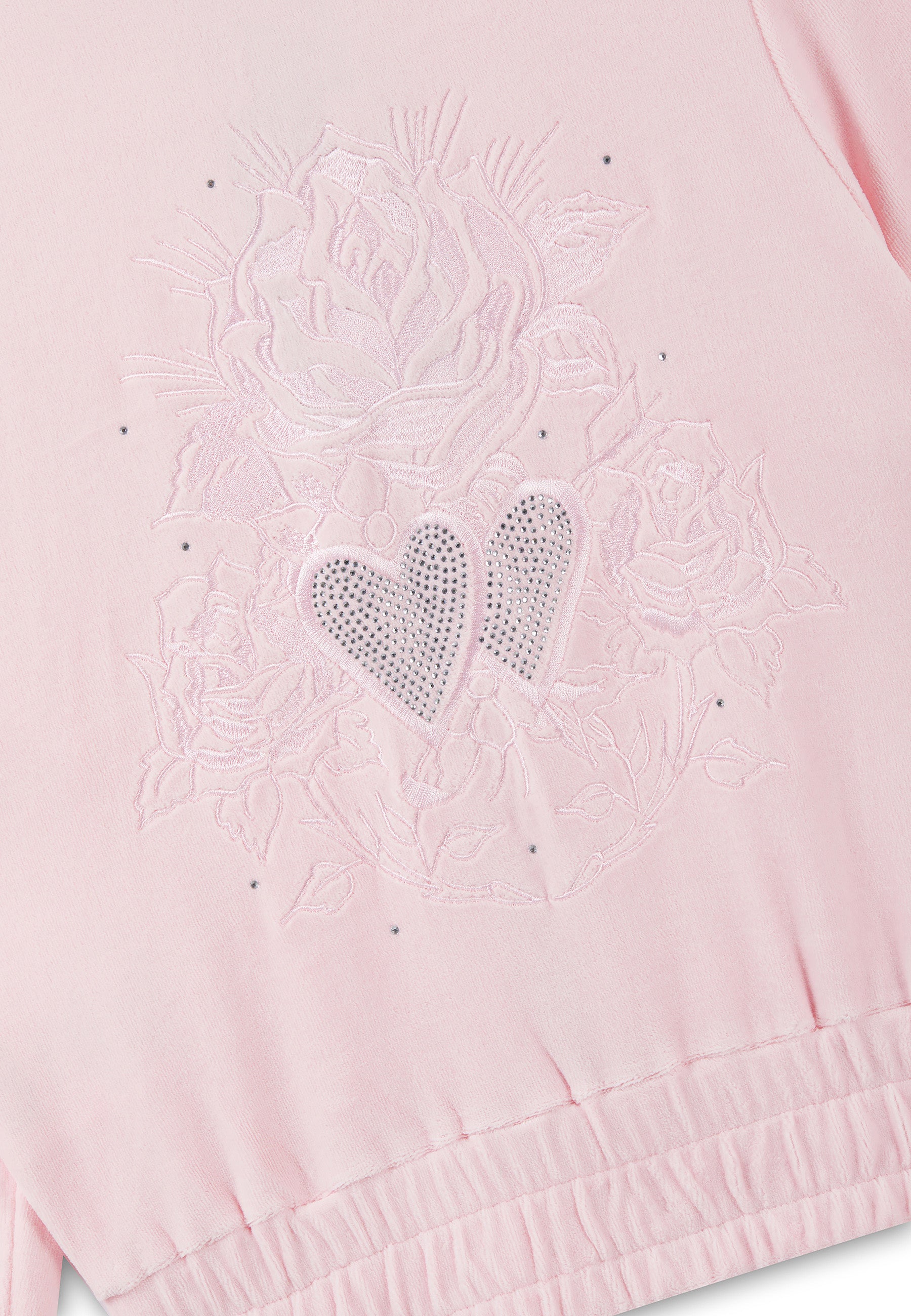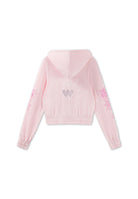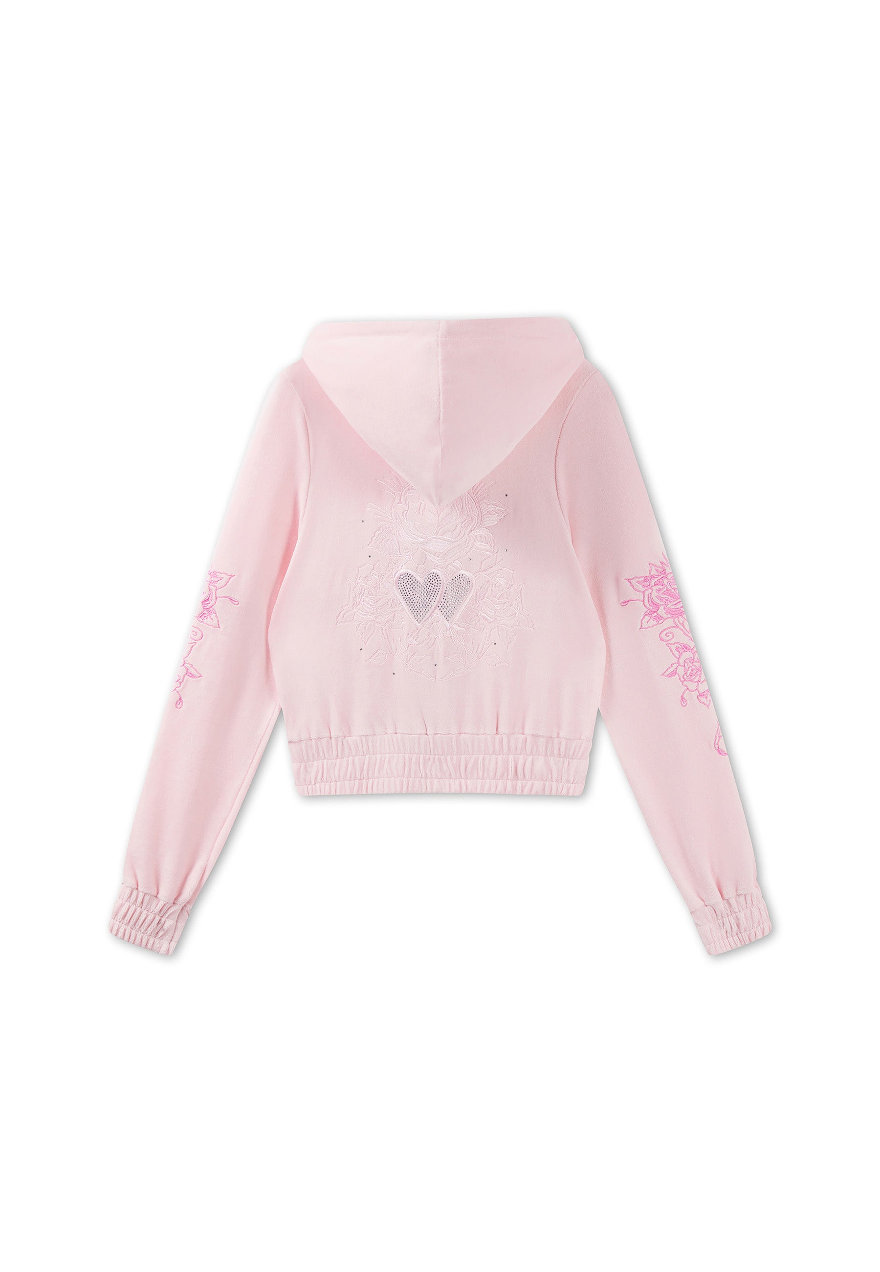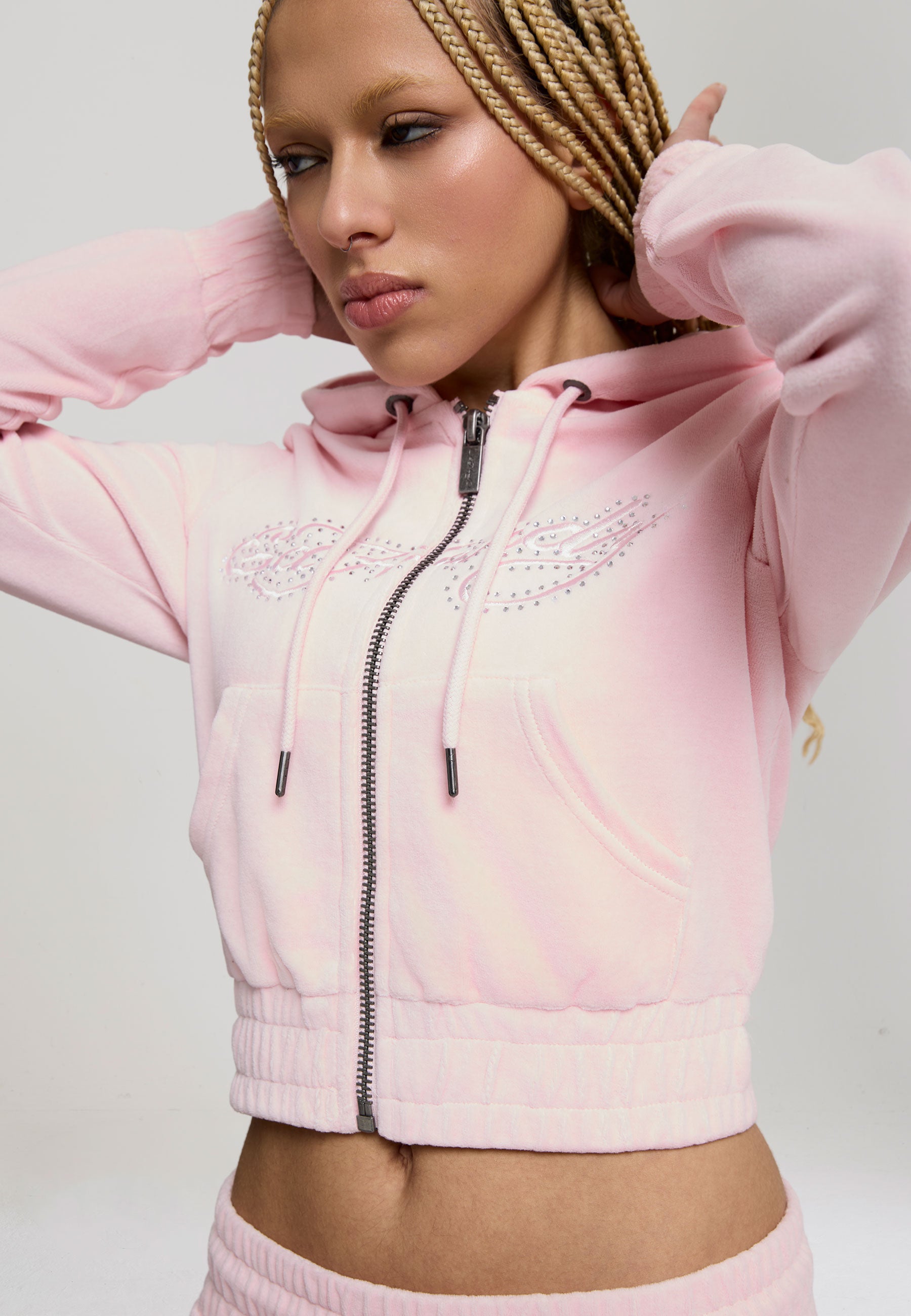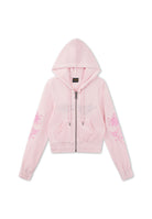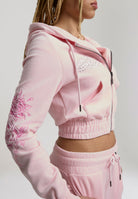 Womens Love And Thorns Diamante Velour Fitted Cropped Hoodie - Pink