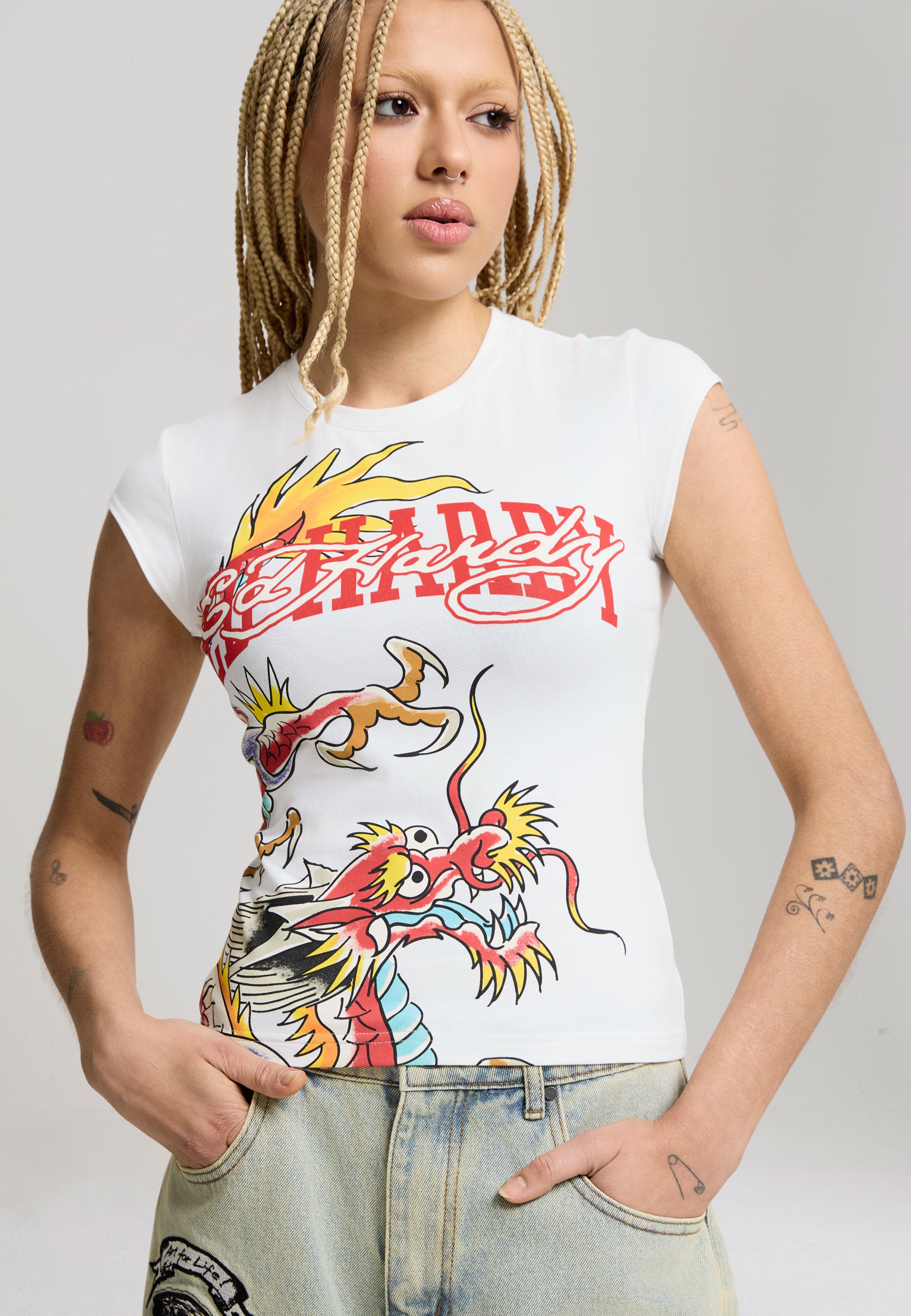 Womens Varsity Dragon Cap Sleeve Tee - Ecru