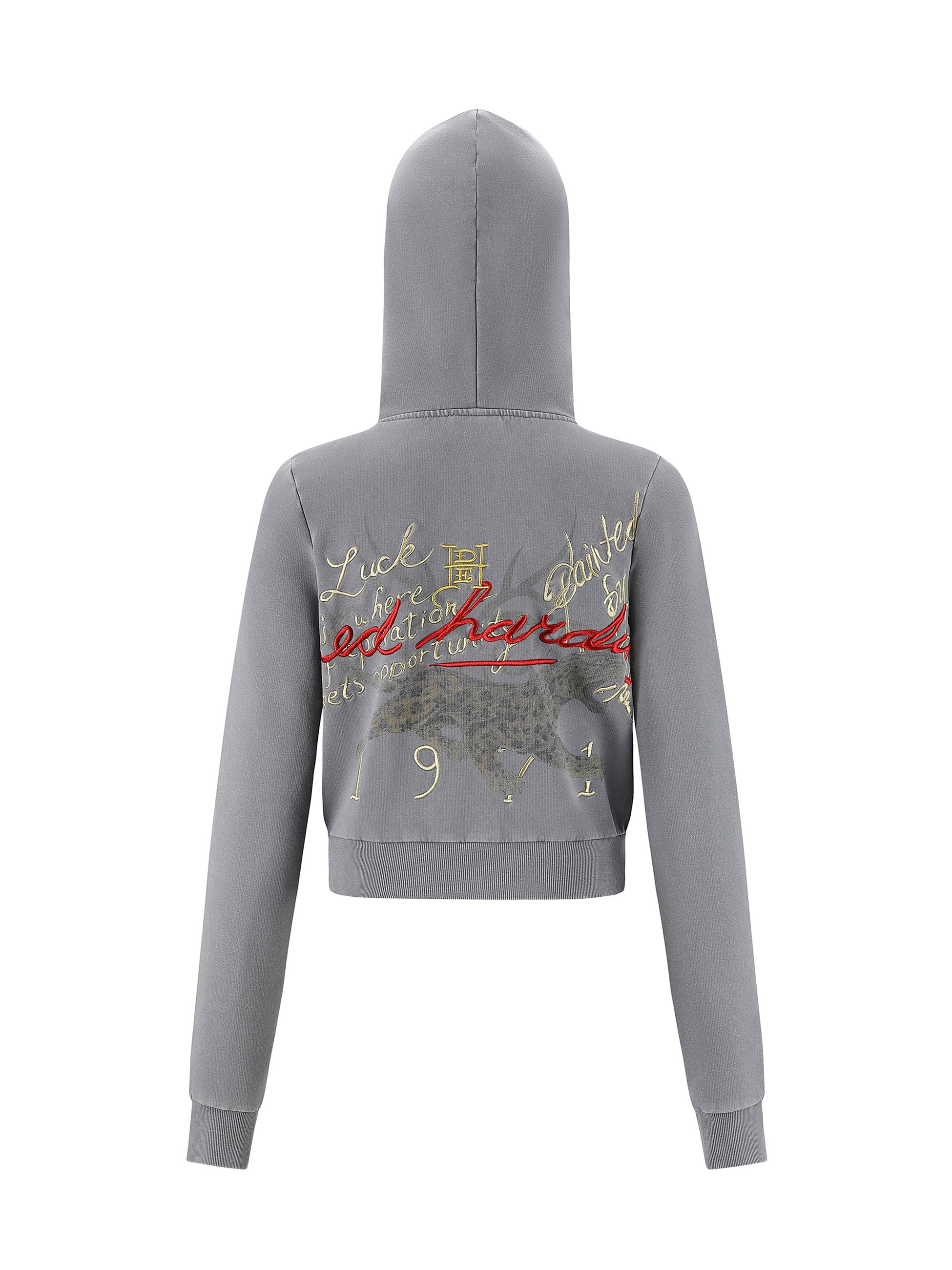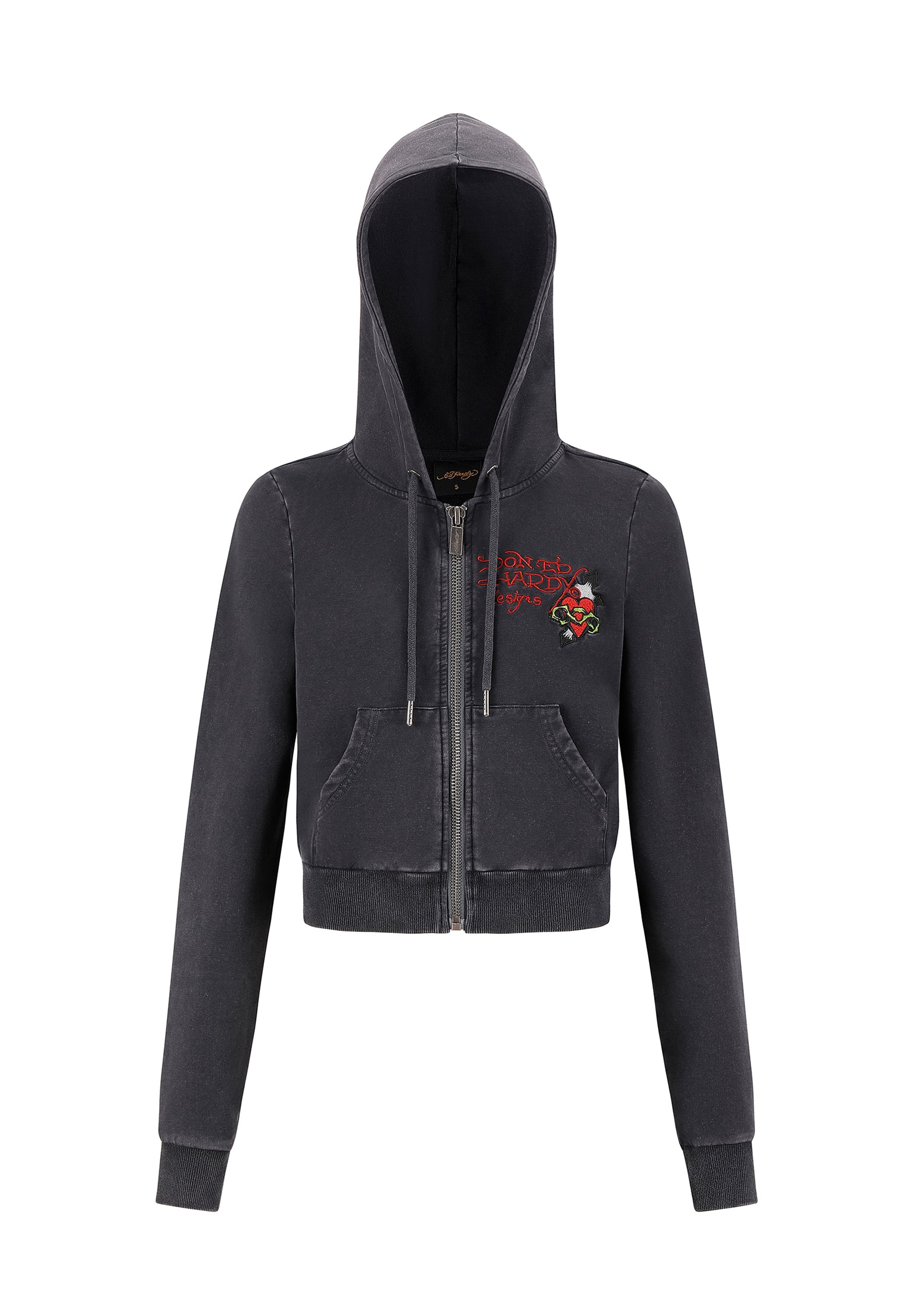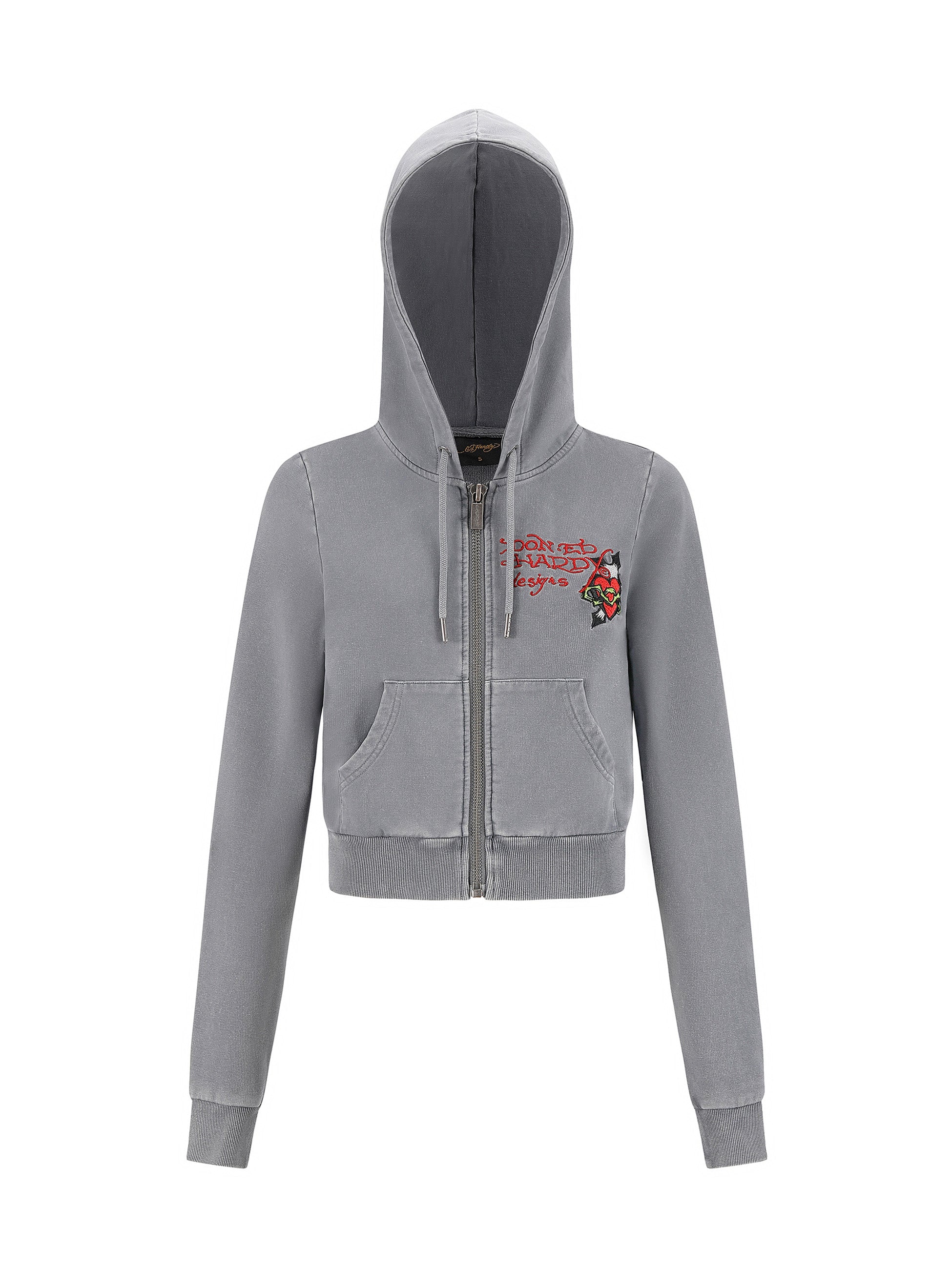 Womens Flaming Tiger Cropped Zip Thru Hoodie - Charcoal