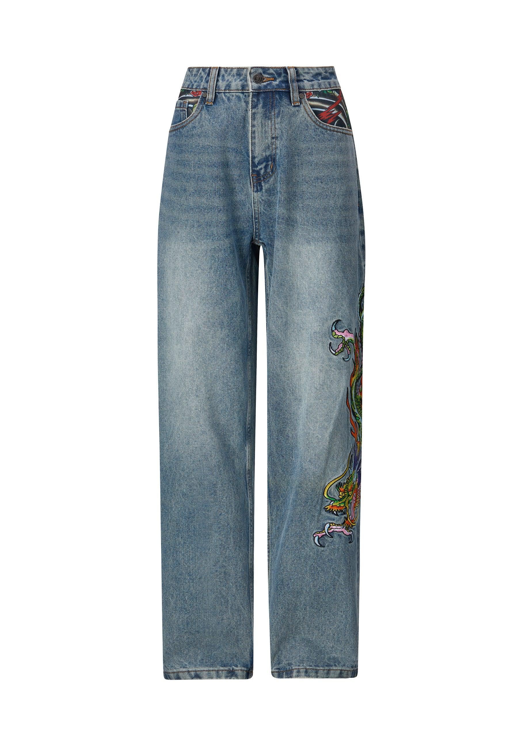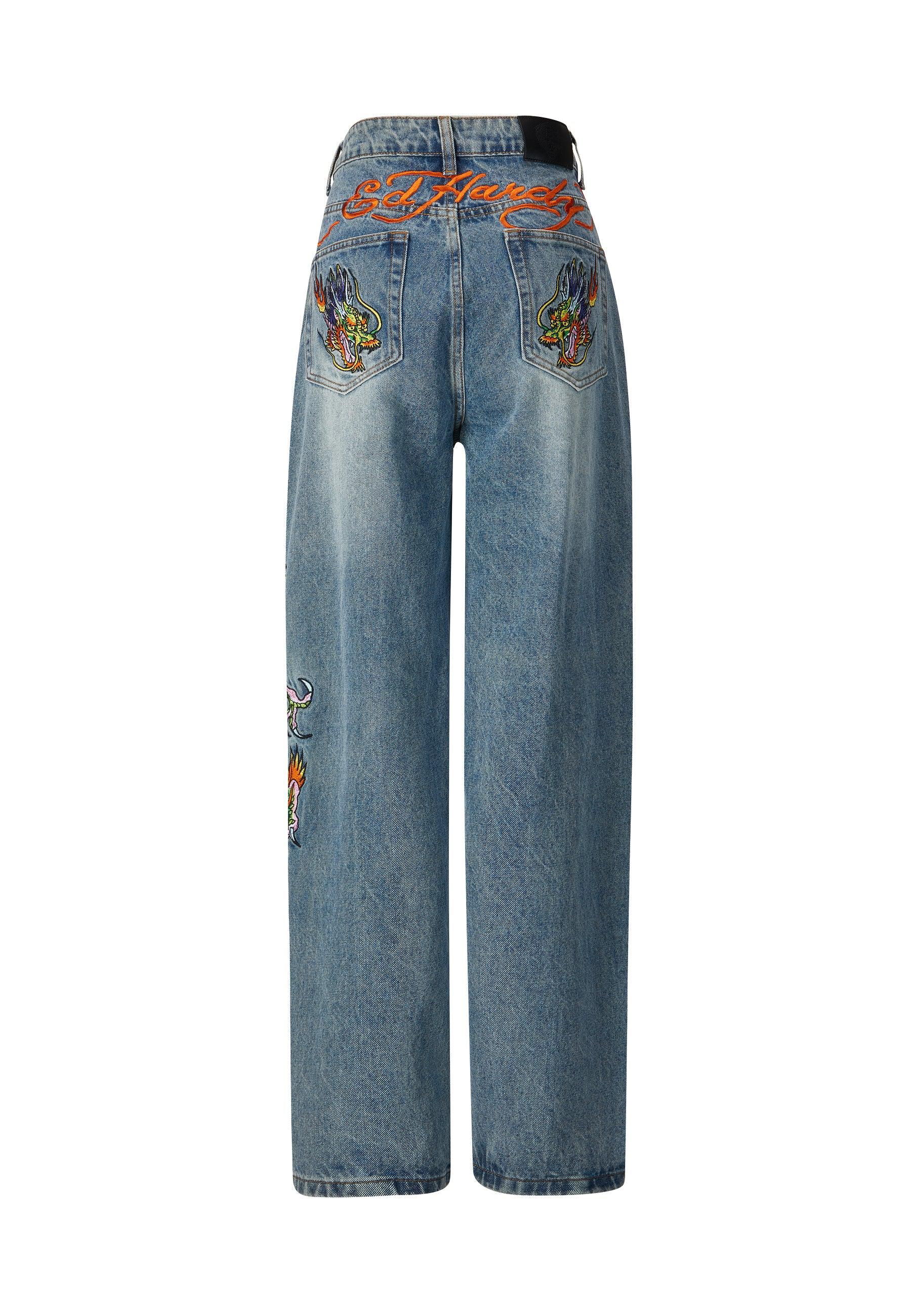 Pantalones vaqueros de mezclilla de ajuste relajado para mujer Crawling Dragon - Bleach