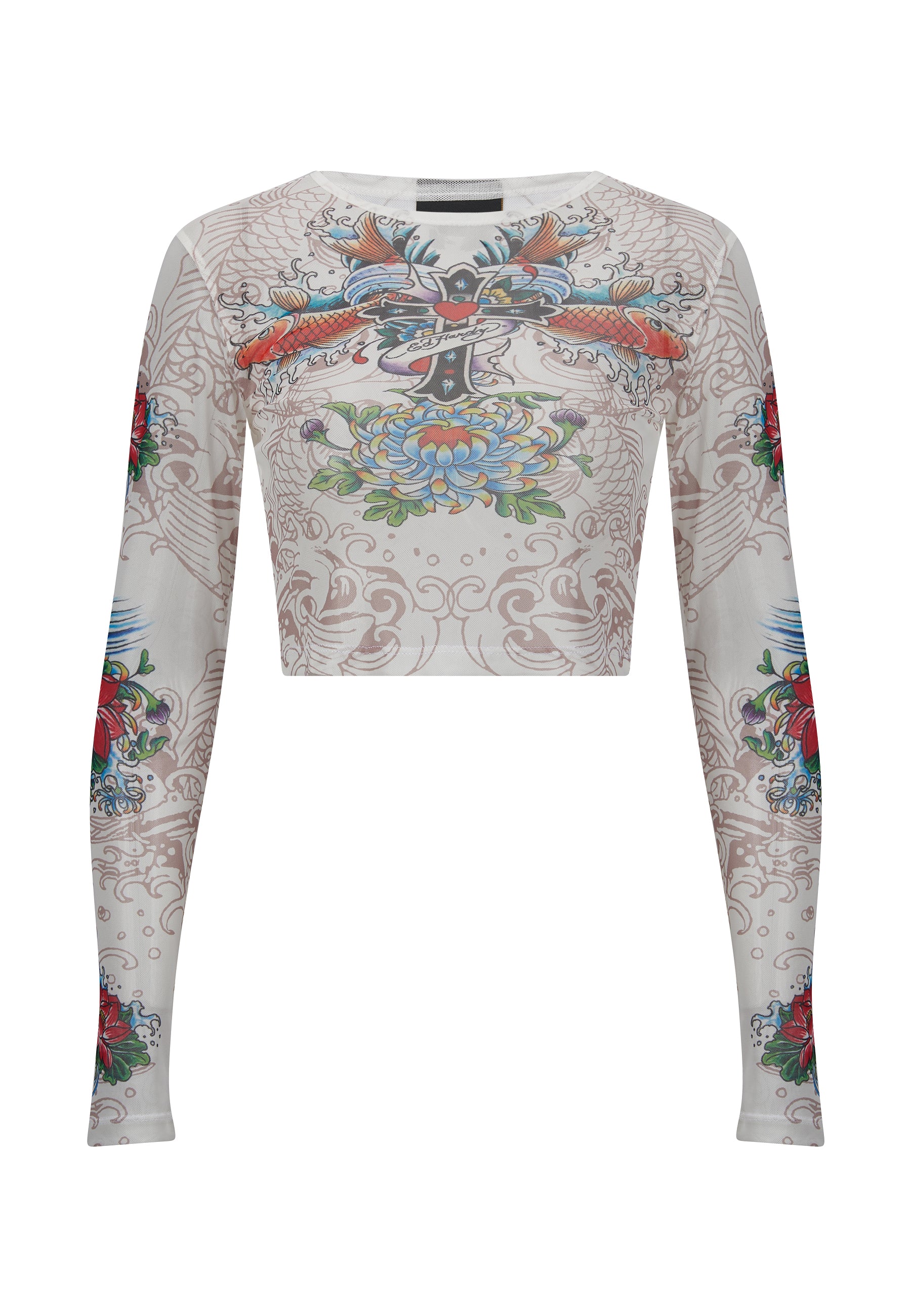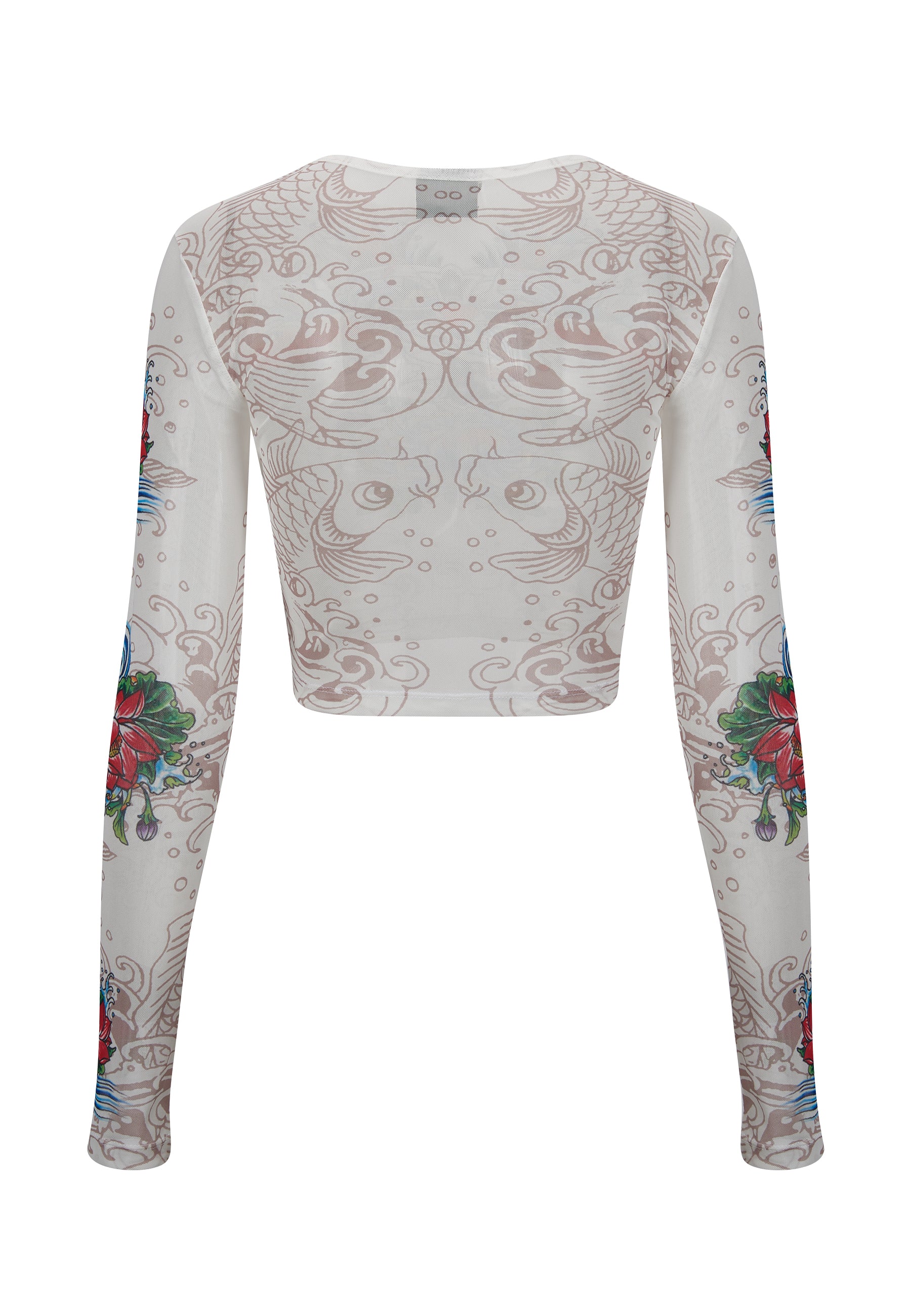 Camiseta de manga larga Koi Paradise Mesh para mujer - Blanco