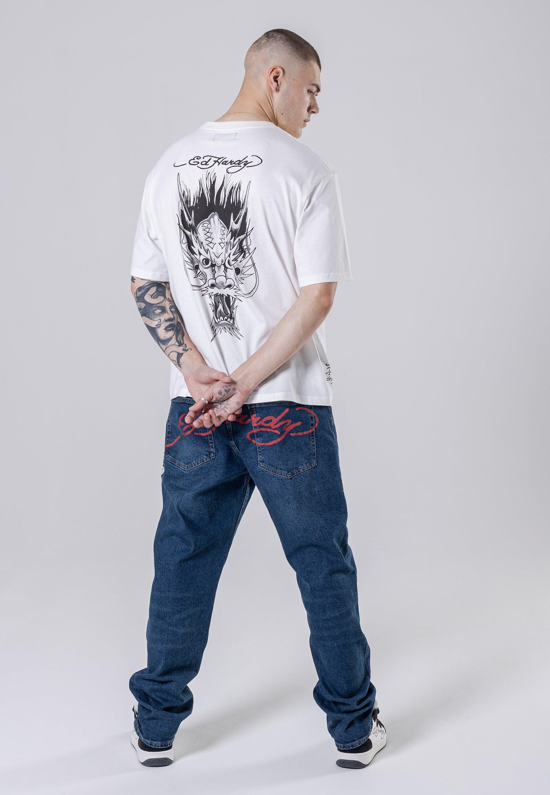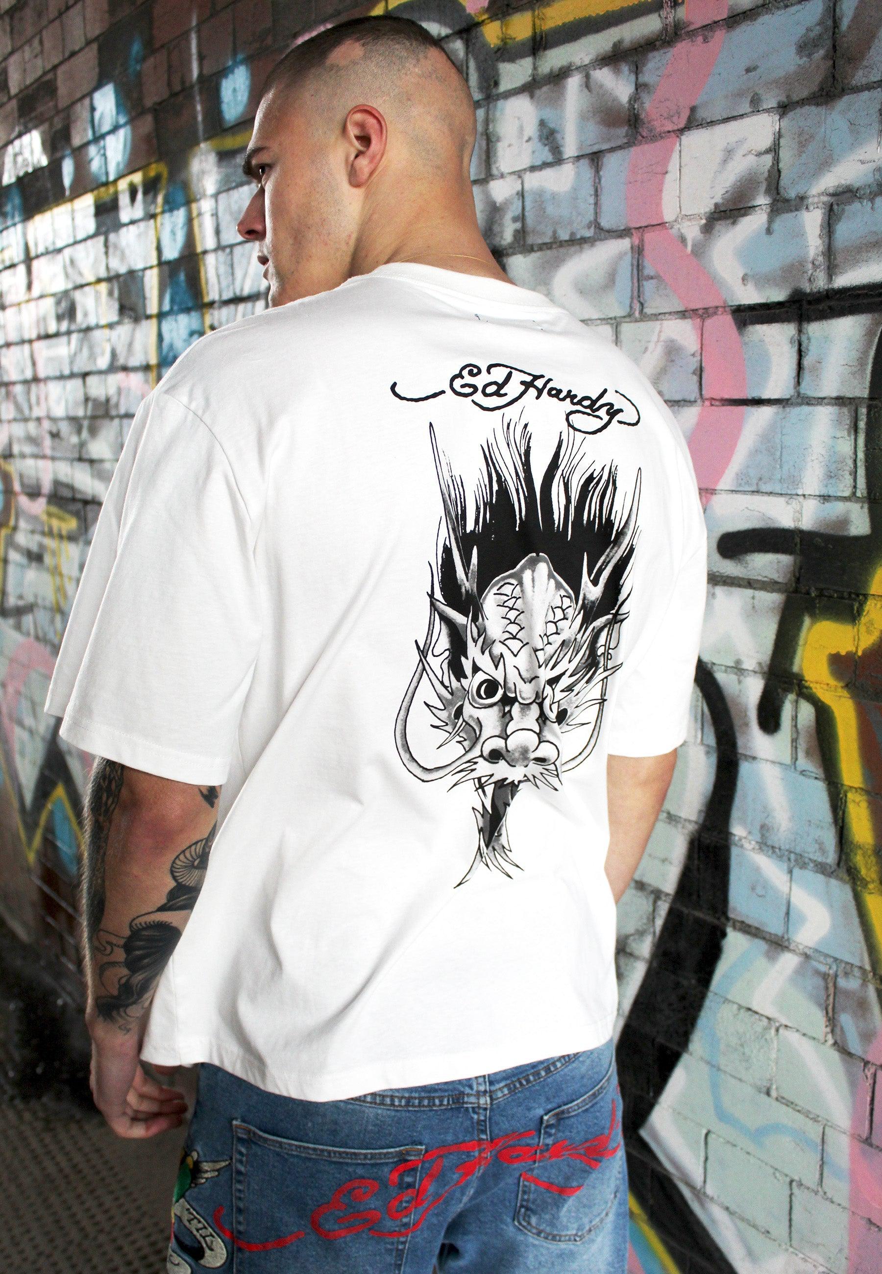 La camiseta monocromática Drags-Back-Tonal en blanco presenta el estampado de cabeza de dragón original de The Don en un estampado en escala de grises de alta definición en un estampado a gran escala en la espalda, así como la firma en el pecho y la cadera.