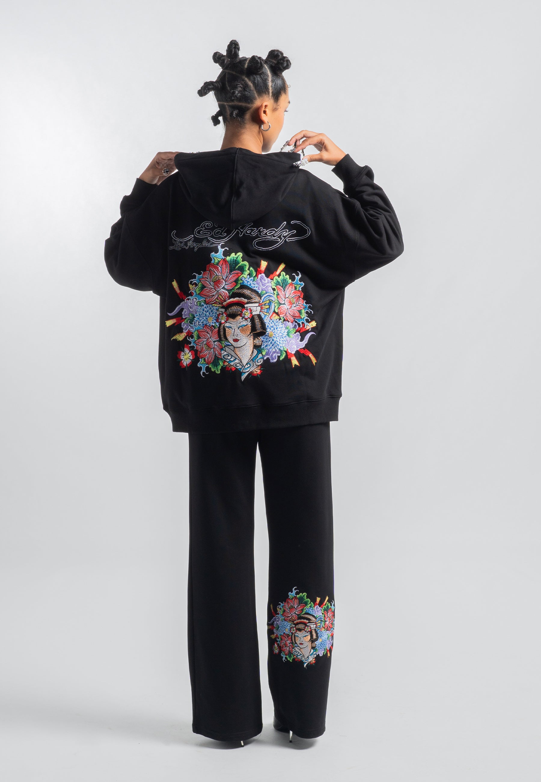 La nueva colección de Ed Hardy entrelaza los hilos de la nostalgia vintage y el toque contemporáneo, presentando una declaración audaz y sin complejos para los vanguardistas. y creció en el Geisha World Joggers.
