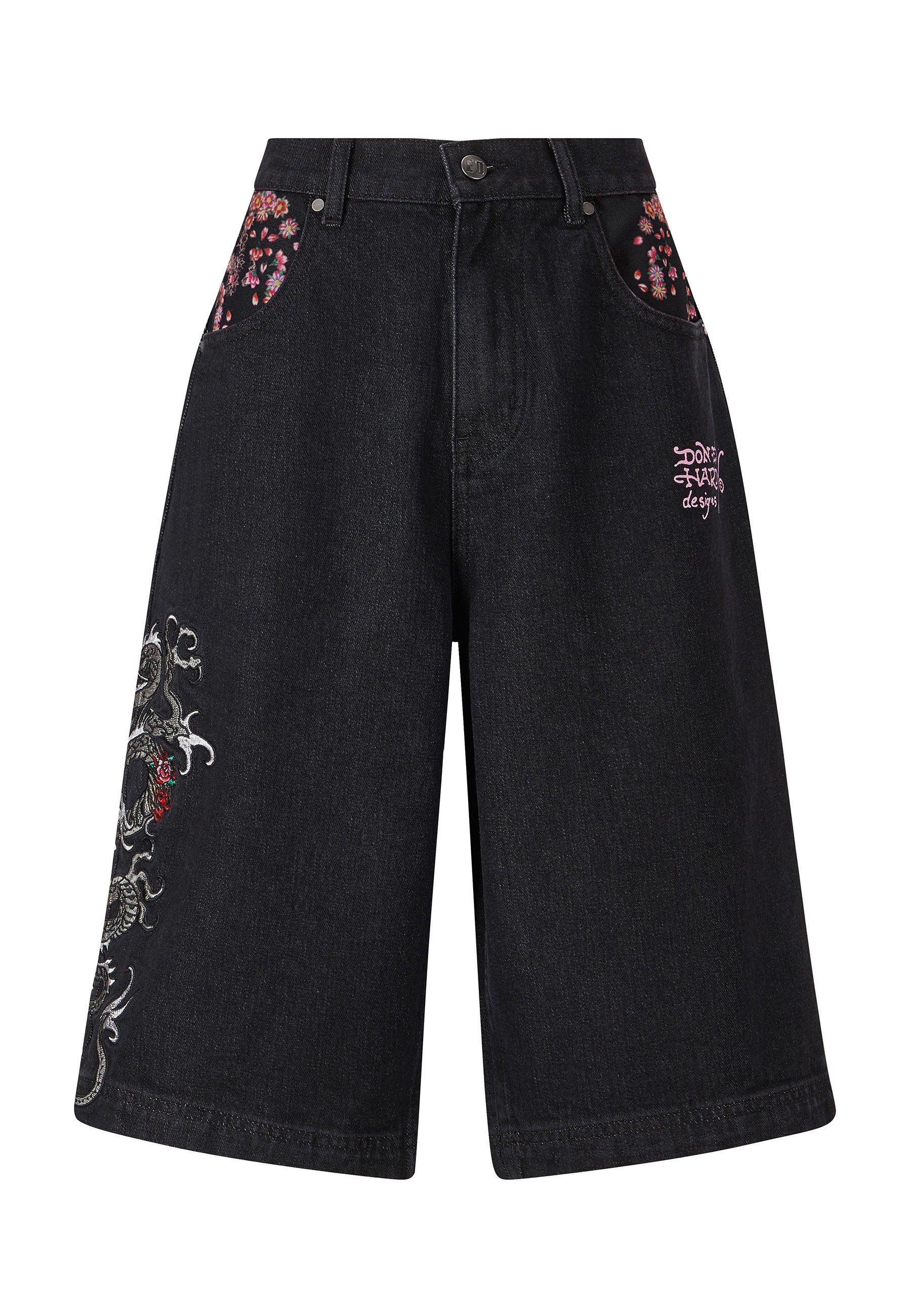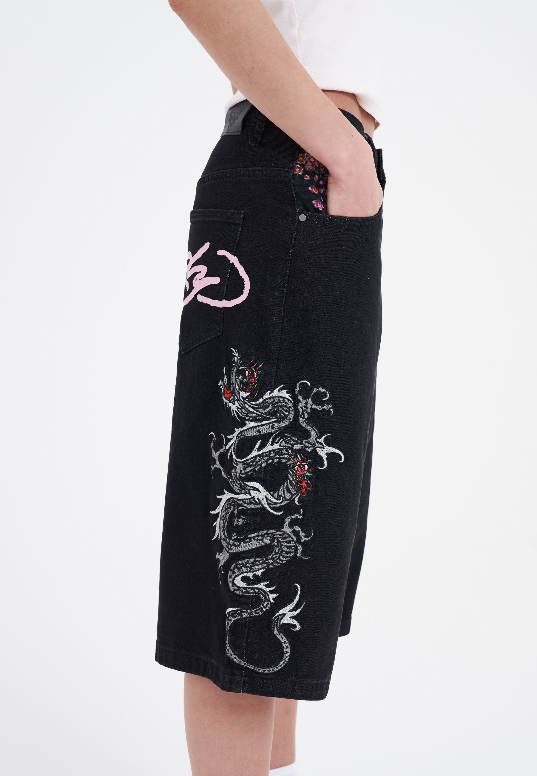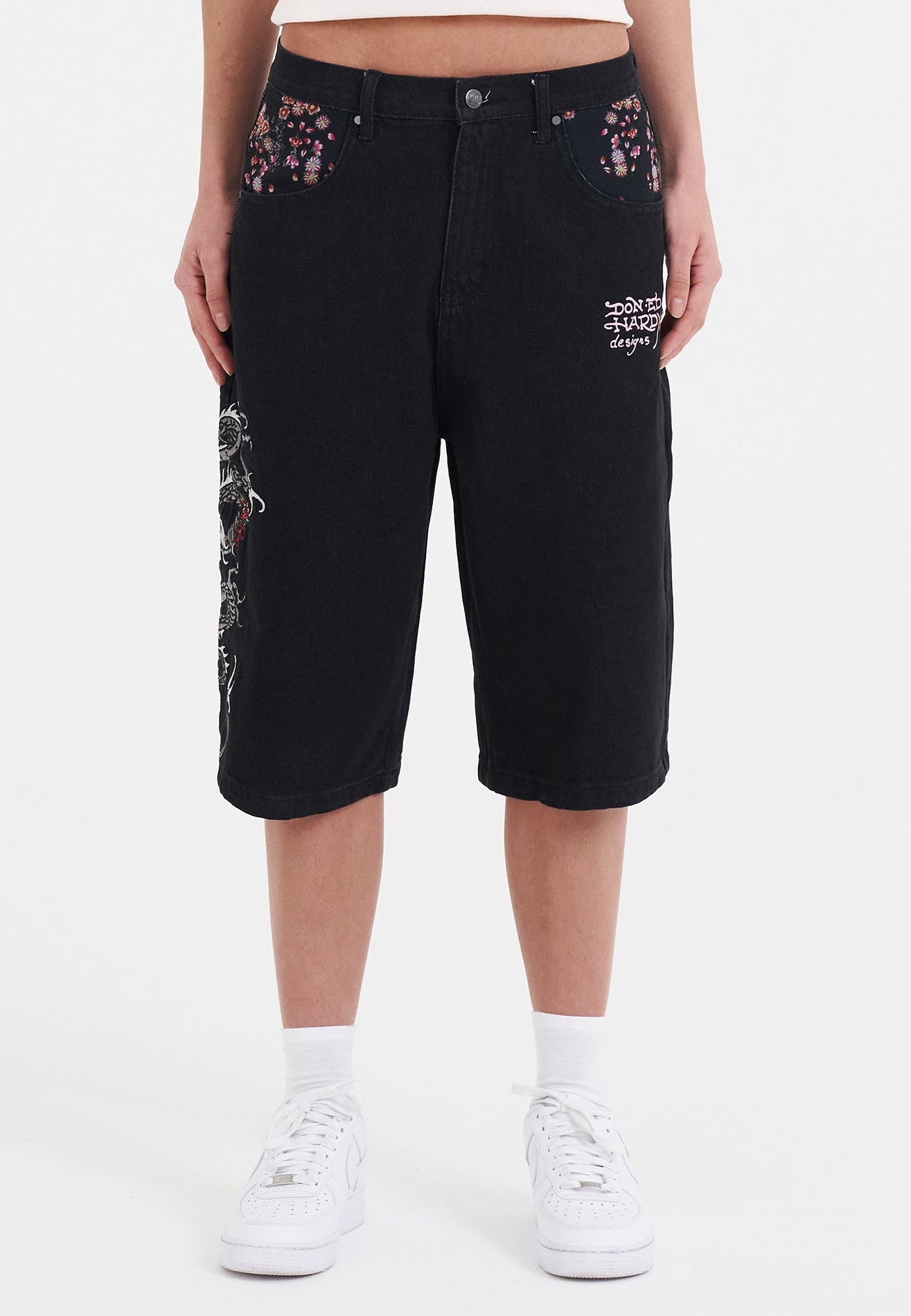 Pantalones cortos tipo jorts de mezclilla relajados Grey Dragon para mujer - Negro
