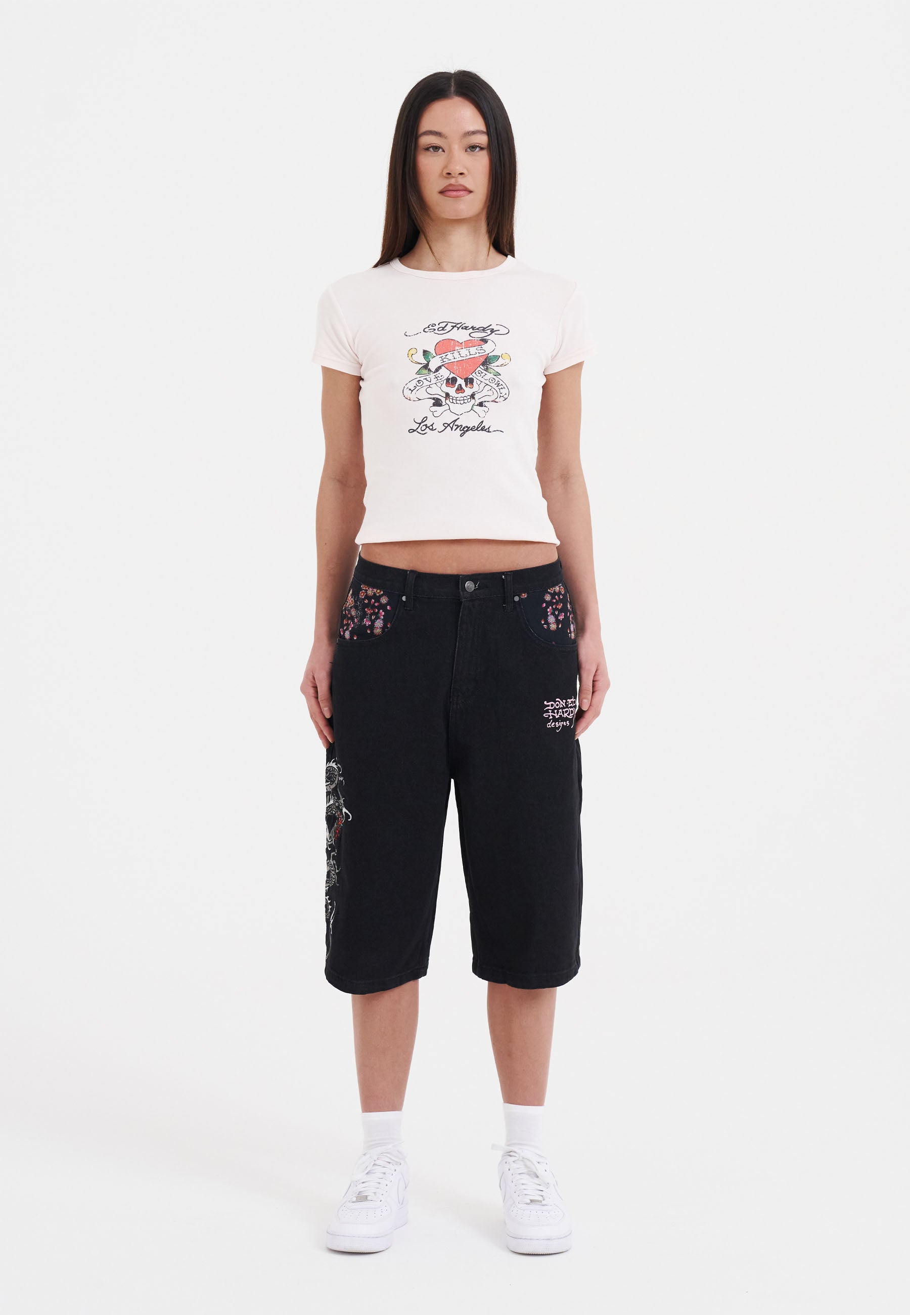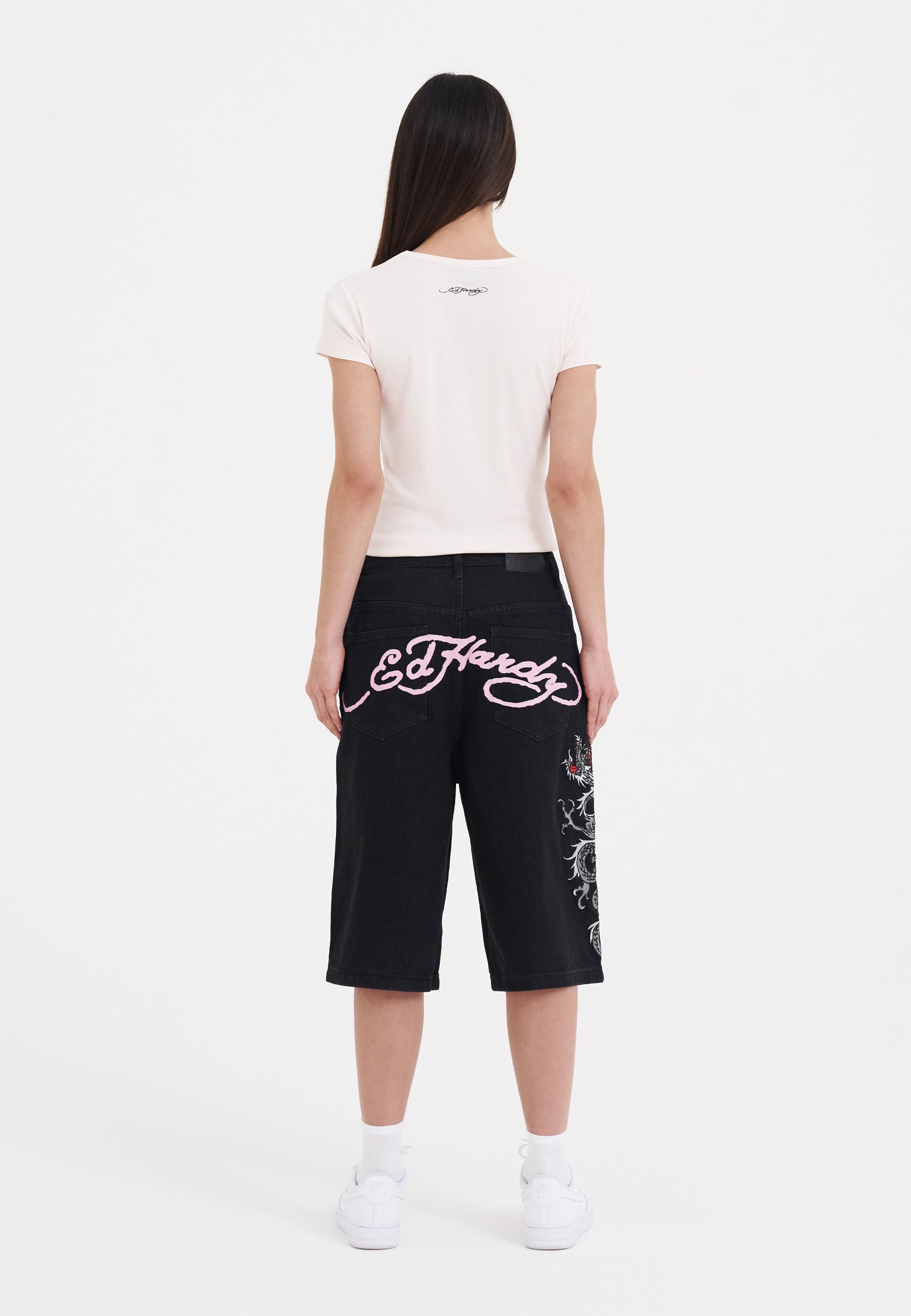 Con bordados a todo color de alta definición en el muslo, impresión digital en los bolsillos y la reconocible firma de Ed Hardy en la parte trasera, este par es un elemento básico del streetwear.