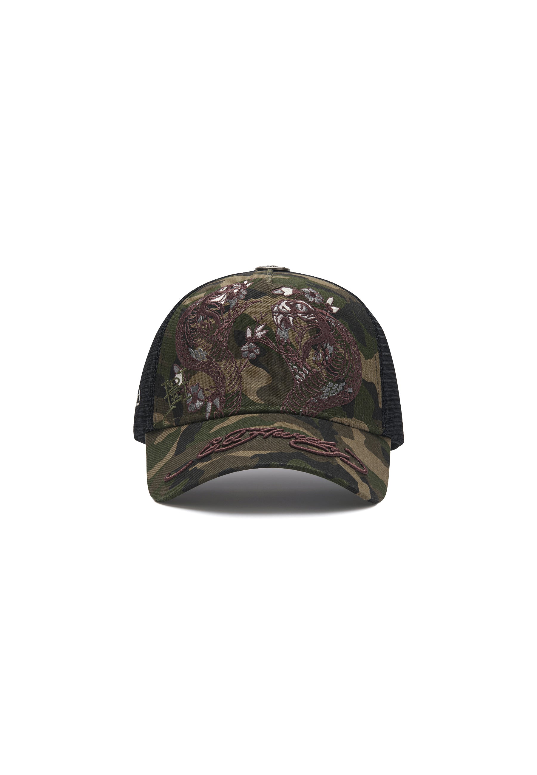 Unisex 2 Snakes Embroidered 5 Panel Trucker Cap - Camo