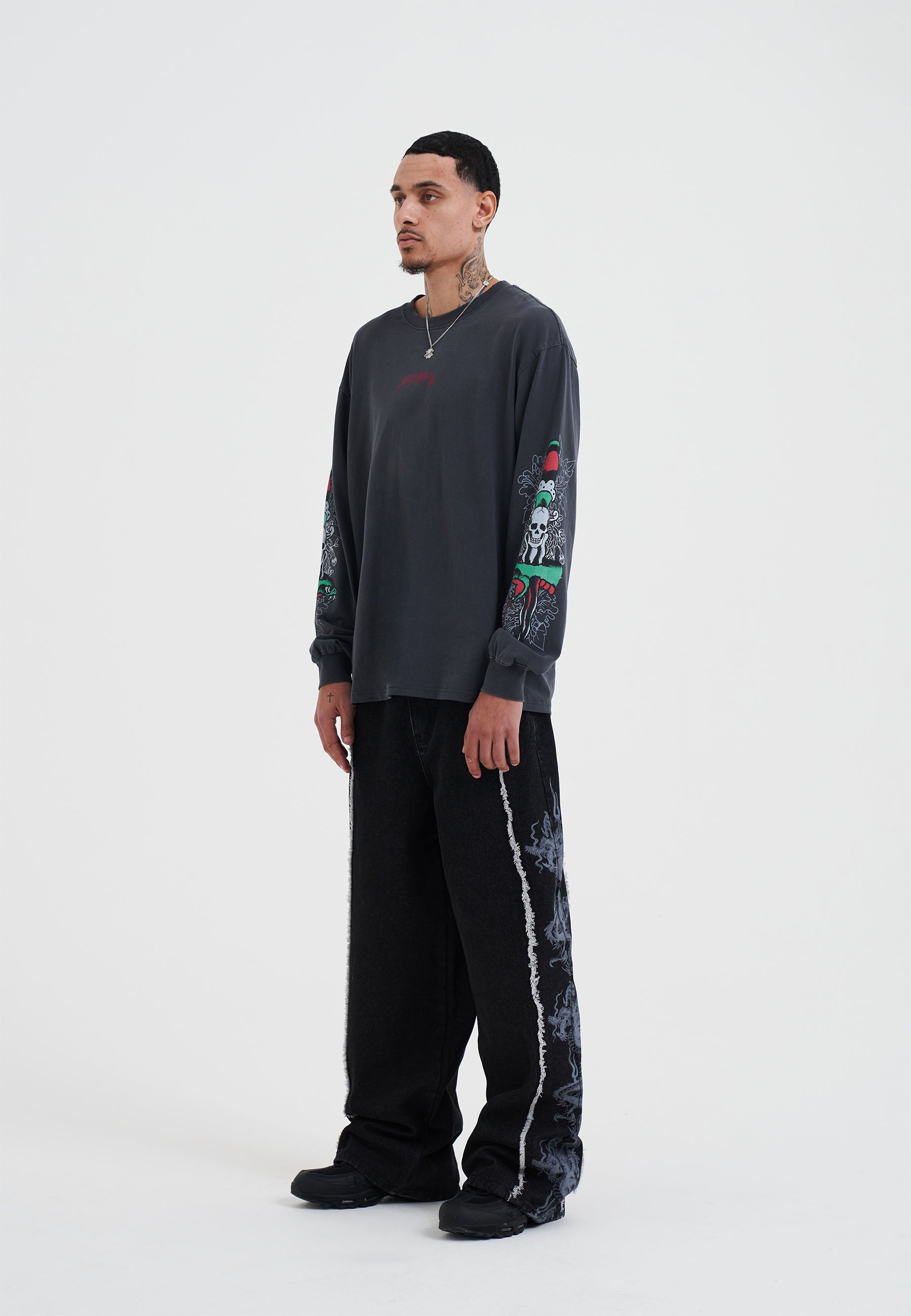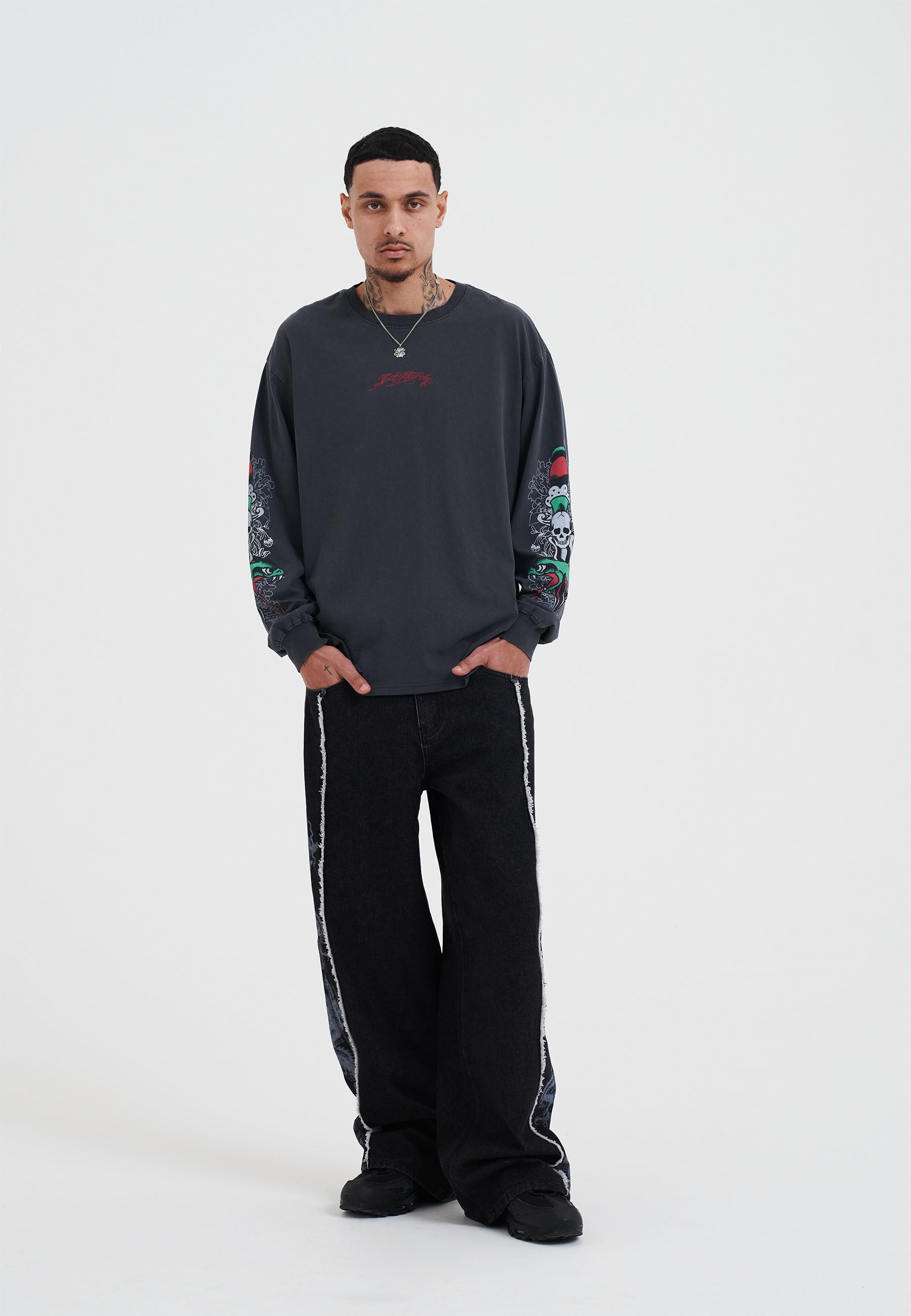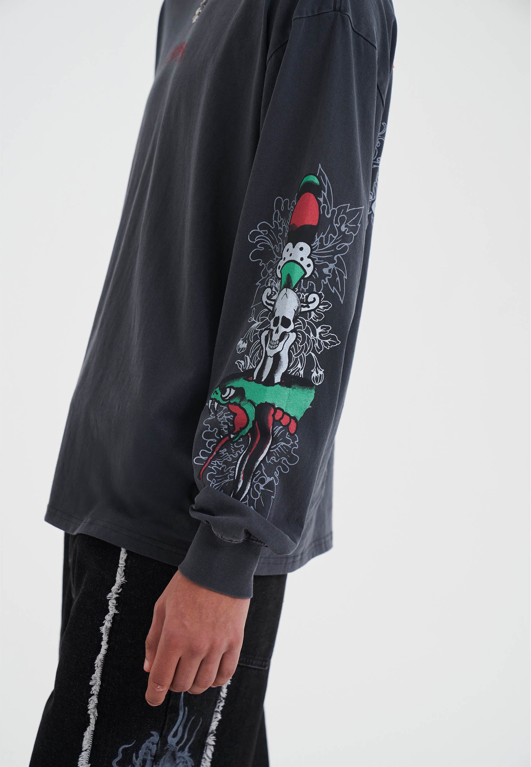 Mens Skull Cross Abstract Long Sleeve T-Shirt - Black