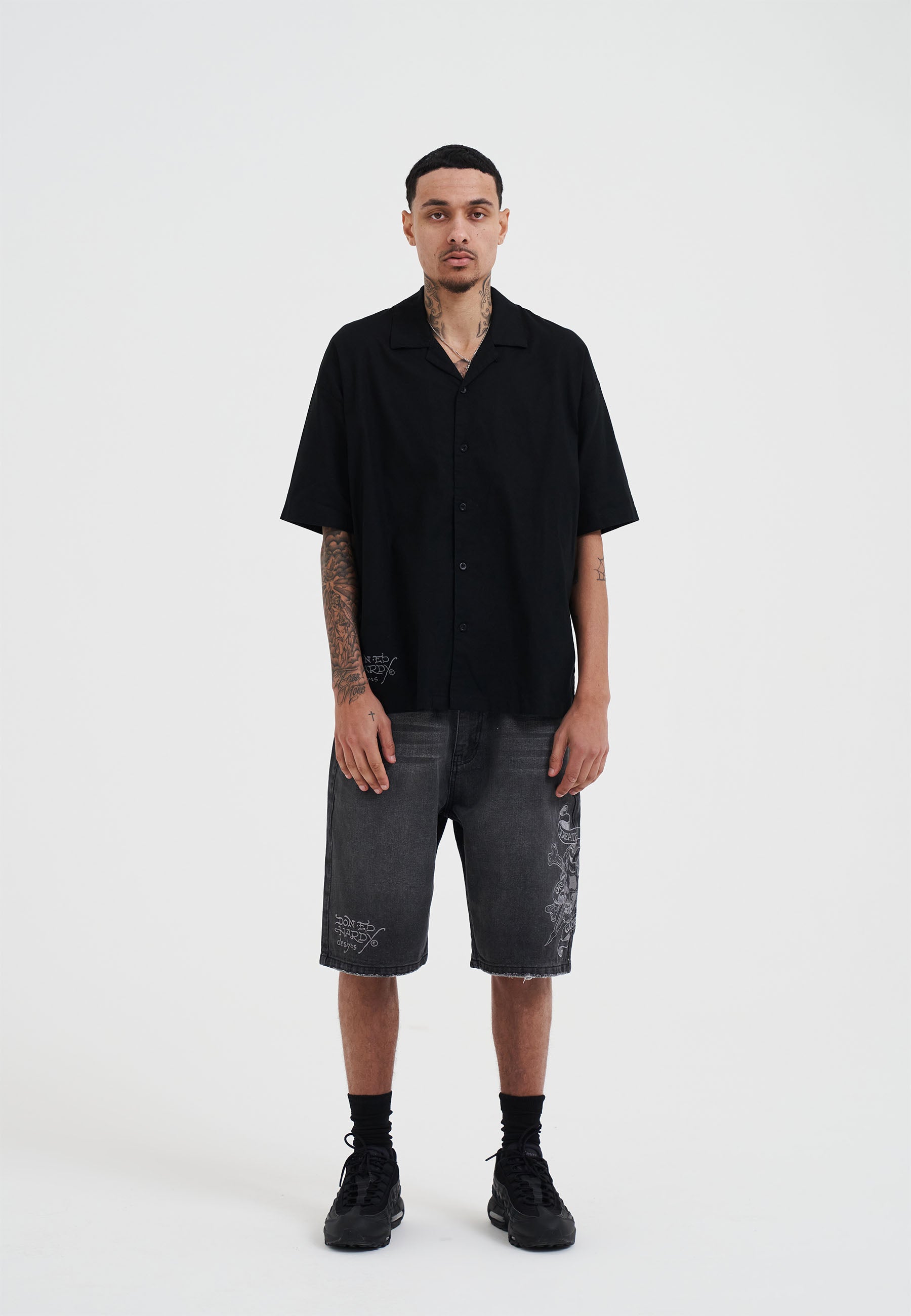 Mens Death Or Glory Denim Skater Jorts Shorts - Black