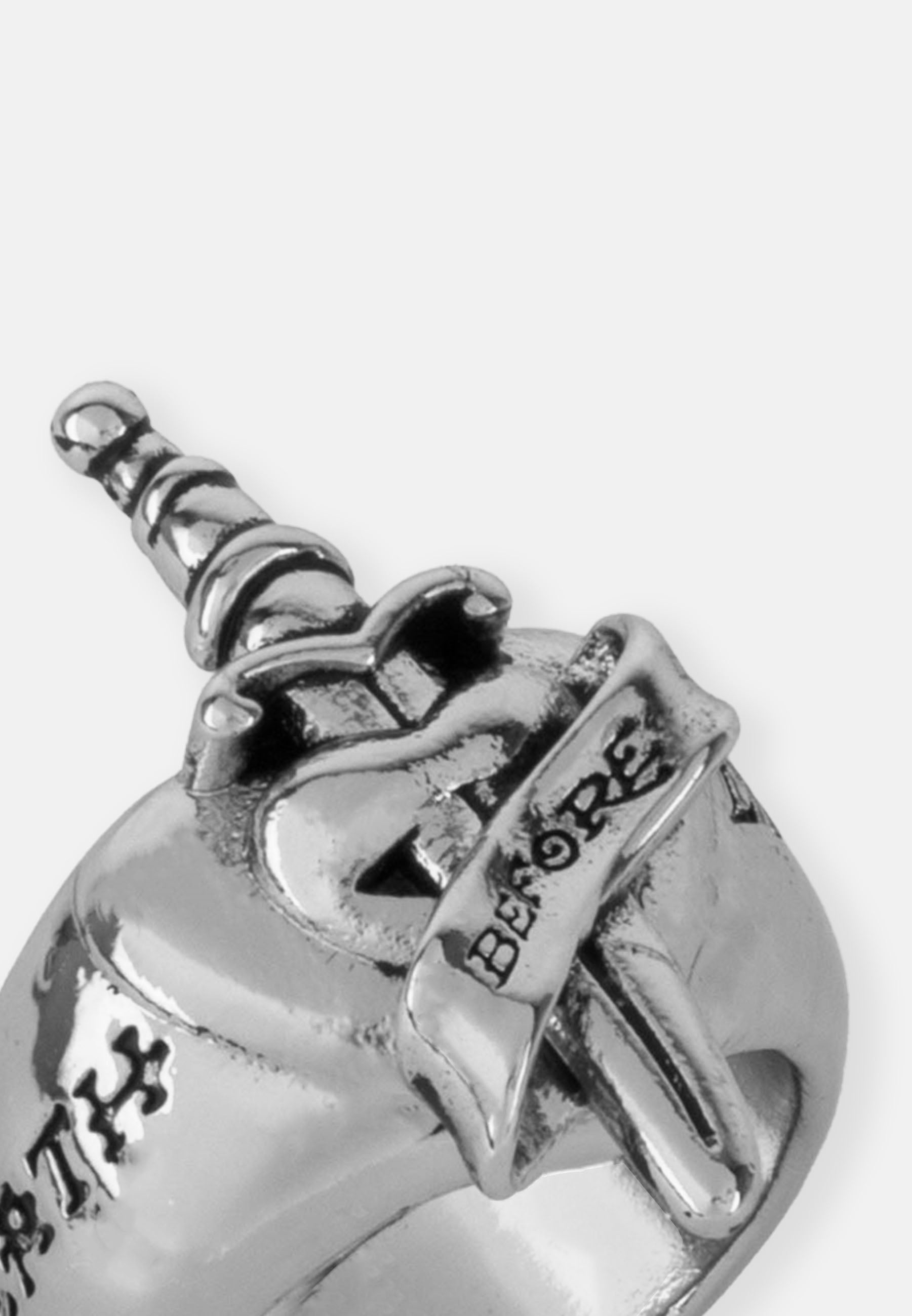 Ed Hardy custom cast Don Ed Hardy 'Death before Dishonor' Dagger shaped signet ring, hand finished in a silver finish with antiqued engraved detailing.