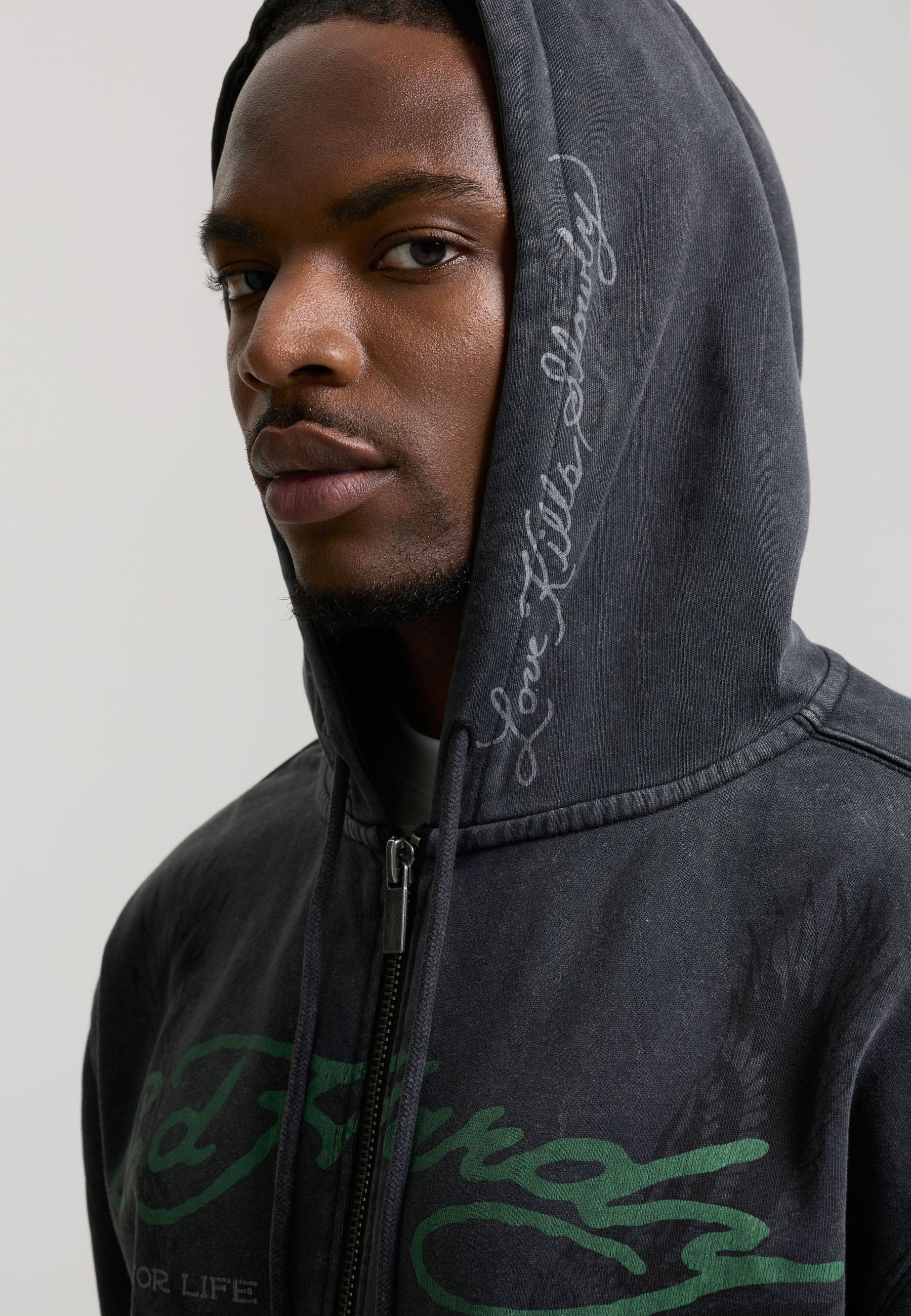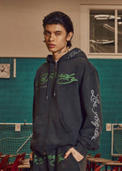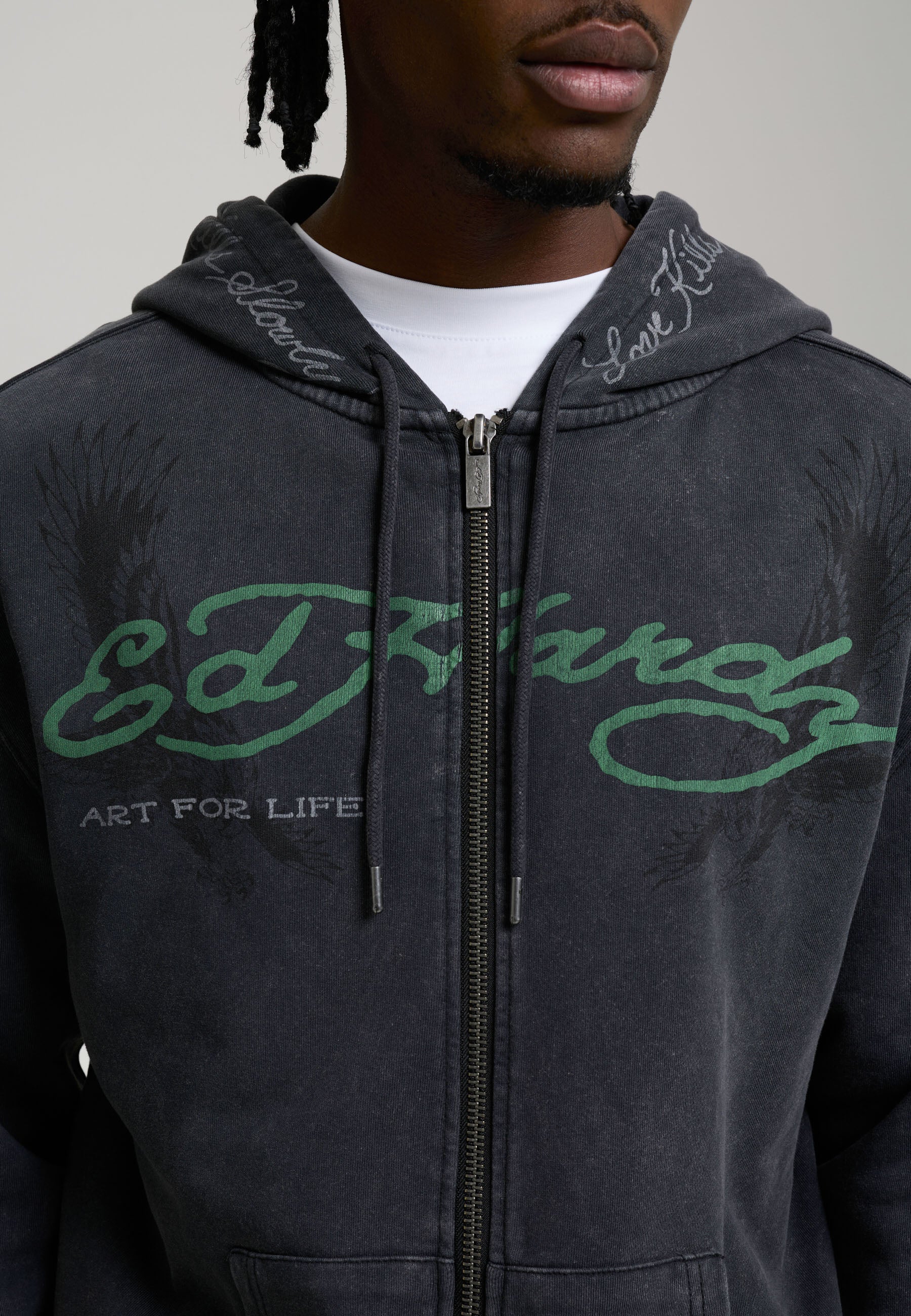 Mens Relaxed Art For Life Tattoo Zip Thru Hoodie in Black