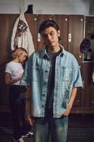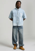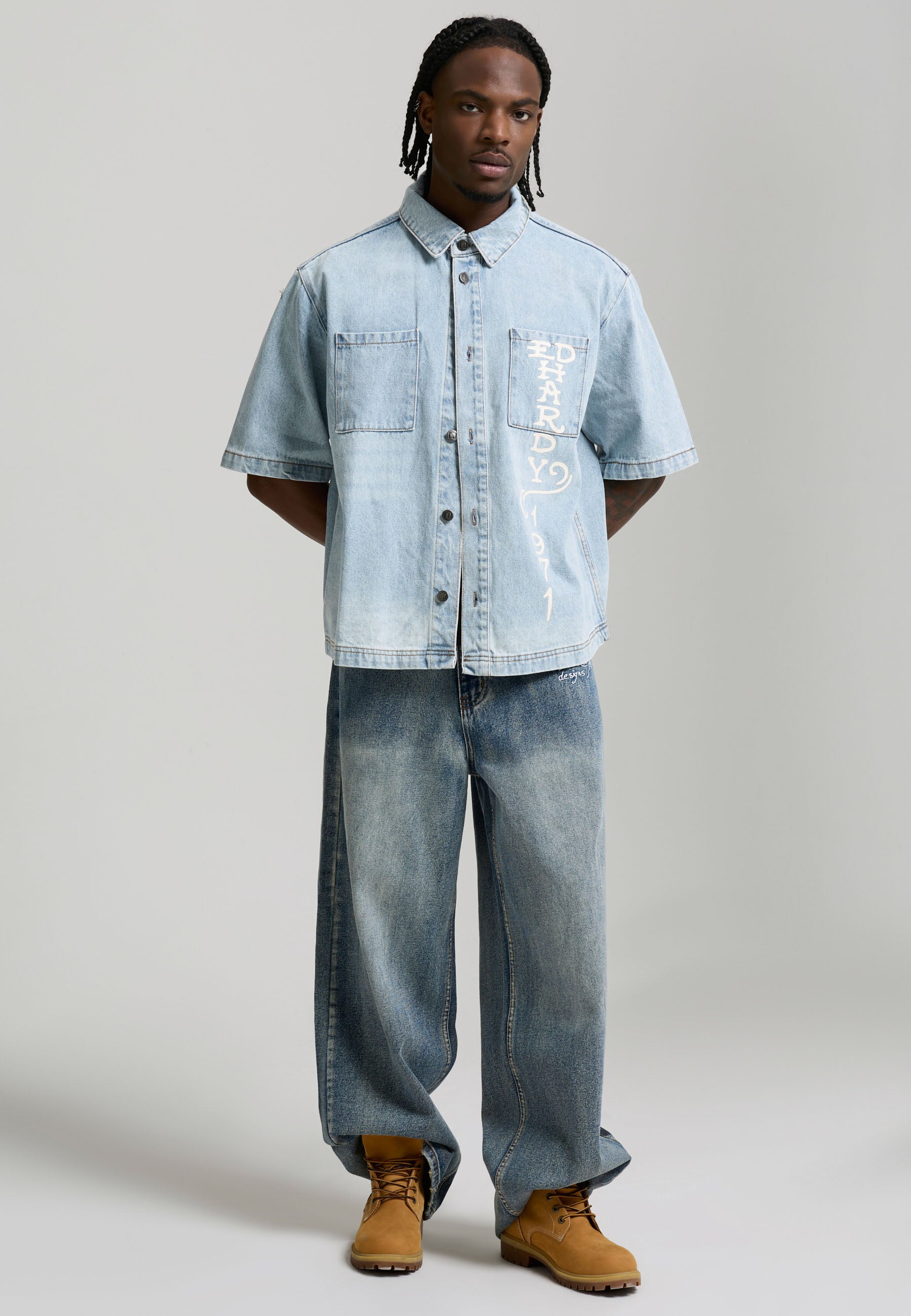 Mens Tonal Dragon Utility Denim Shirt - Bleach