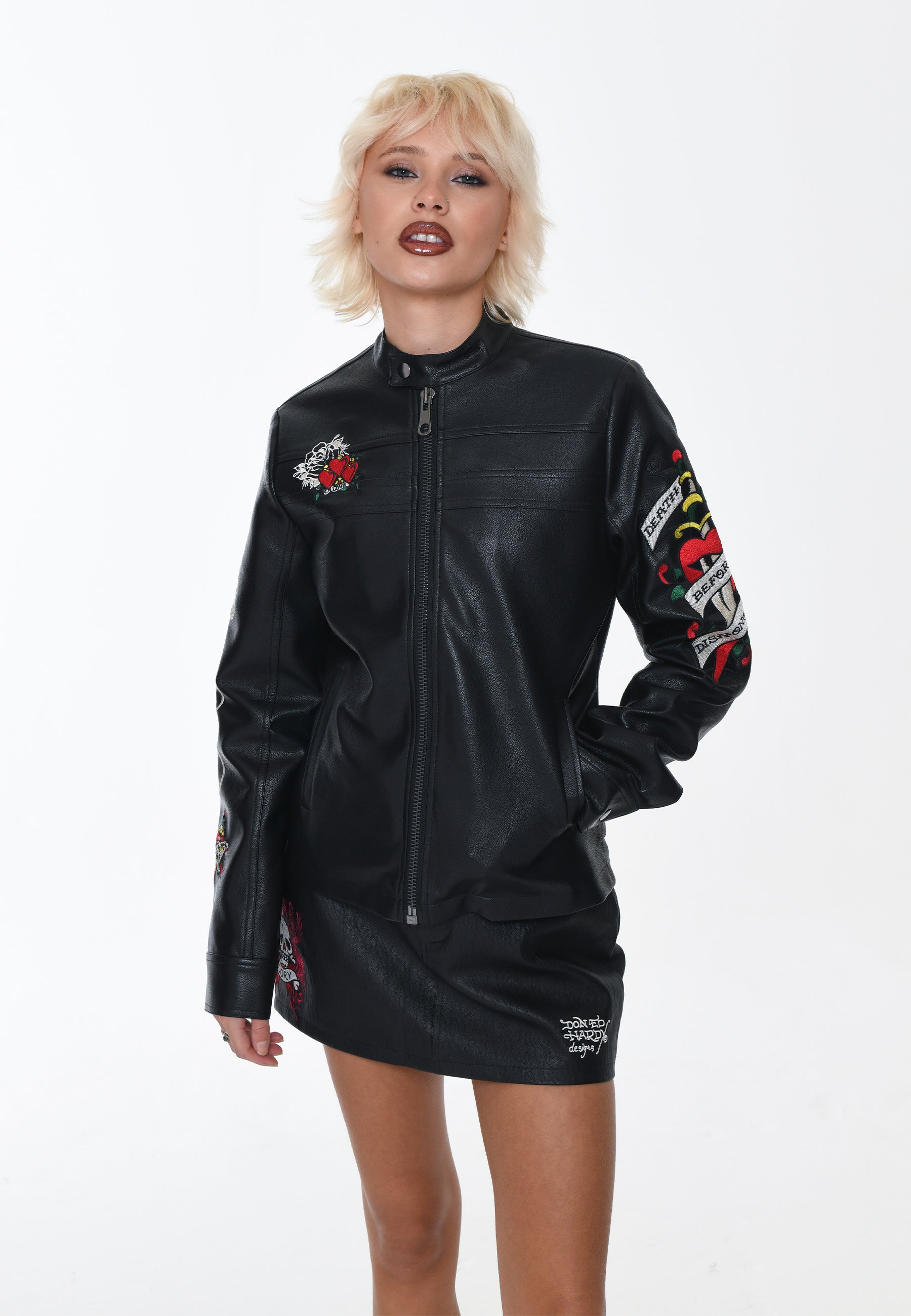 Naisten Death Or Glory Vegaaninen Nahkainen Biker-takki - musta