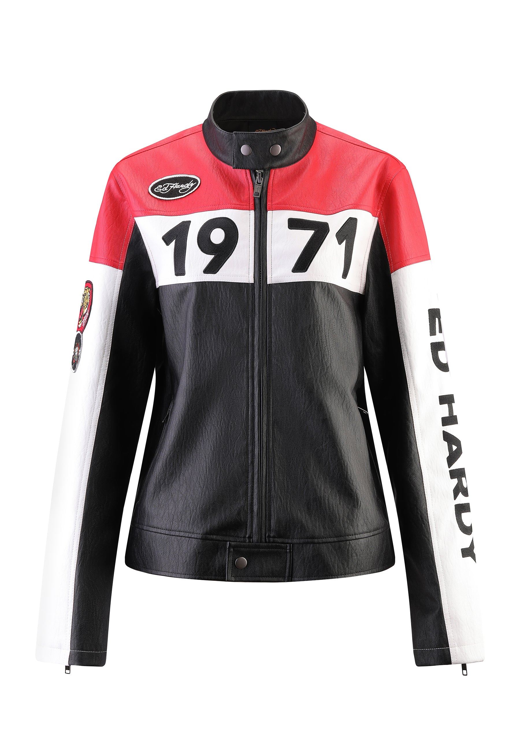 Naisten ED-1971 Moto Biker -takki - musta/punainen/valkoinen