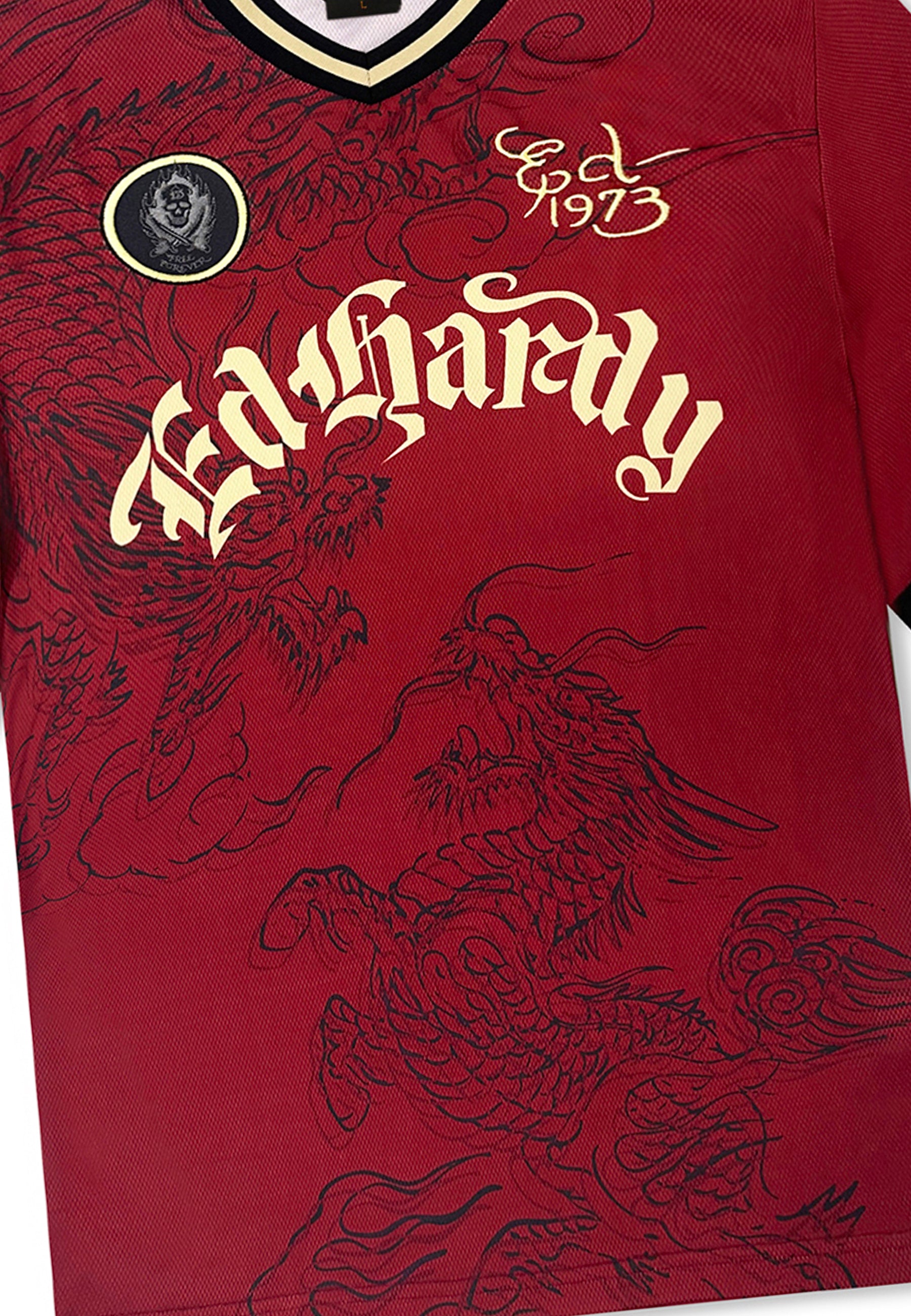 Unisex Soaring Dragon Football Shirt - Dark Red