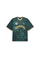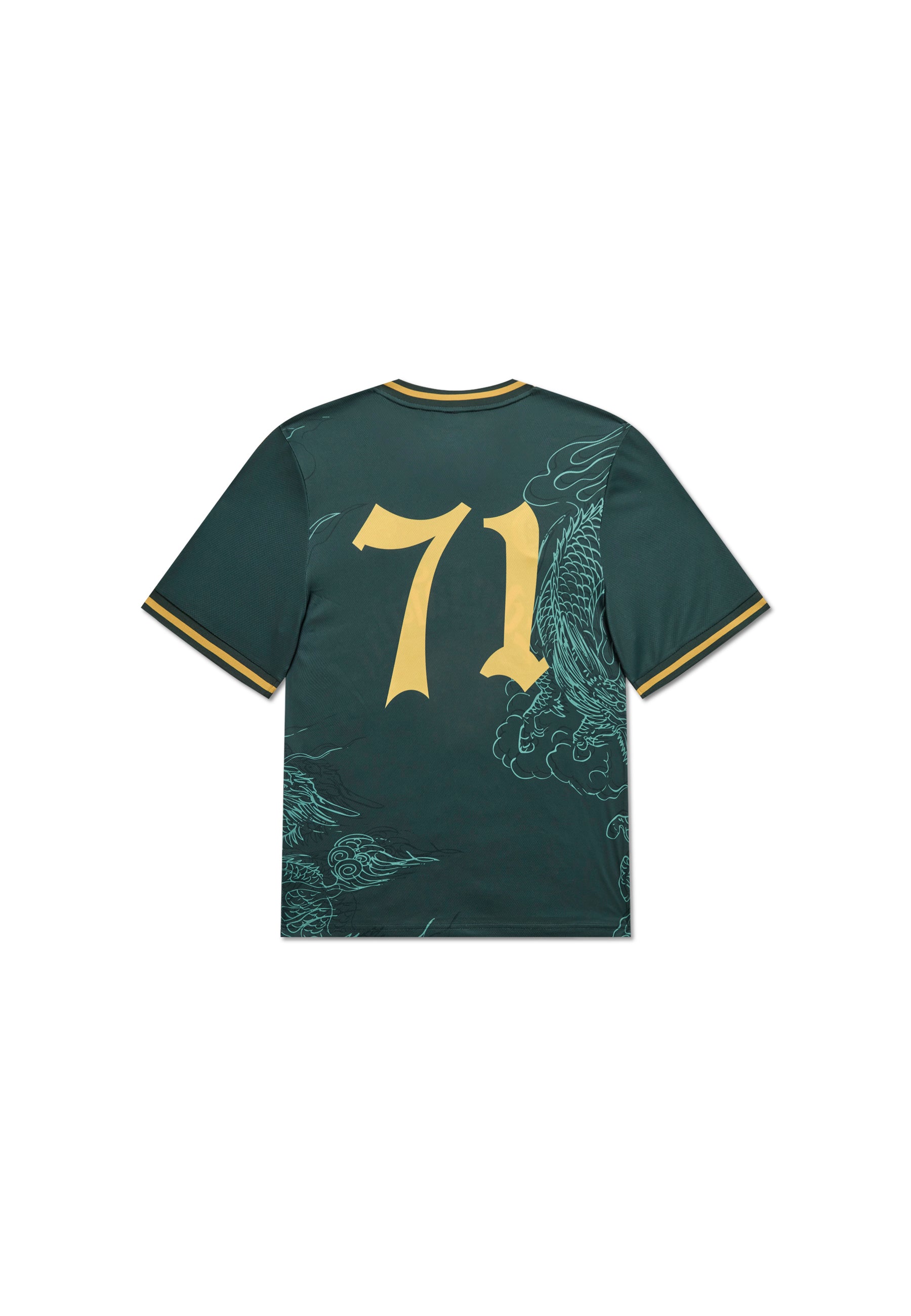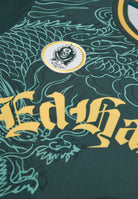 100% POLYESTER REGULAR FIT WOVEN BADGE DRAGON GRAPHIC V NECK