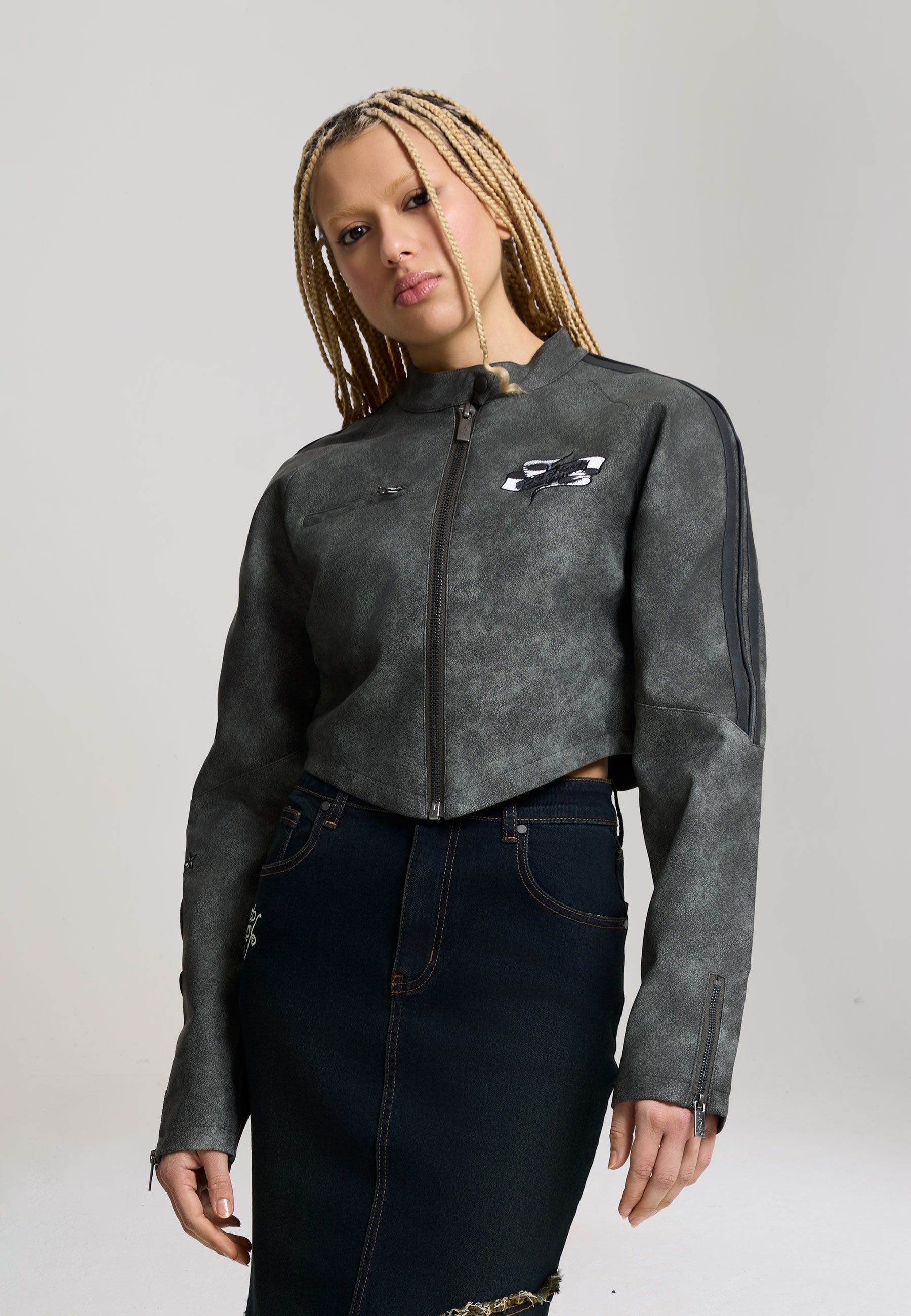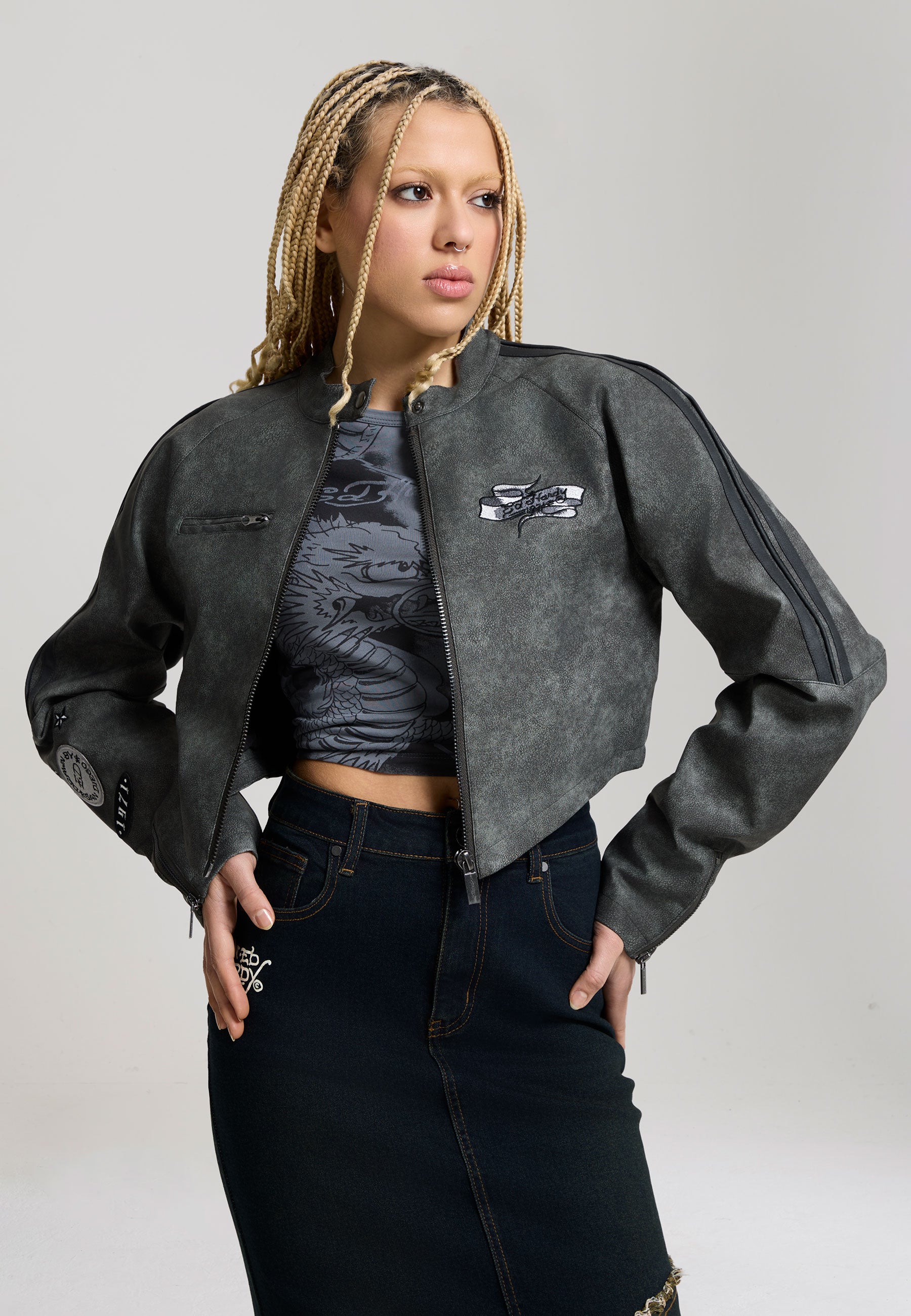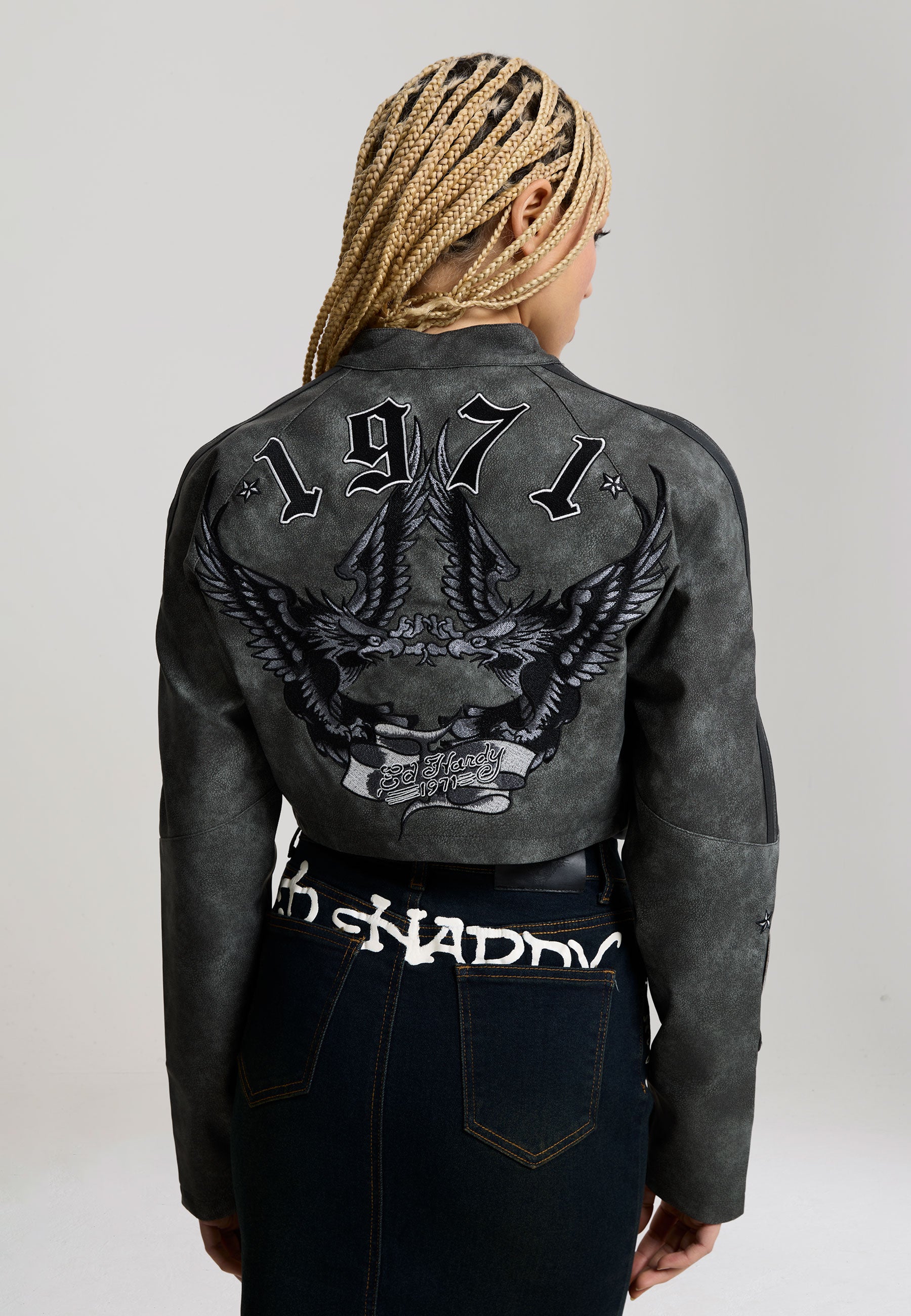 WOMENS 1971 EAGLE BIKER JACKET in Charcoal