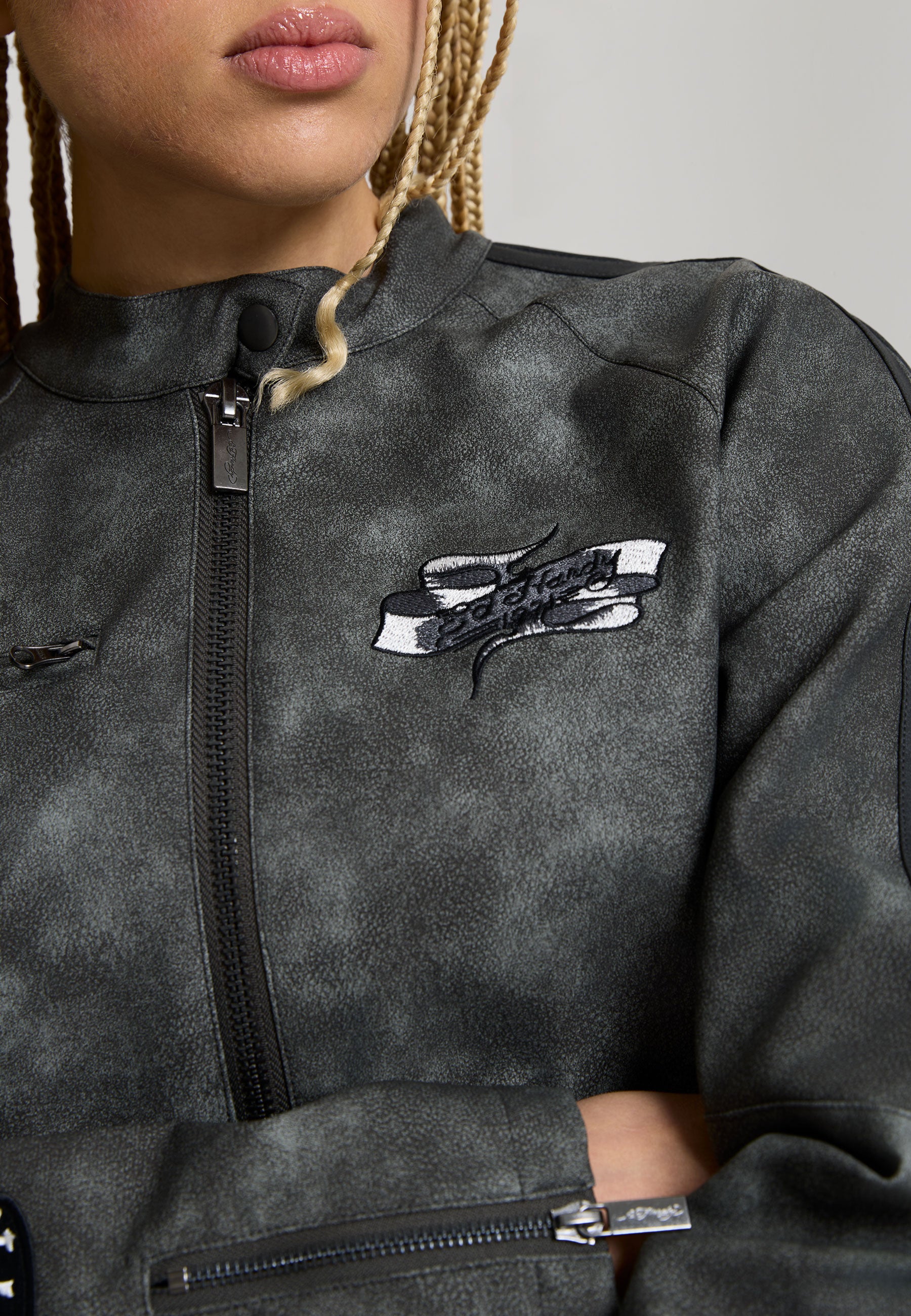Womens 1971 Eagle Biker Jacket - Charcoal