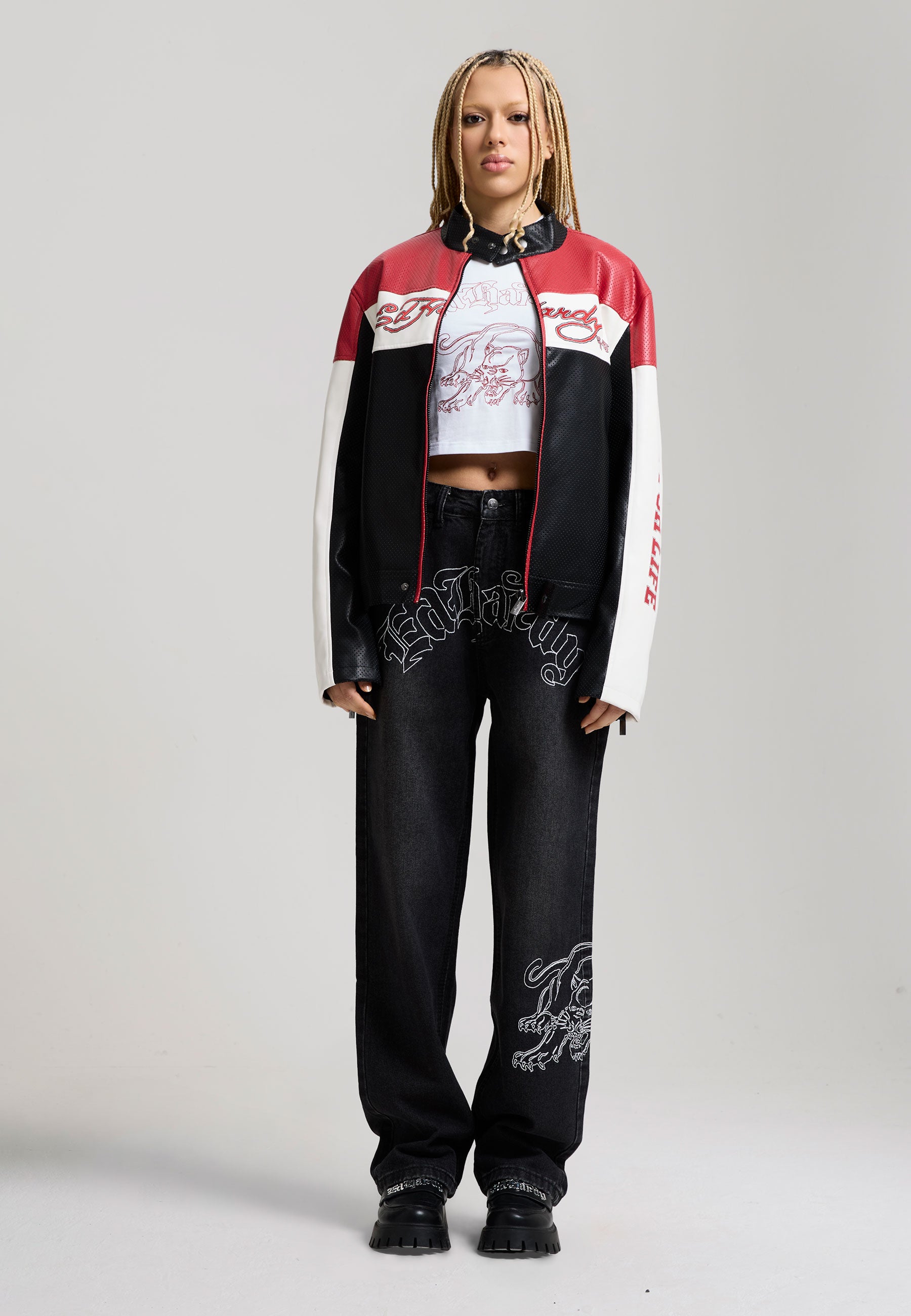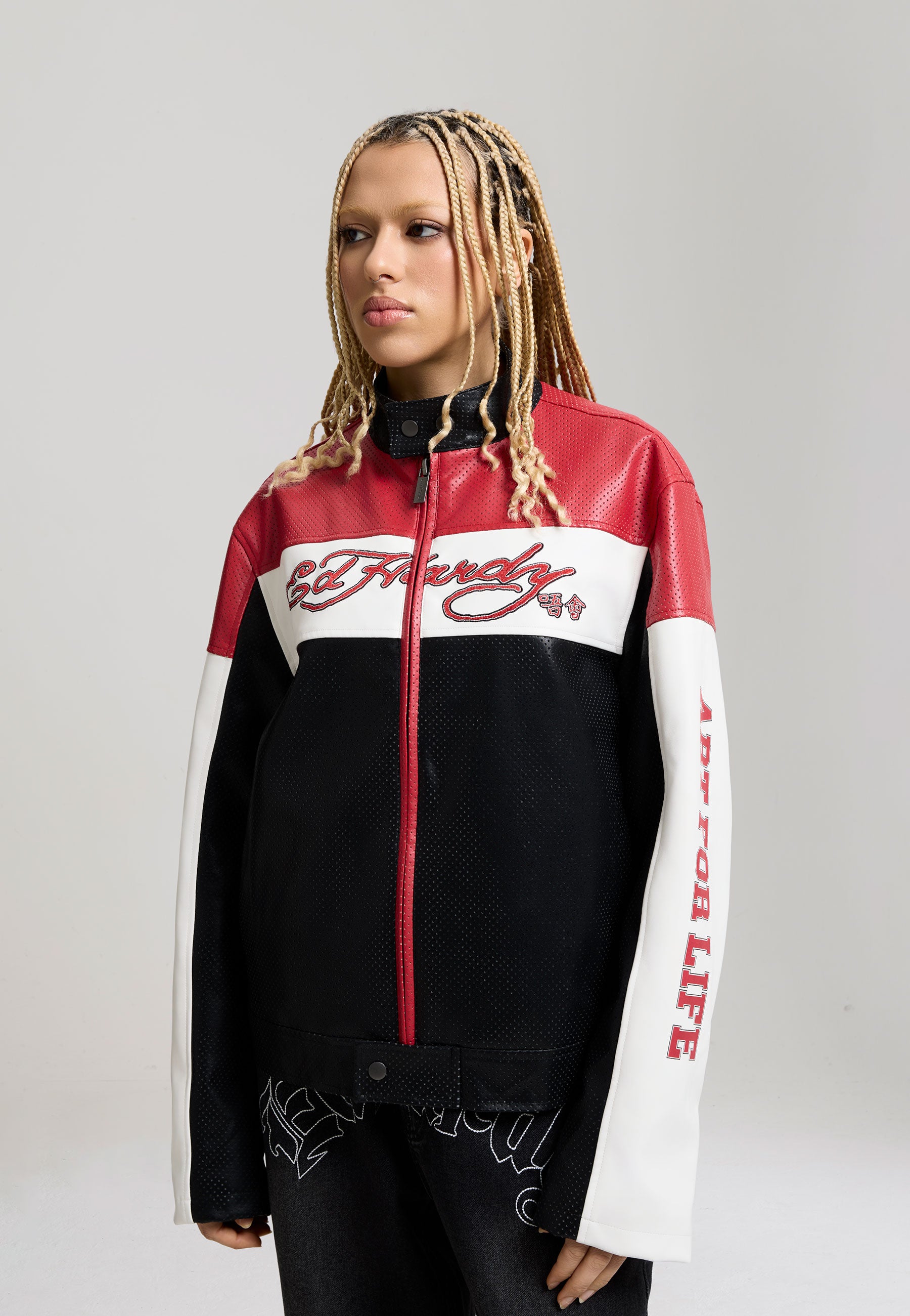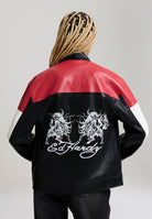 Womens Art For Life Regular Perforated Moto Jacket - Red / Black