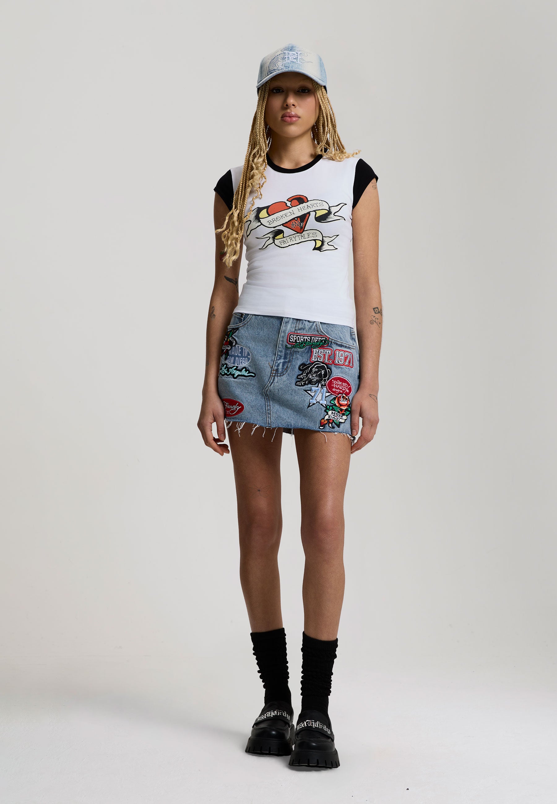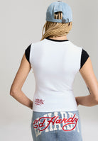 Womens Broken Hearts Contrast Fitted Baby Tee - White