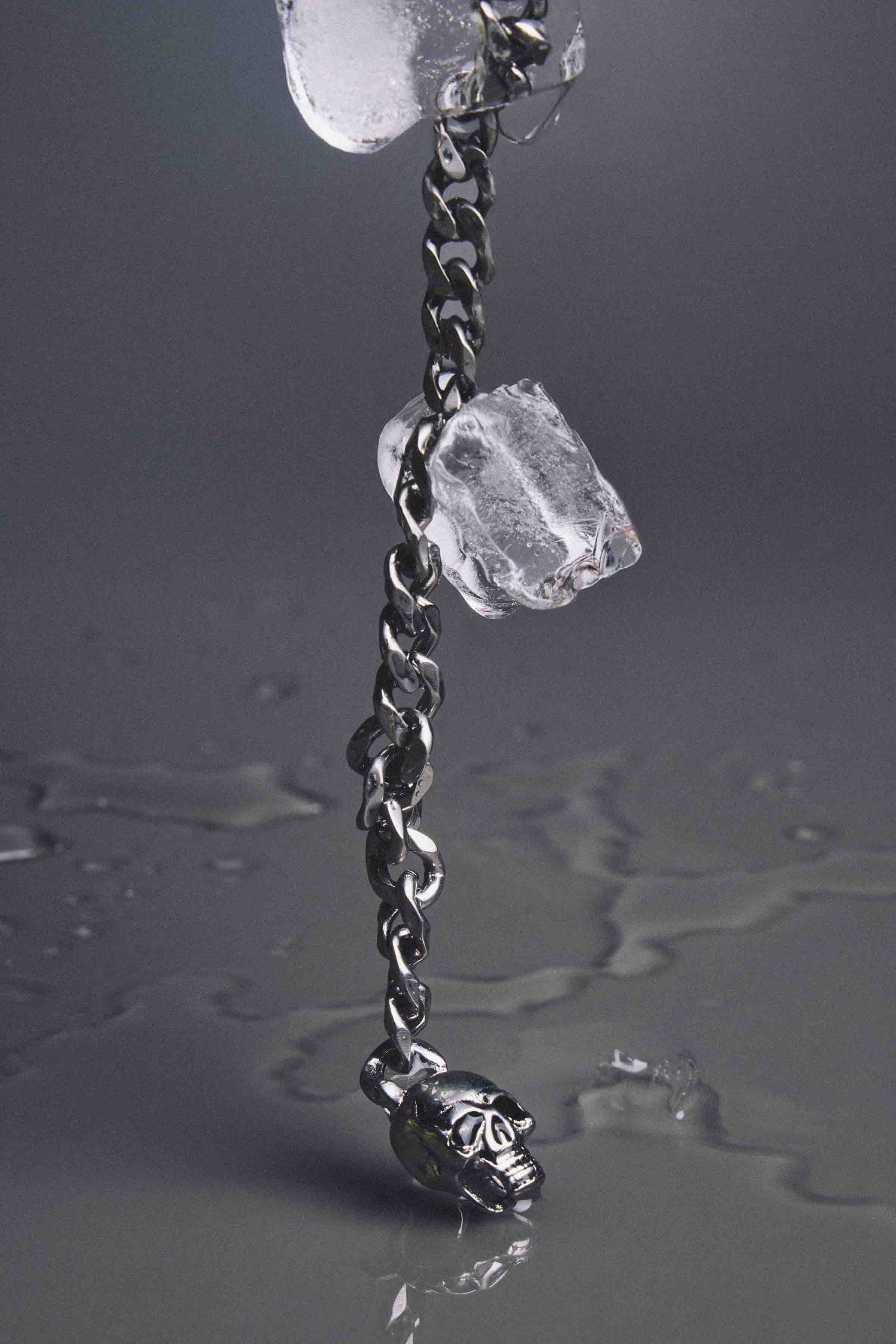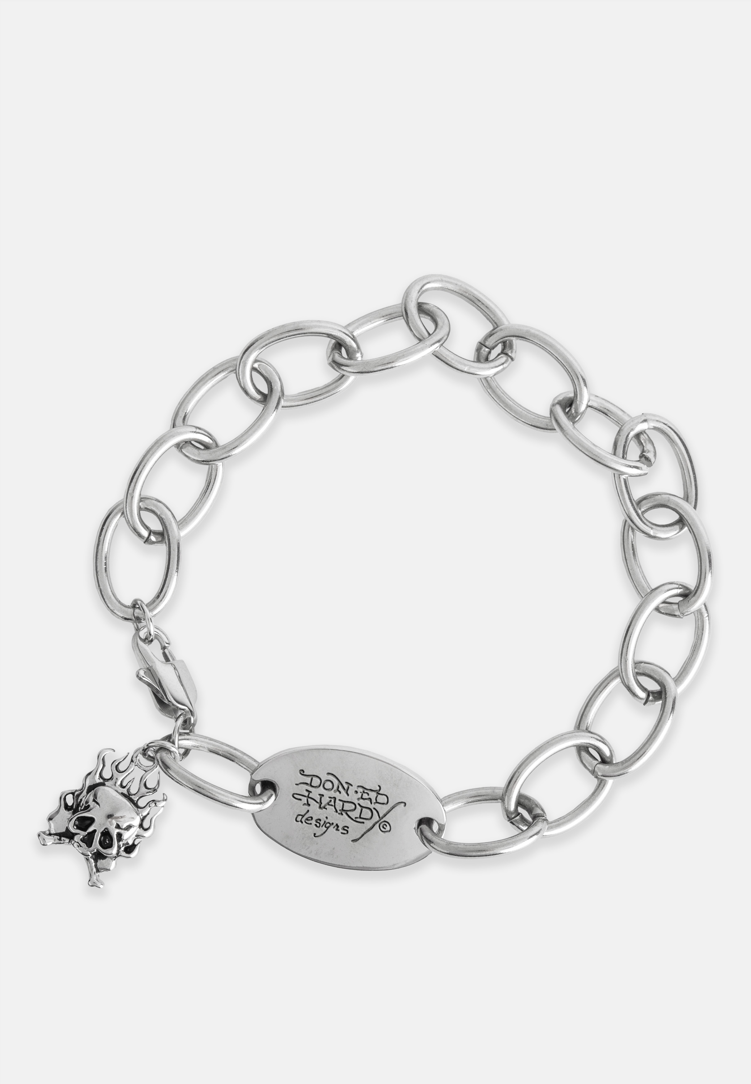 Ed Hardy Flaming Skull Chain Bracelet - Silver
