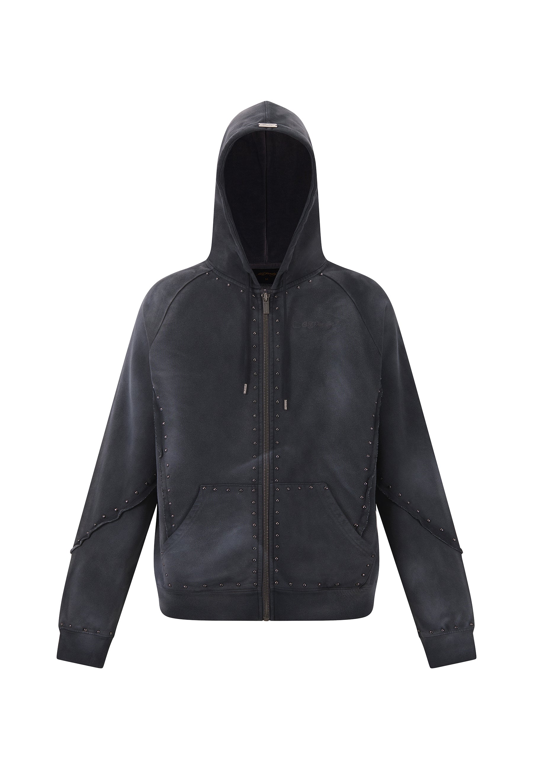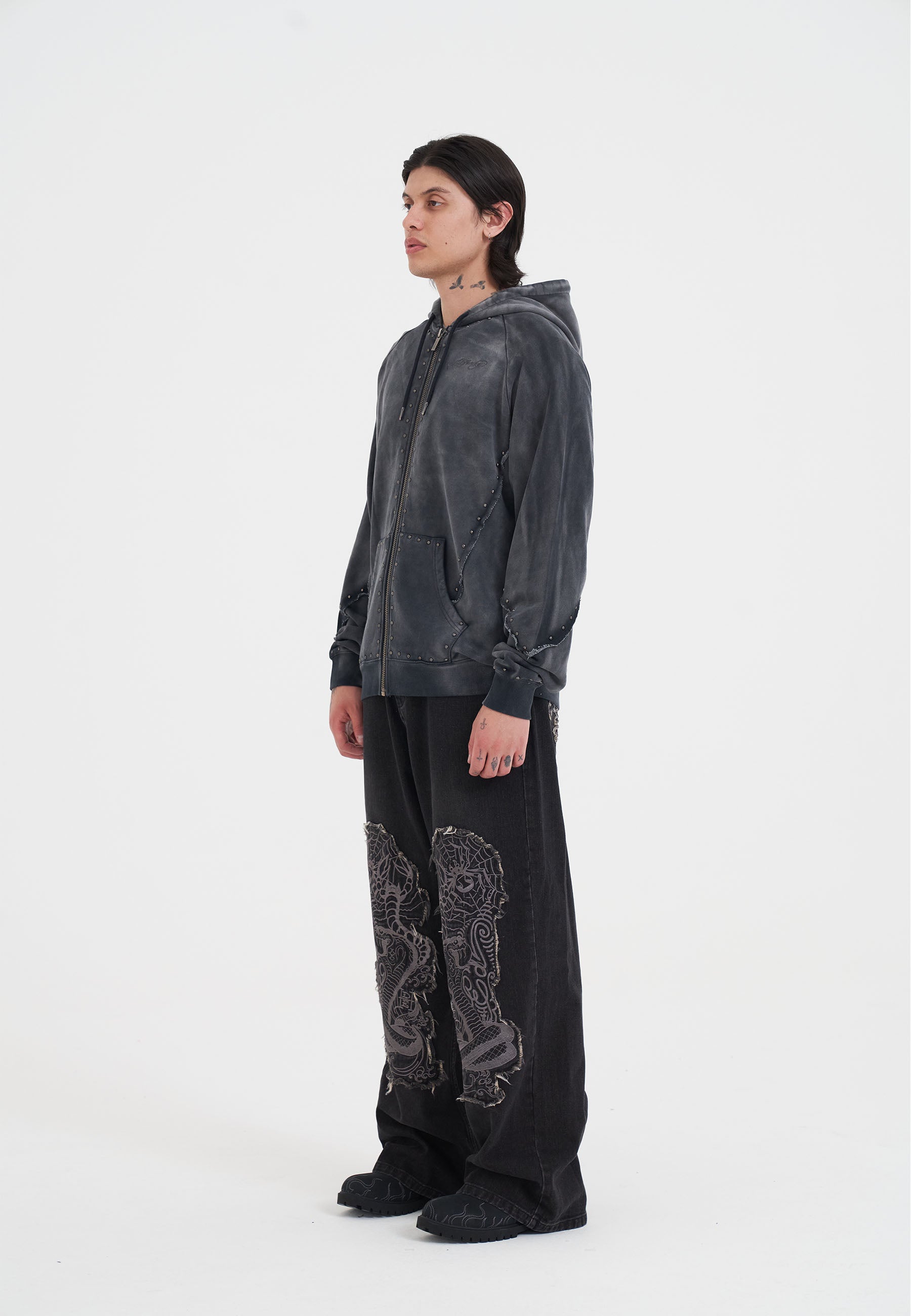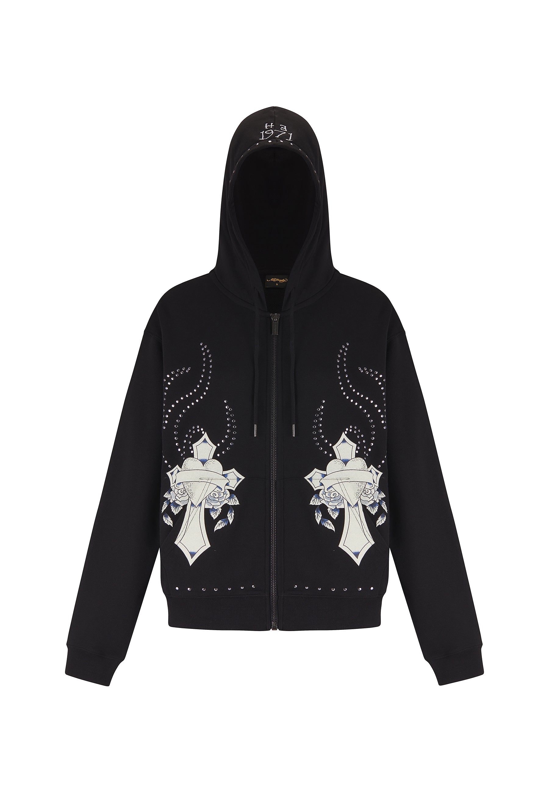 Mens Drag Battle Stud Zip Thru Hoodie - Black