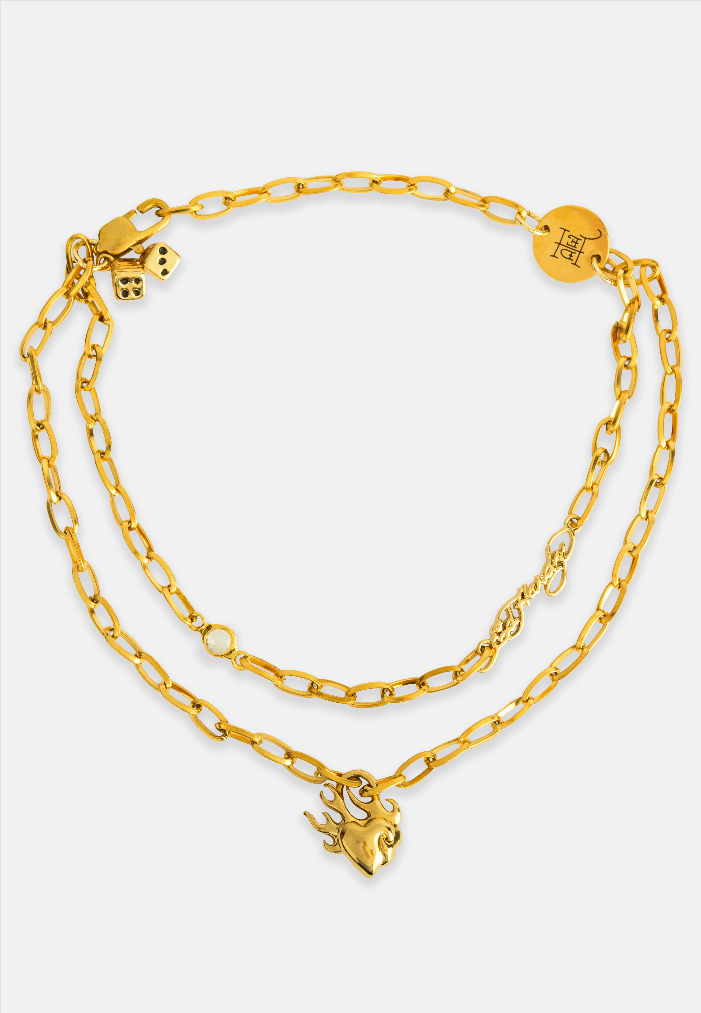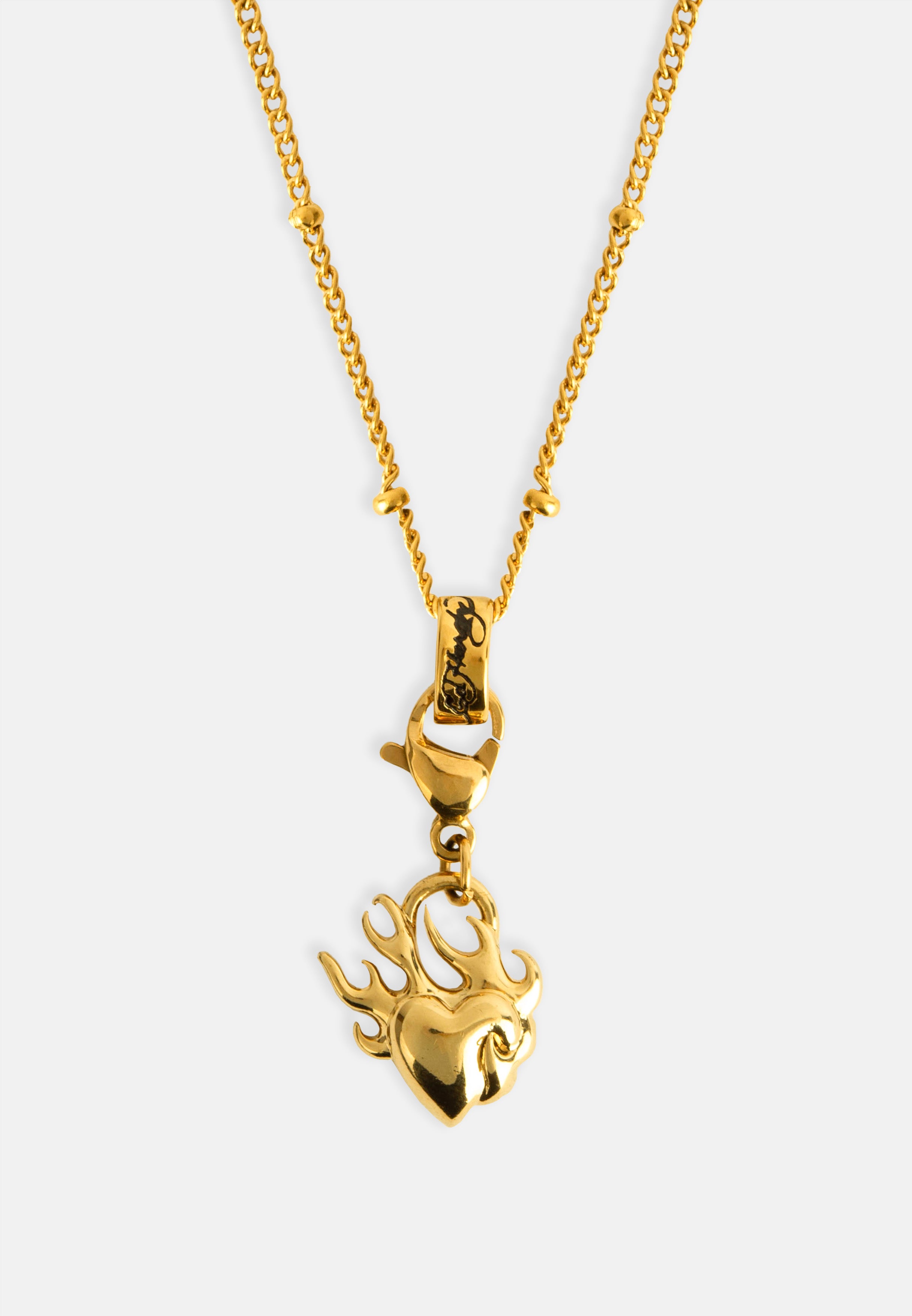 Ed Hardy Mini Flaming Heart Charm Necklace - Gold