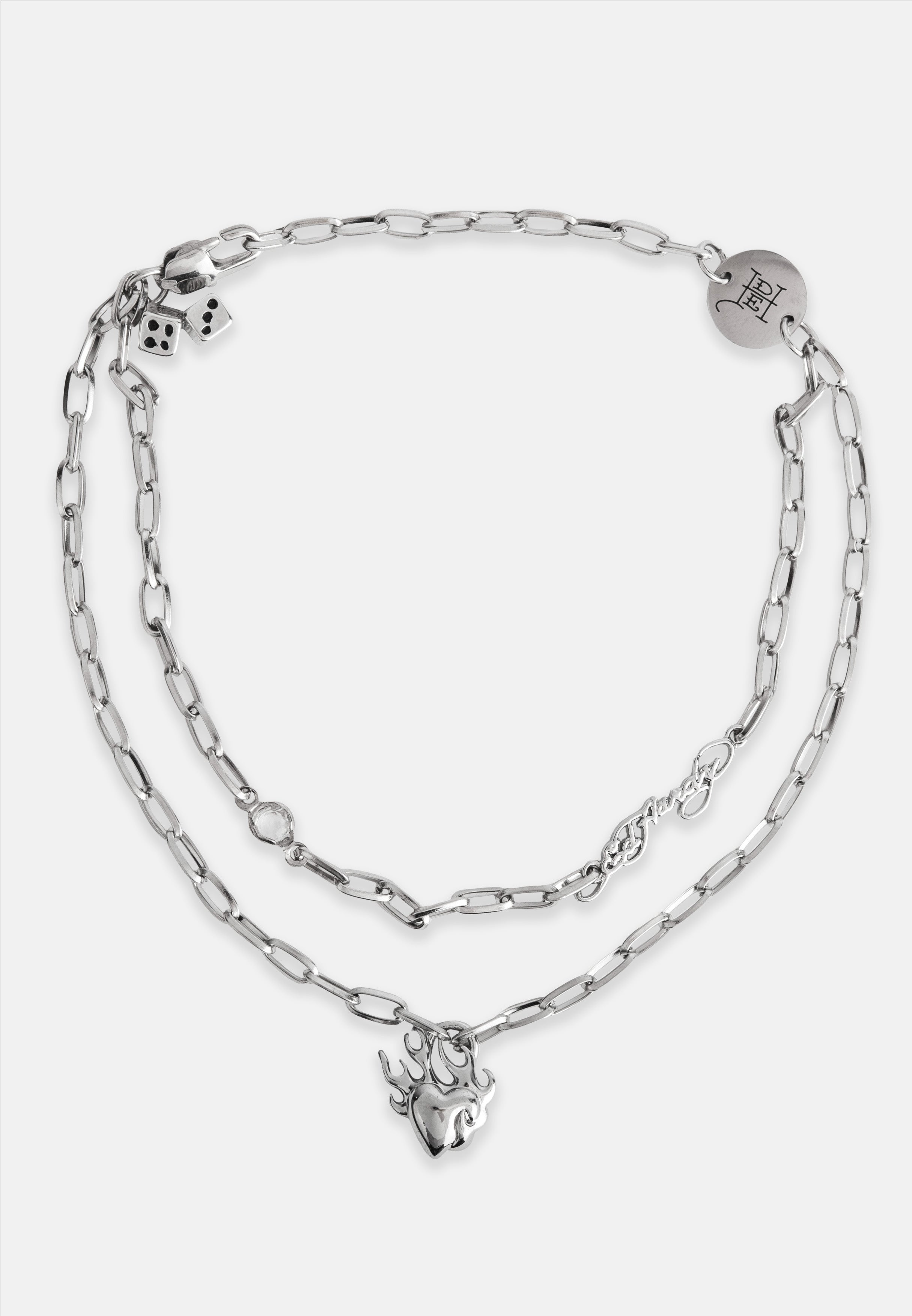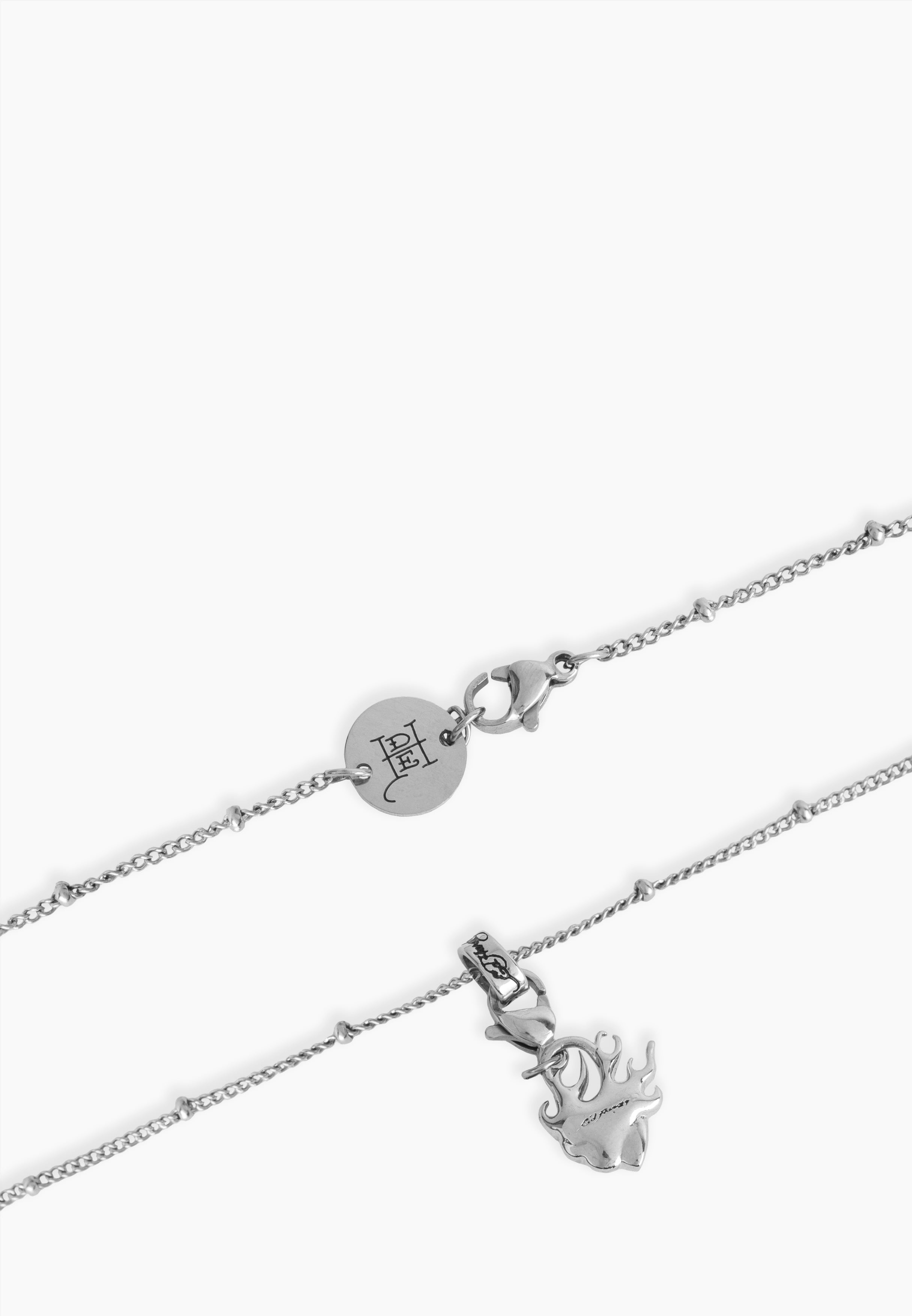 Ed Hardy Mini Flaming Heart Charm Necklace - Silver