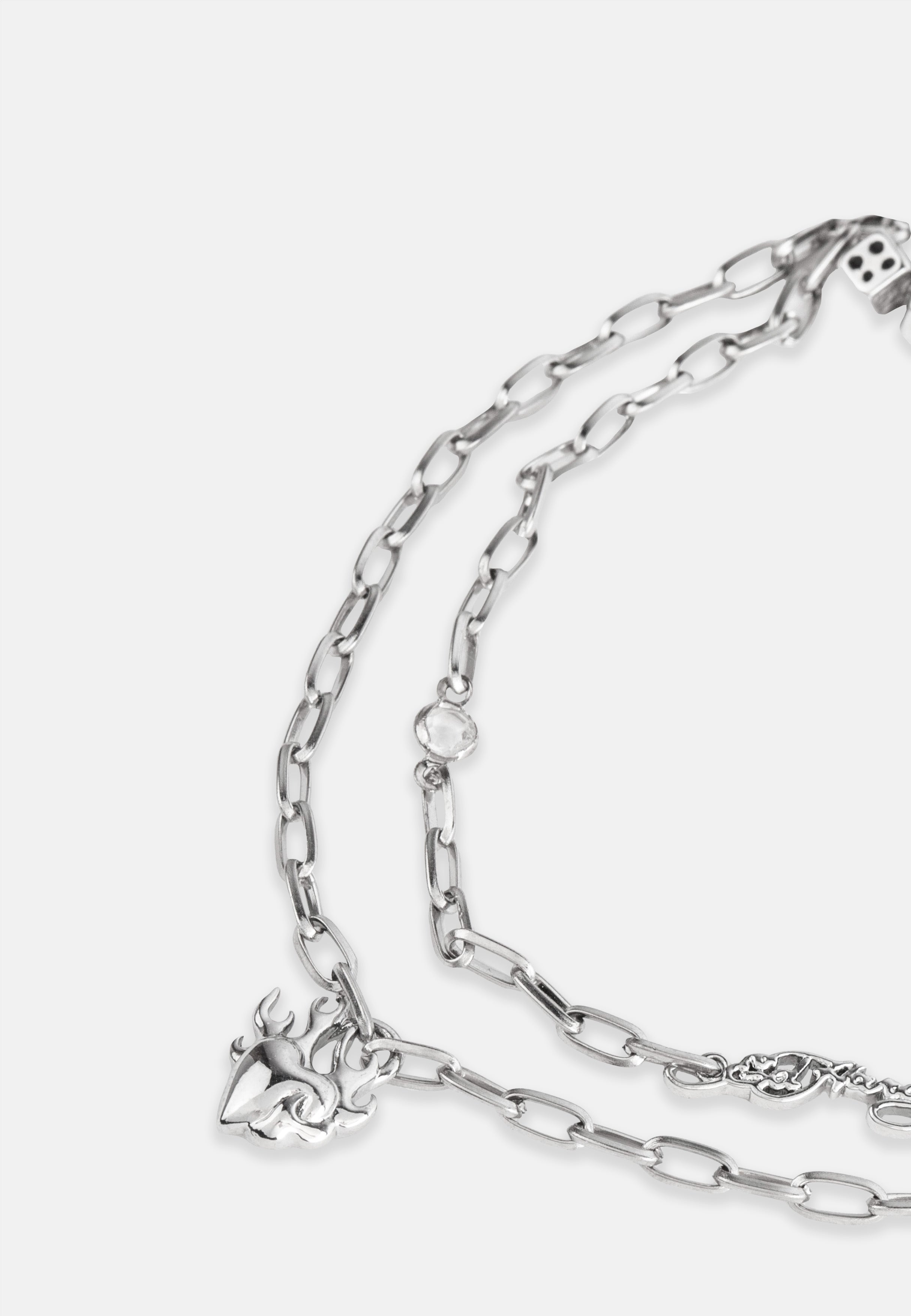 Ed Hardy Multirow Flaming Charms Bracelet - Silver