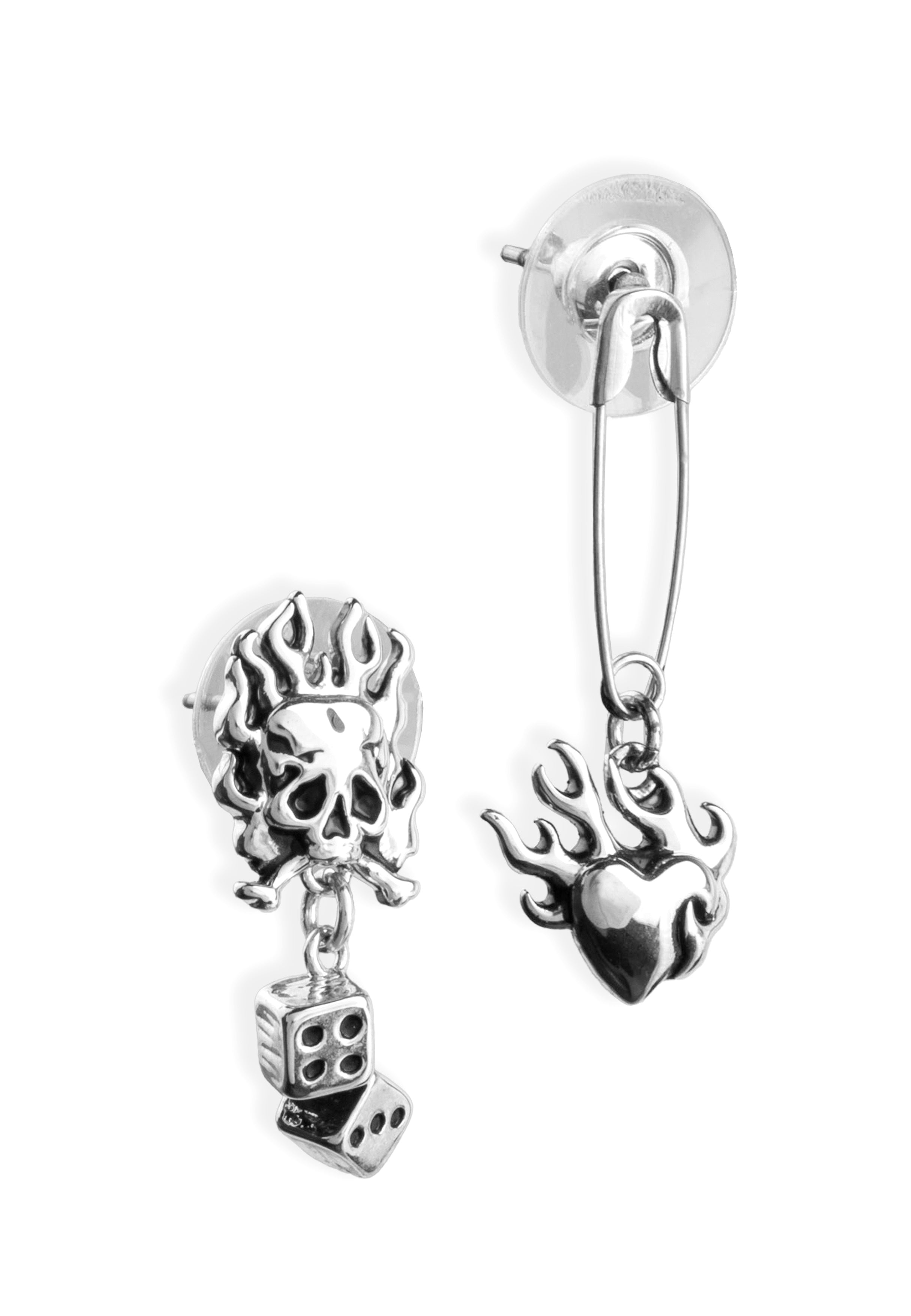 Ed Hardy Flaming Skull and Dice earring - Silver
