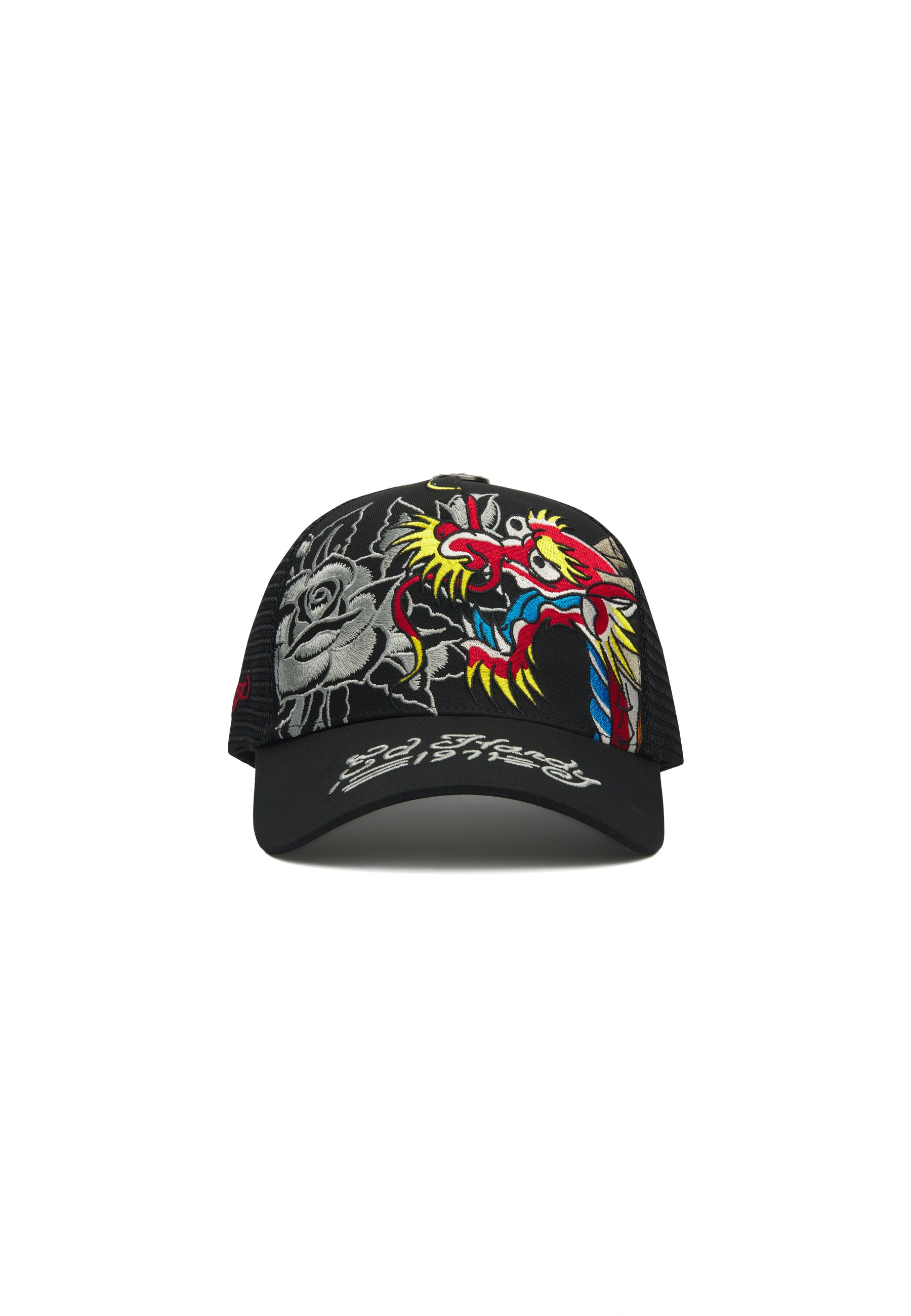 Unisex 1971 Dragon And Roses Embroidered 5 Panel Trucker Cap - White