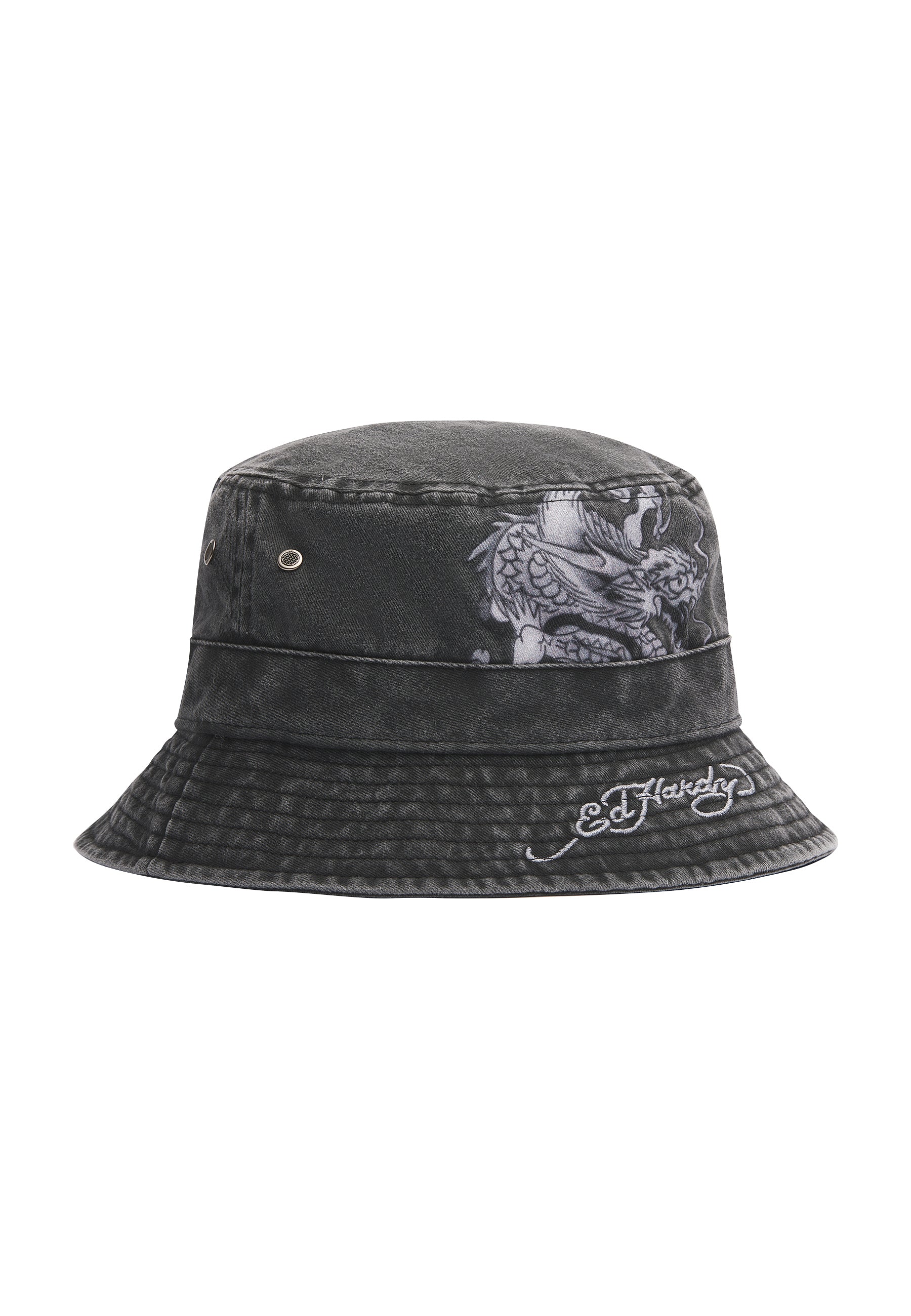 Unisex Crawling Dragon Graphic Acid Wash Bucket Hat - Charcoal