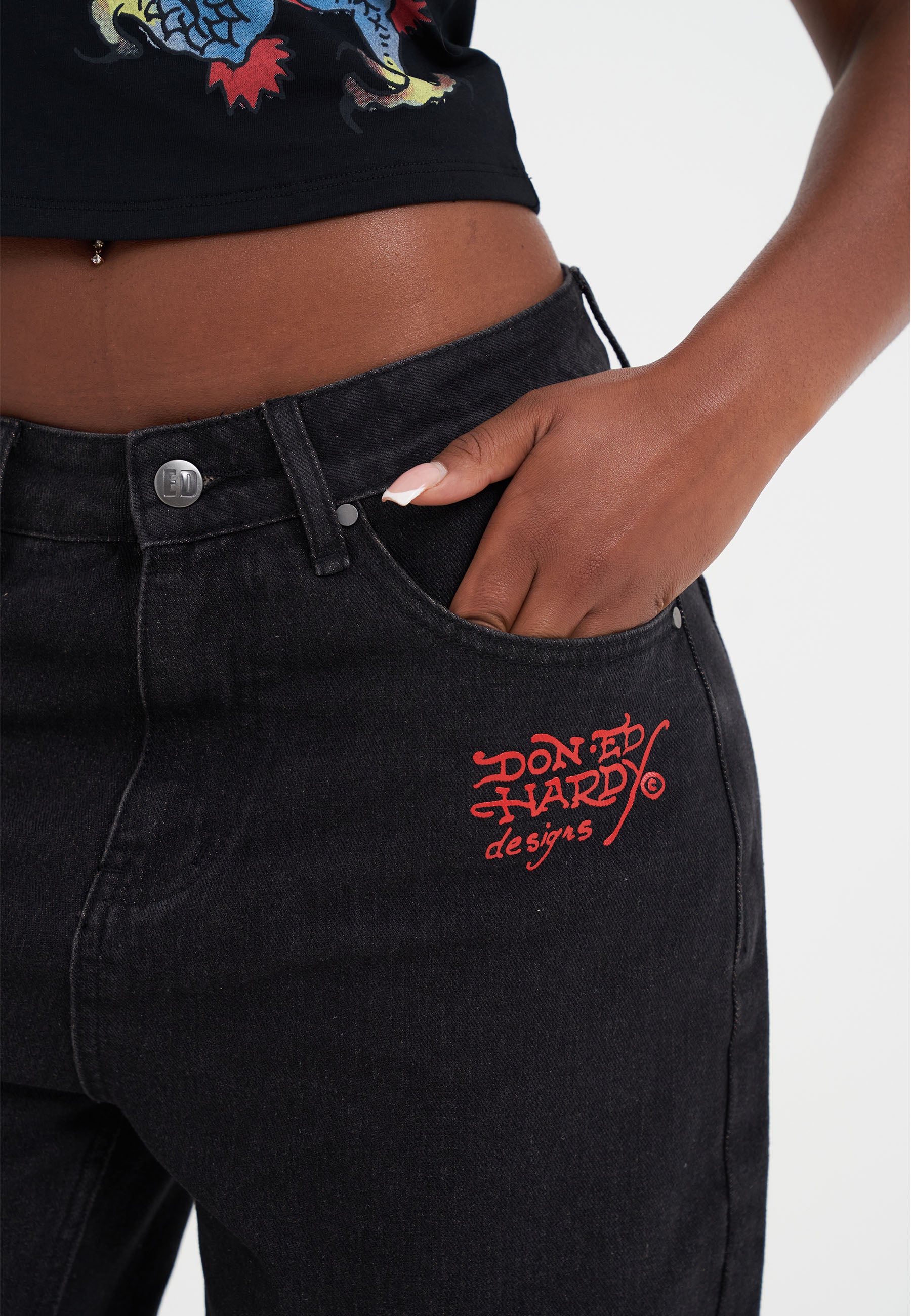 Confectionnés à partir de denim 100 % coton noir, ils allient art et confort, capturant le style intemporel d'Ed Hardy, du carnet de croquis à la rue.