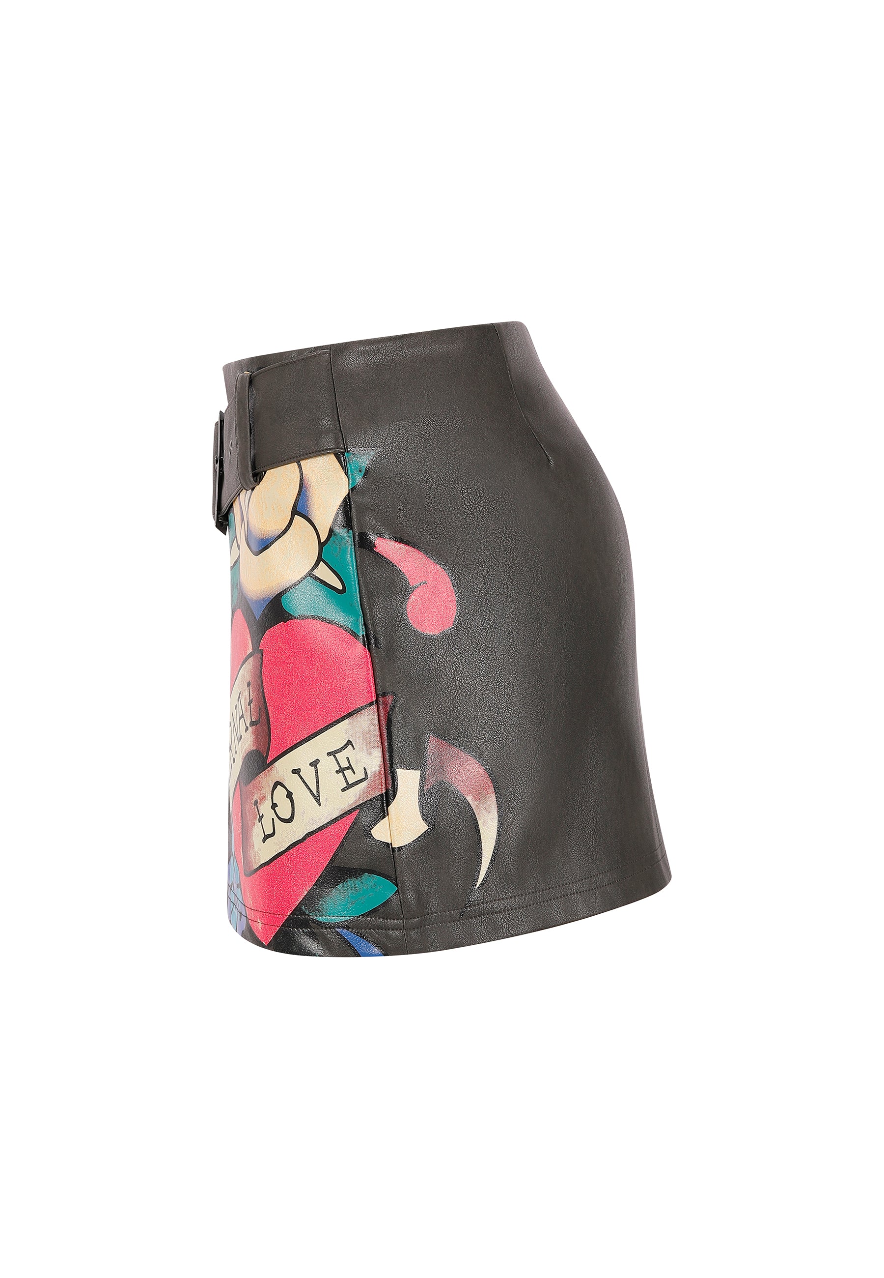 WOMENS ETERNAL LOVE VEGAN LEATHER MINI SKIRT in Black