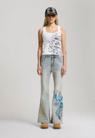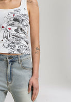 Womens Love Birds Ribbed Eyelet Vest - White