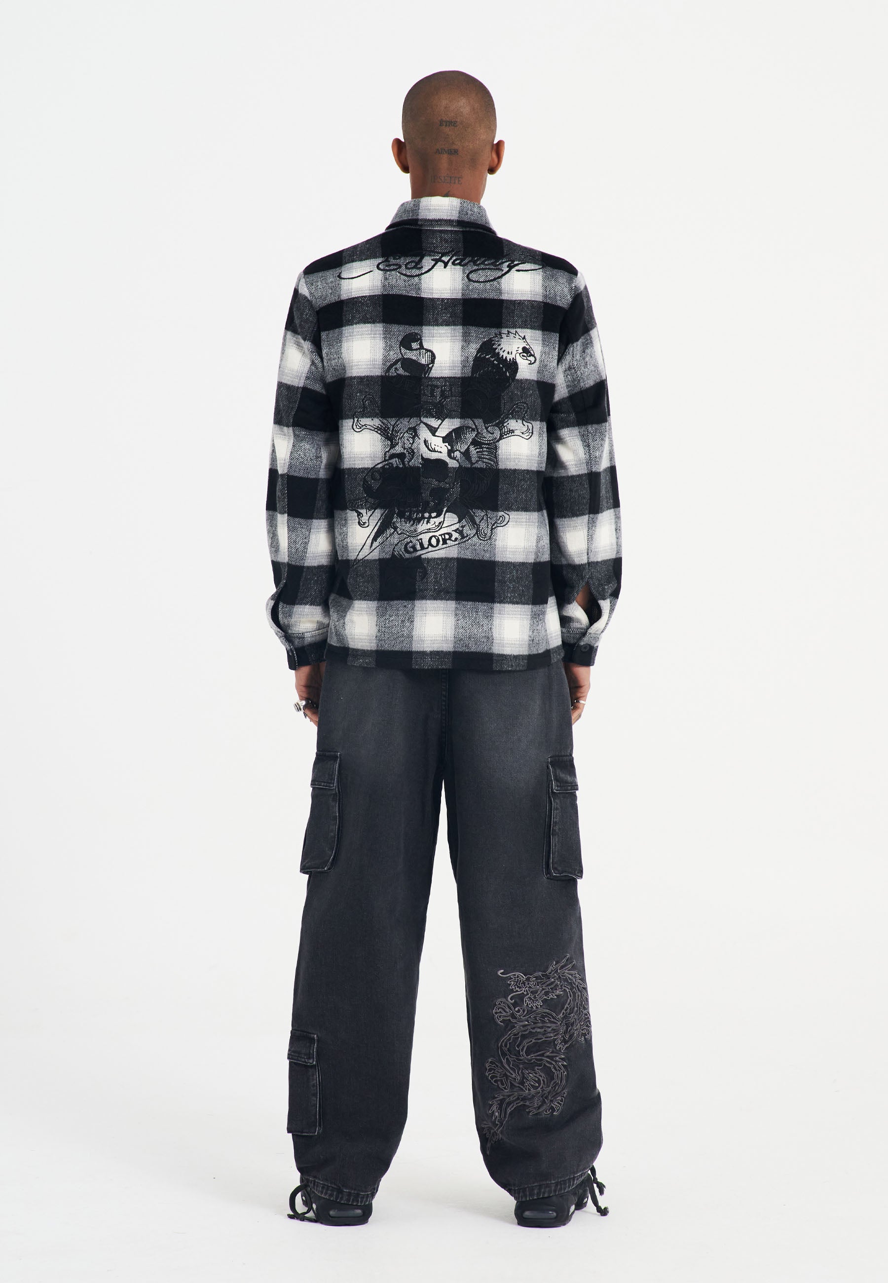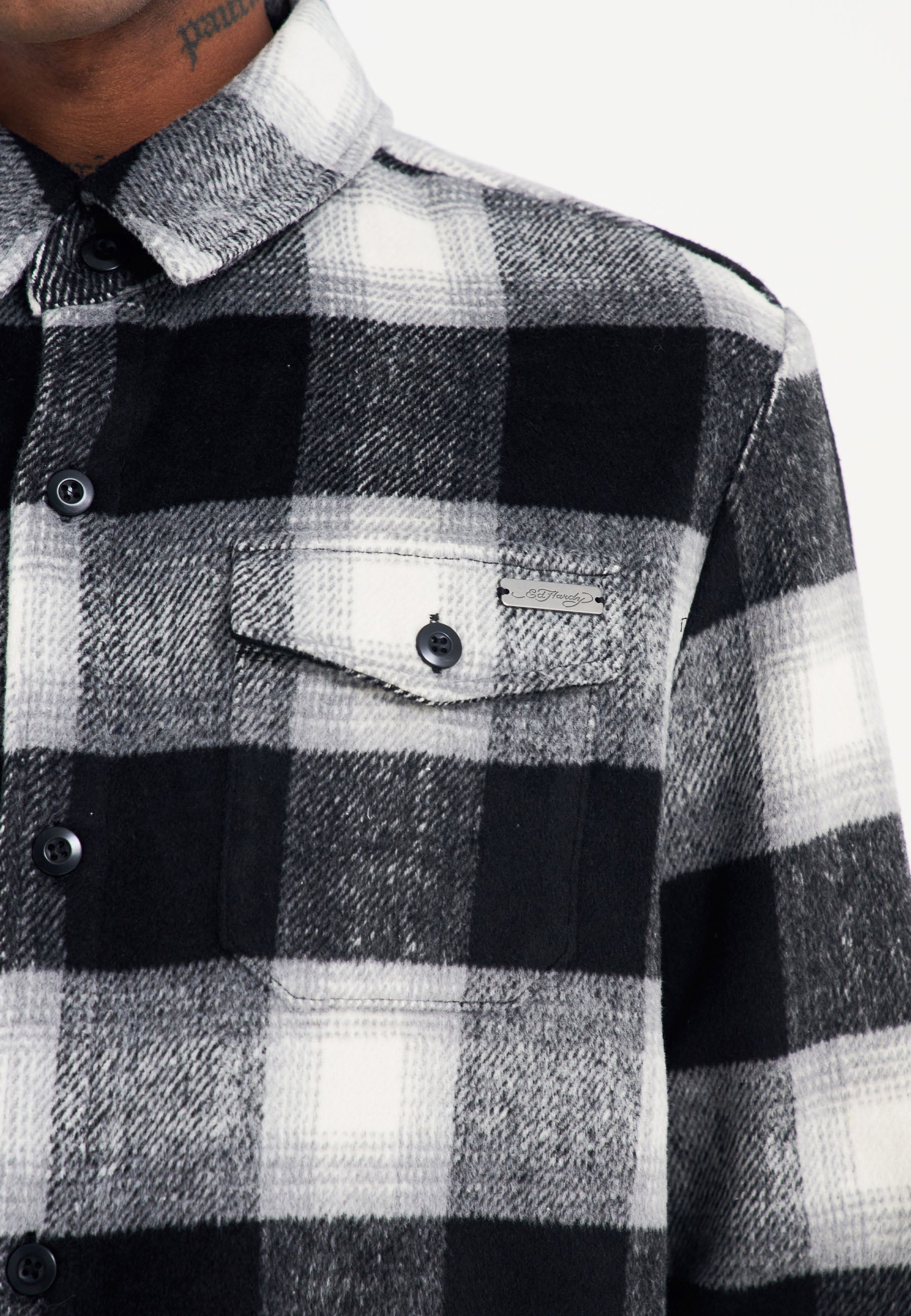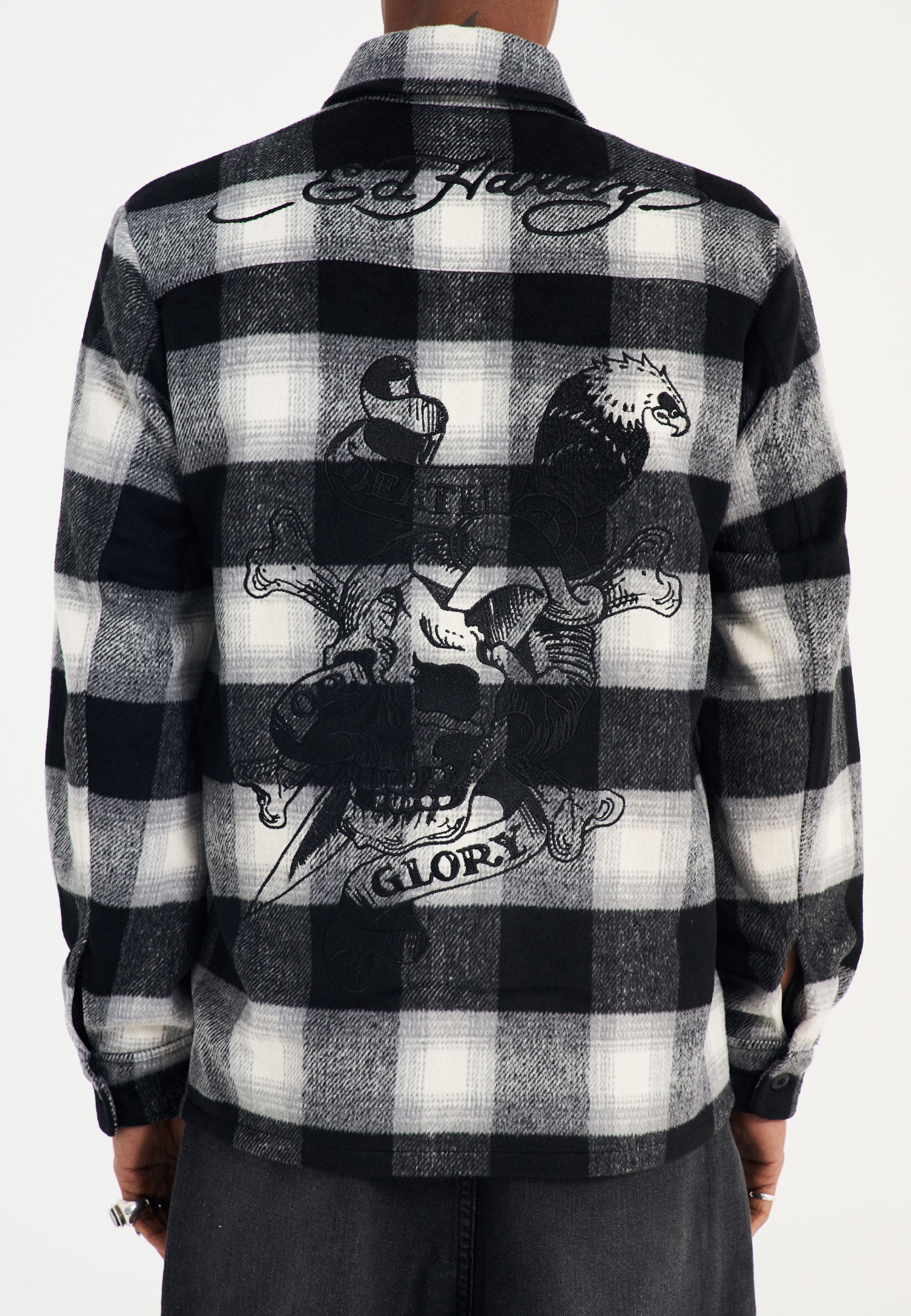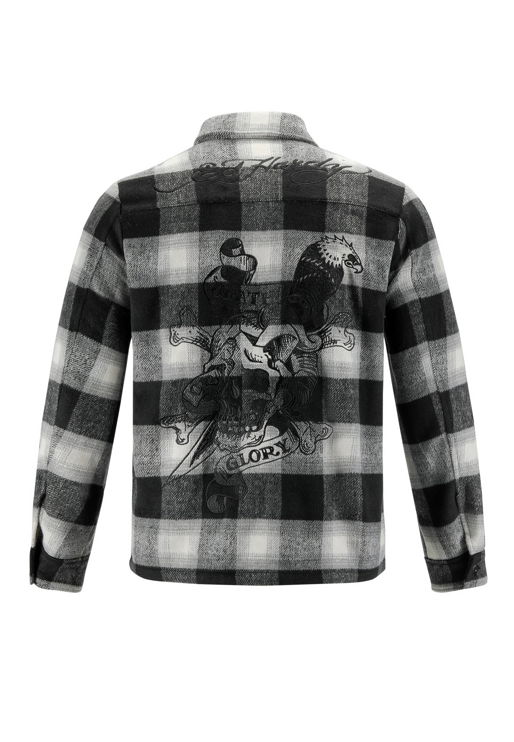 Made from heavyweight brushed check fabric, it features branded buttons and metal tab, dual chest pockets, and a high-definition embroidered graphic from Ed's archives across the back.