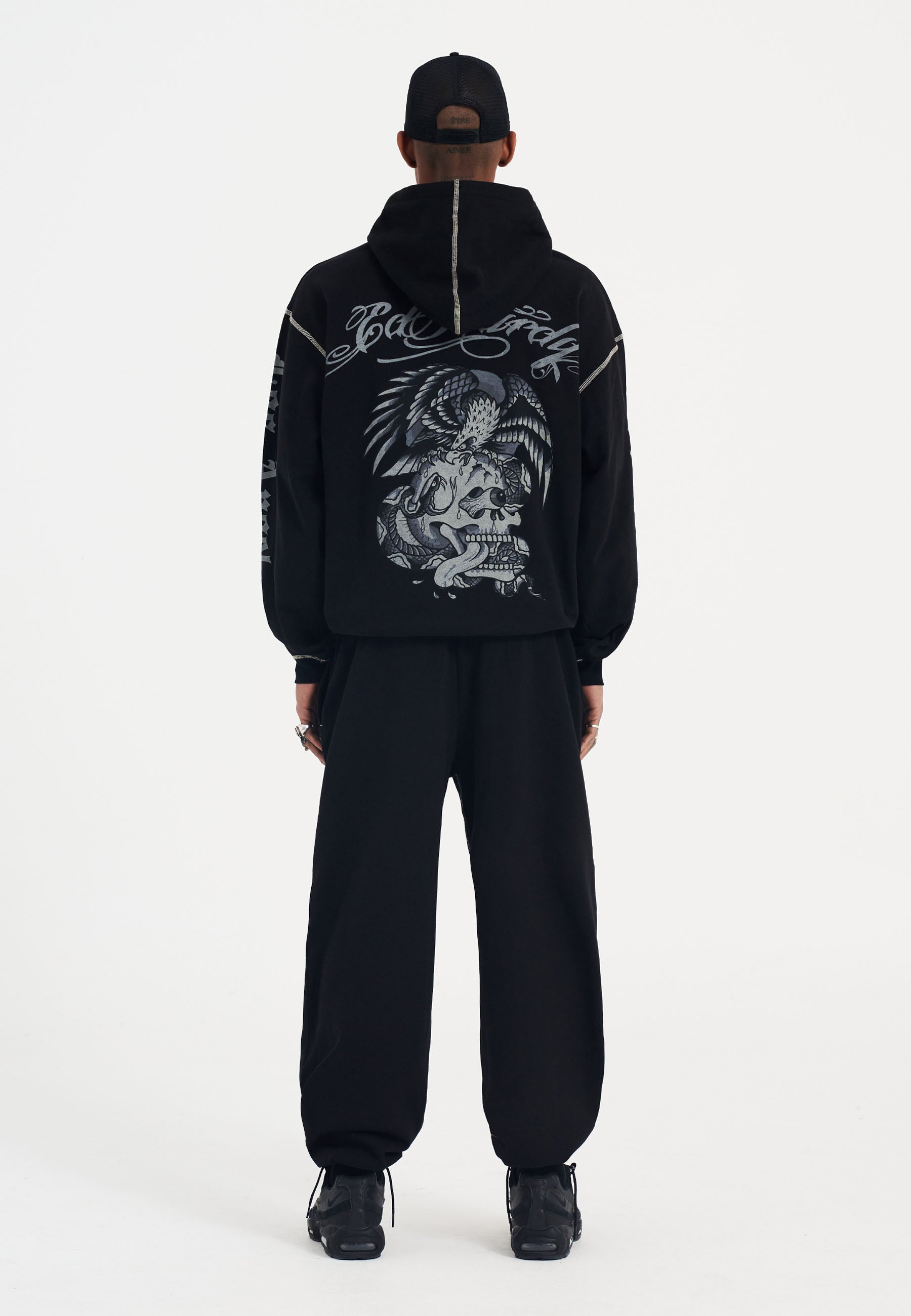 Mens Gothic Skull Fight Pouch Hoodie - Black