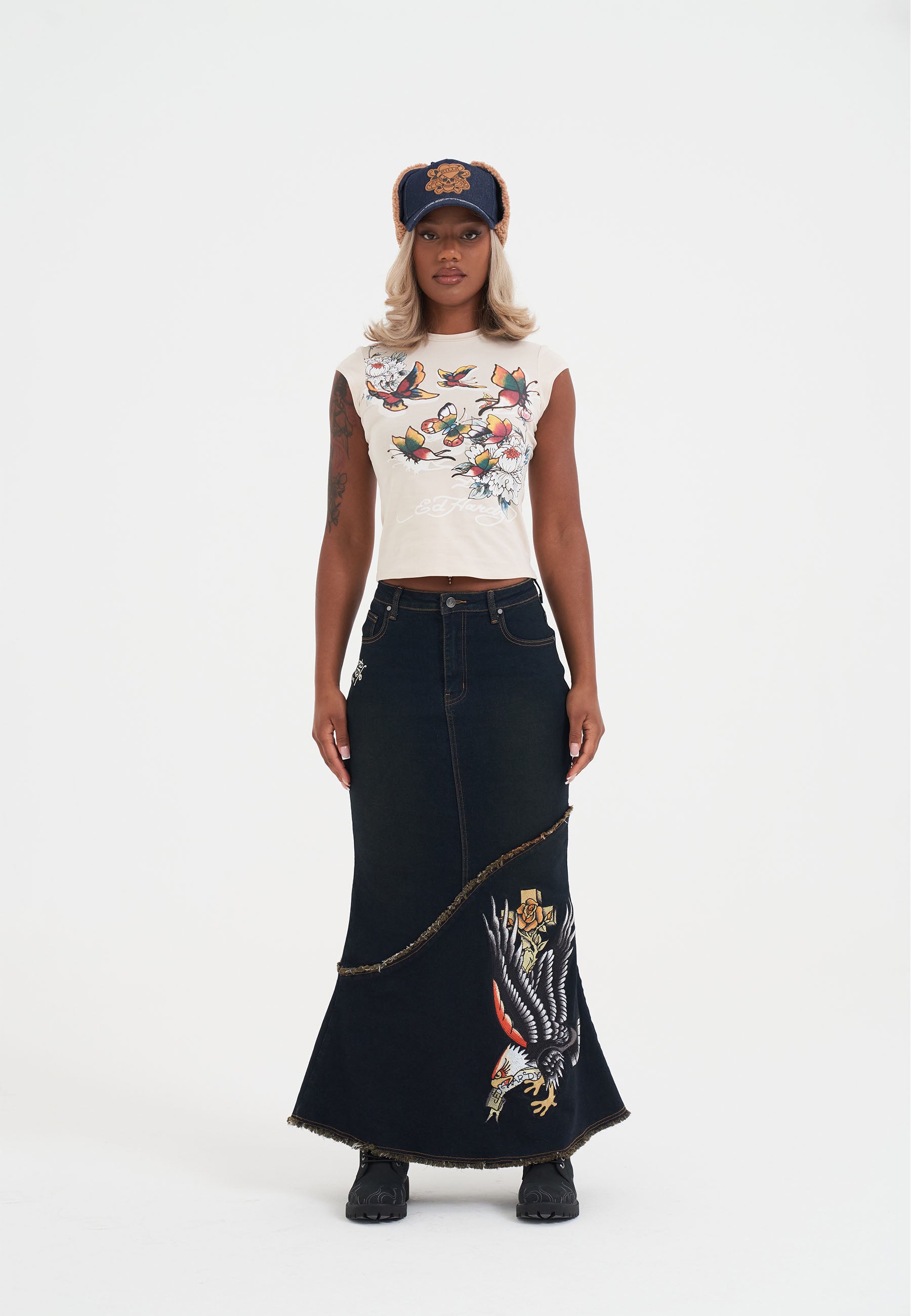 WOMENS BUTTERFLY FLORAL BABY T-SHIRT in Sand