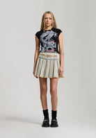 REGULAR FIT 100% COTTON BLEACH WASH FLORALS EMBROIDERY TO FRONT ED HARDY EMBROIDERY TO BACK MINI LENGTH EYELET DETAIL CONTRAST STITCH DETAIL SIDE ZIP FASTENING RAW HEM PLEATED DETAILING 100% COTTON