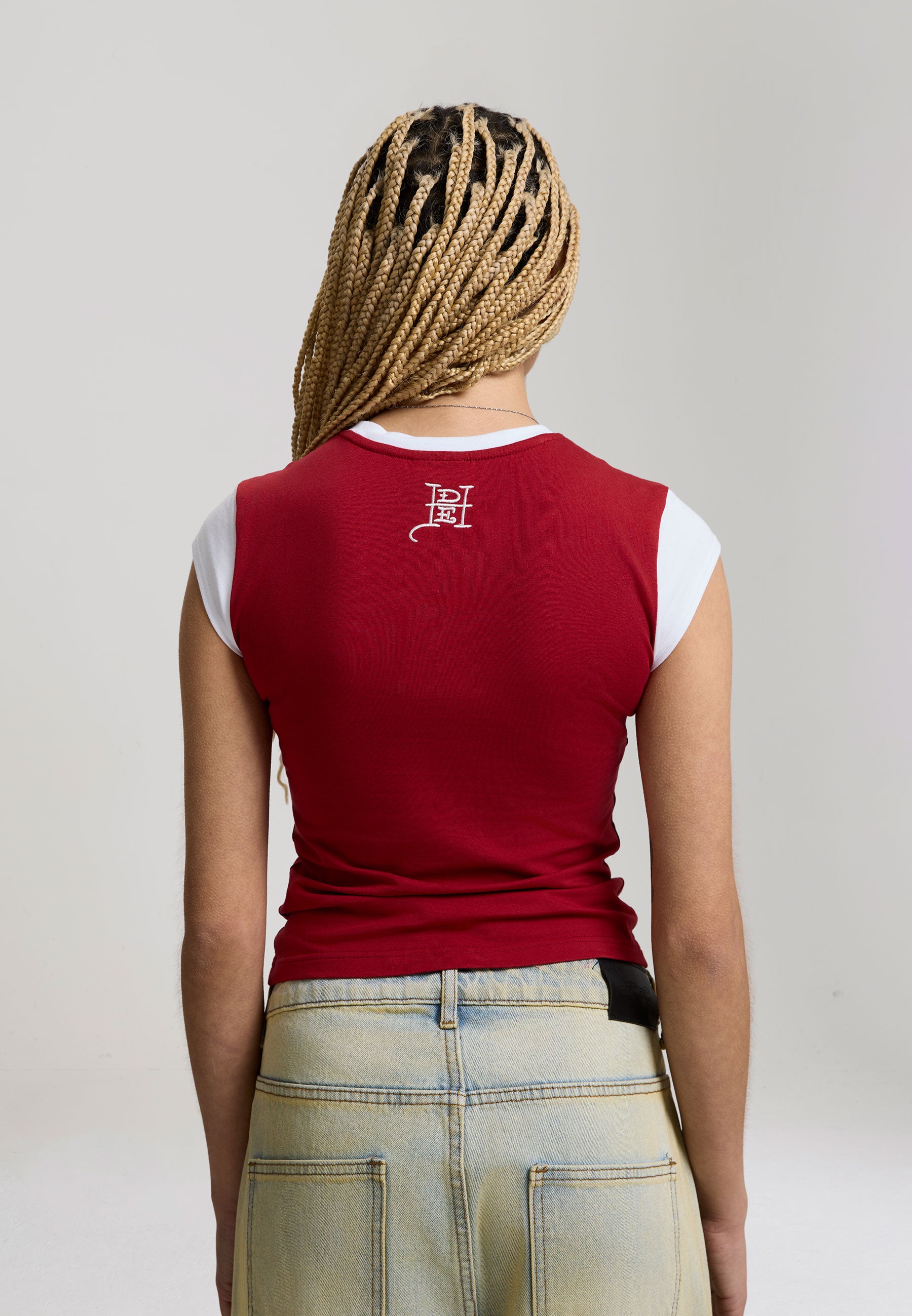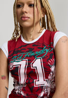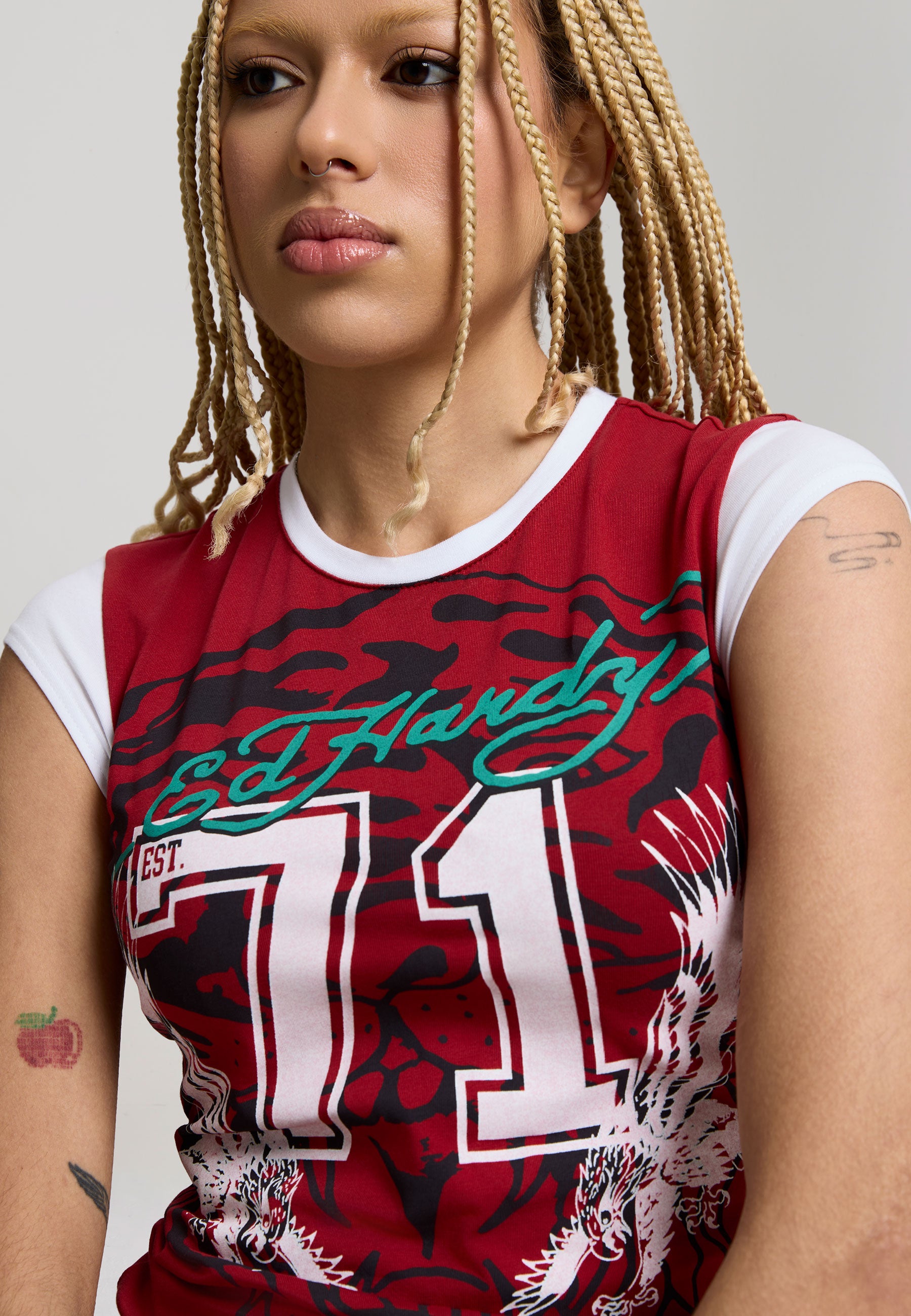 CAP SLEEVE SHAPE CONTRAST SLEEVE AND NECK PRINTED GRAPHIC TO FRONT EDH SIGN OFF TO BACK NECK COTTON ELASTANE MIX