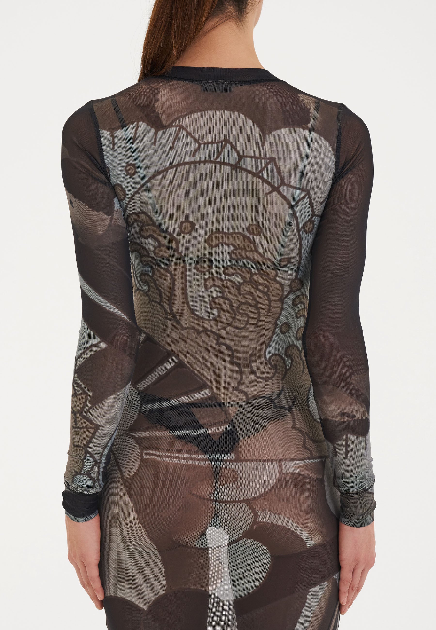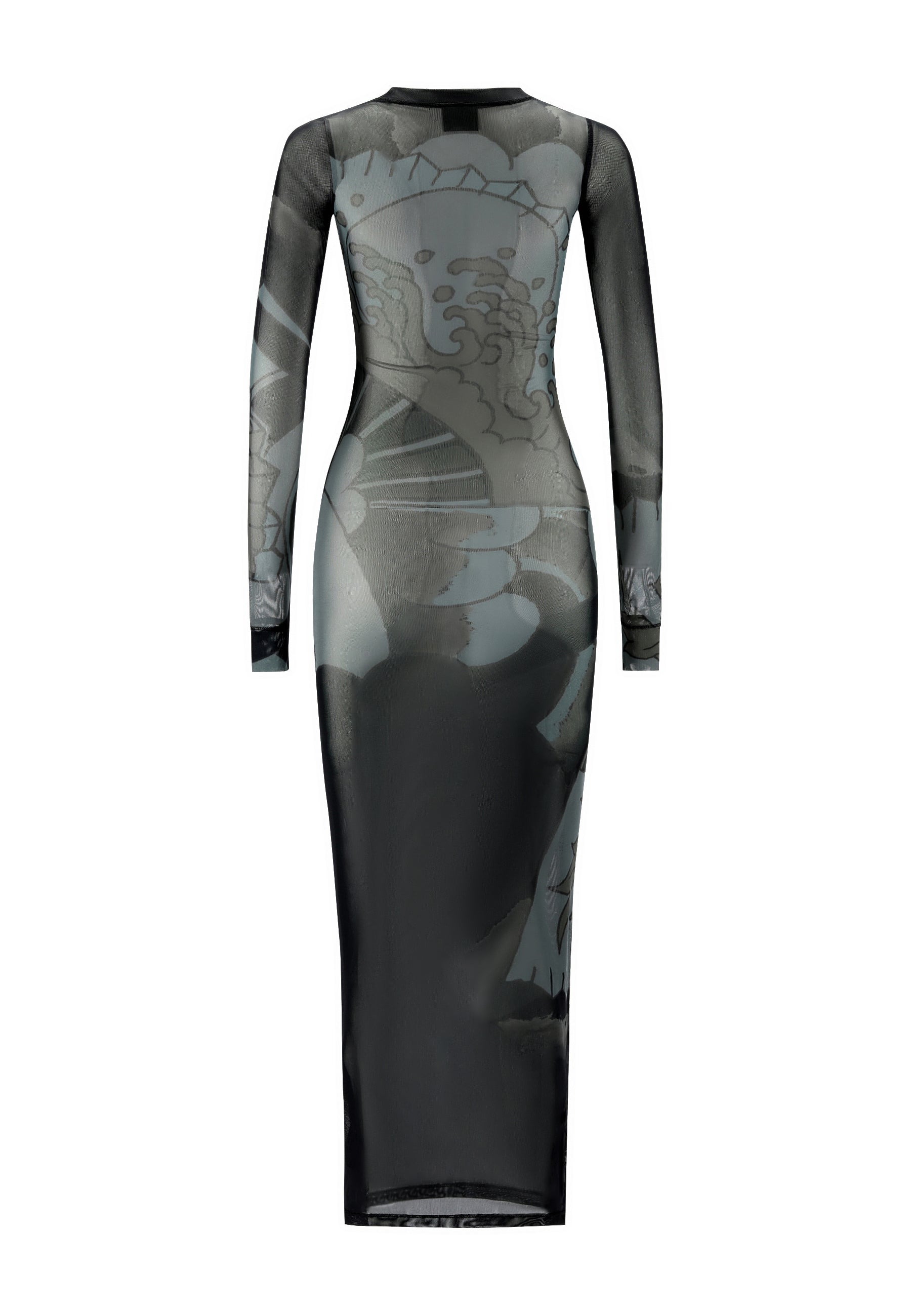 Dames Geisha Fan Mesh Maxi-jurk met lange mouwen - Zwart