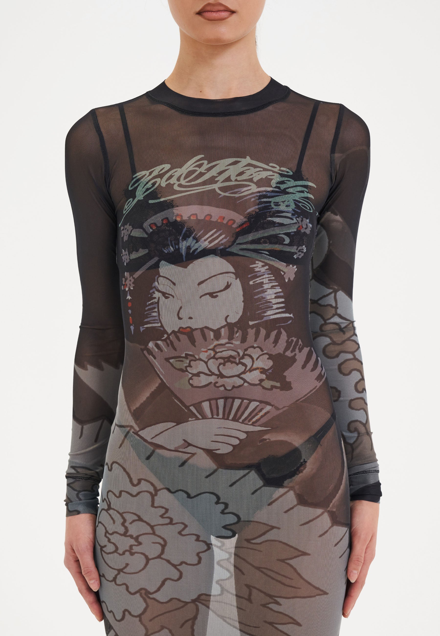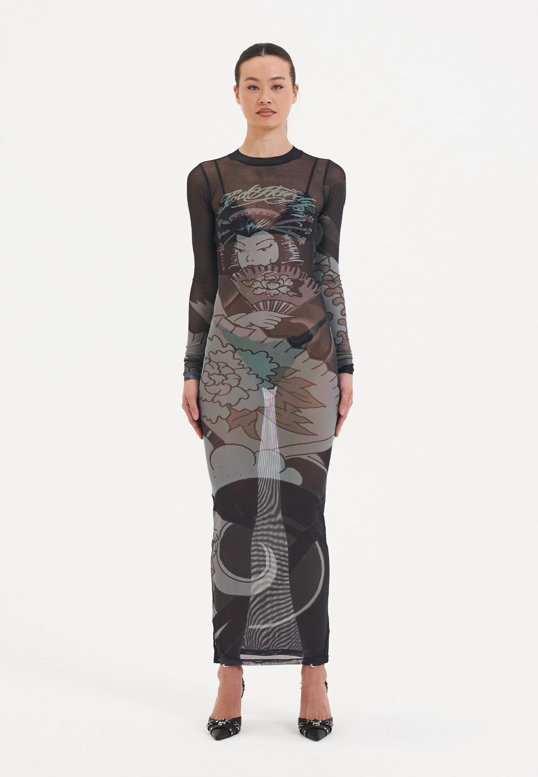 Je festivalfit heeft zojuist een grote upgrade gekregen. Maak kennis met de Geisha mesh maxi-jurk.