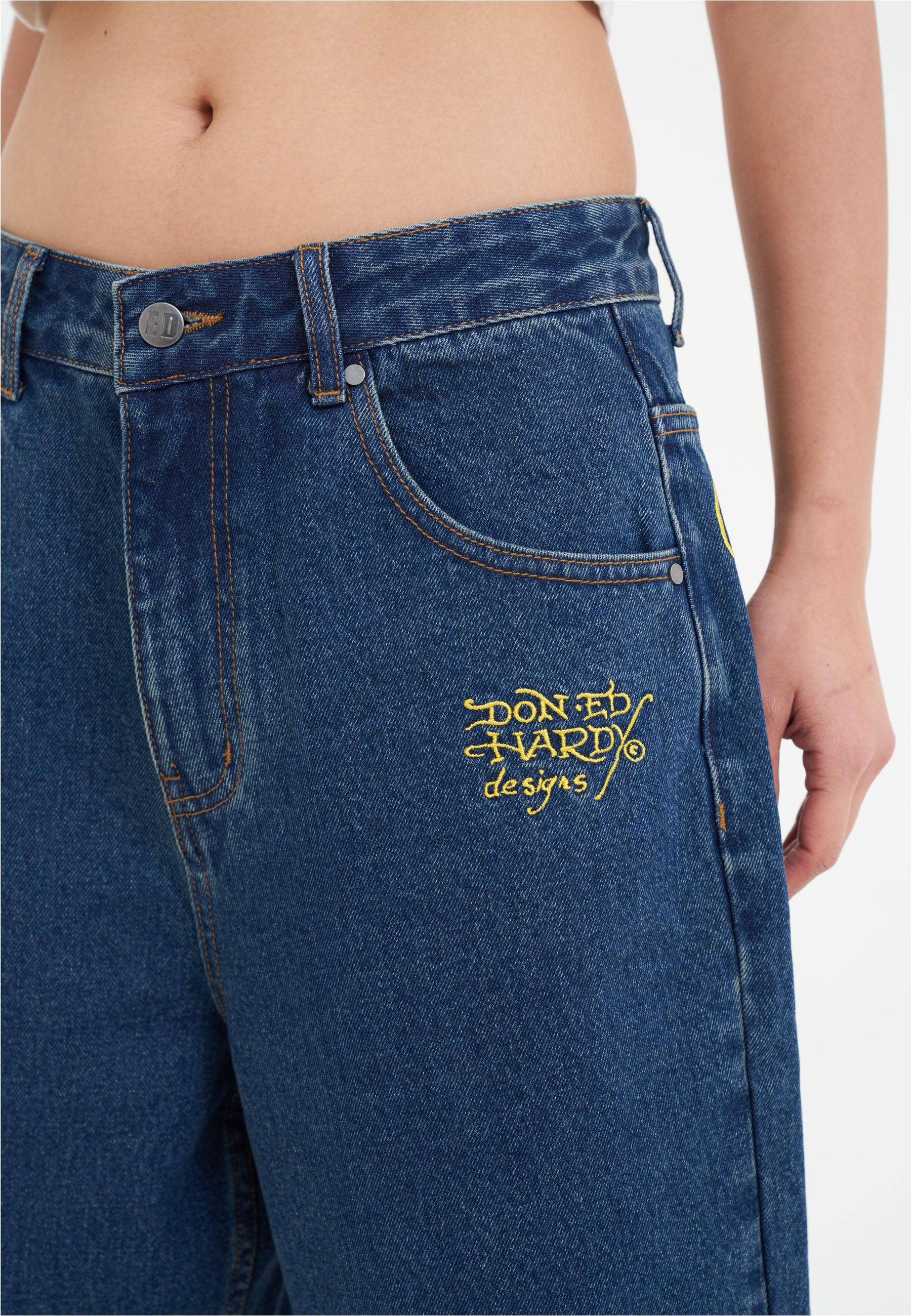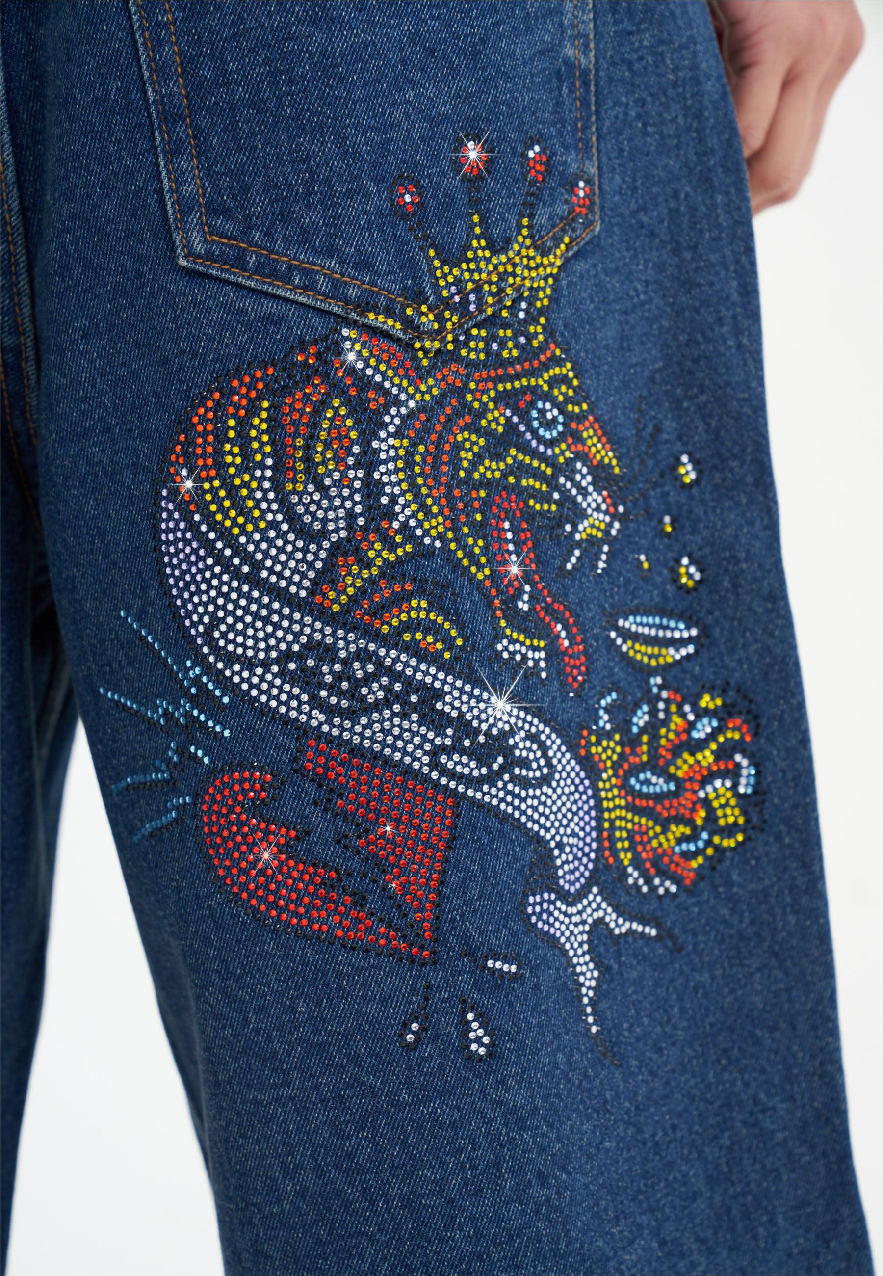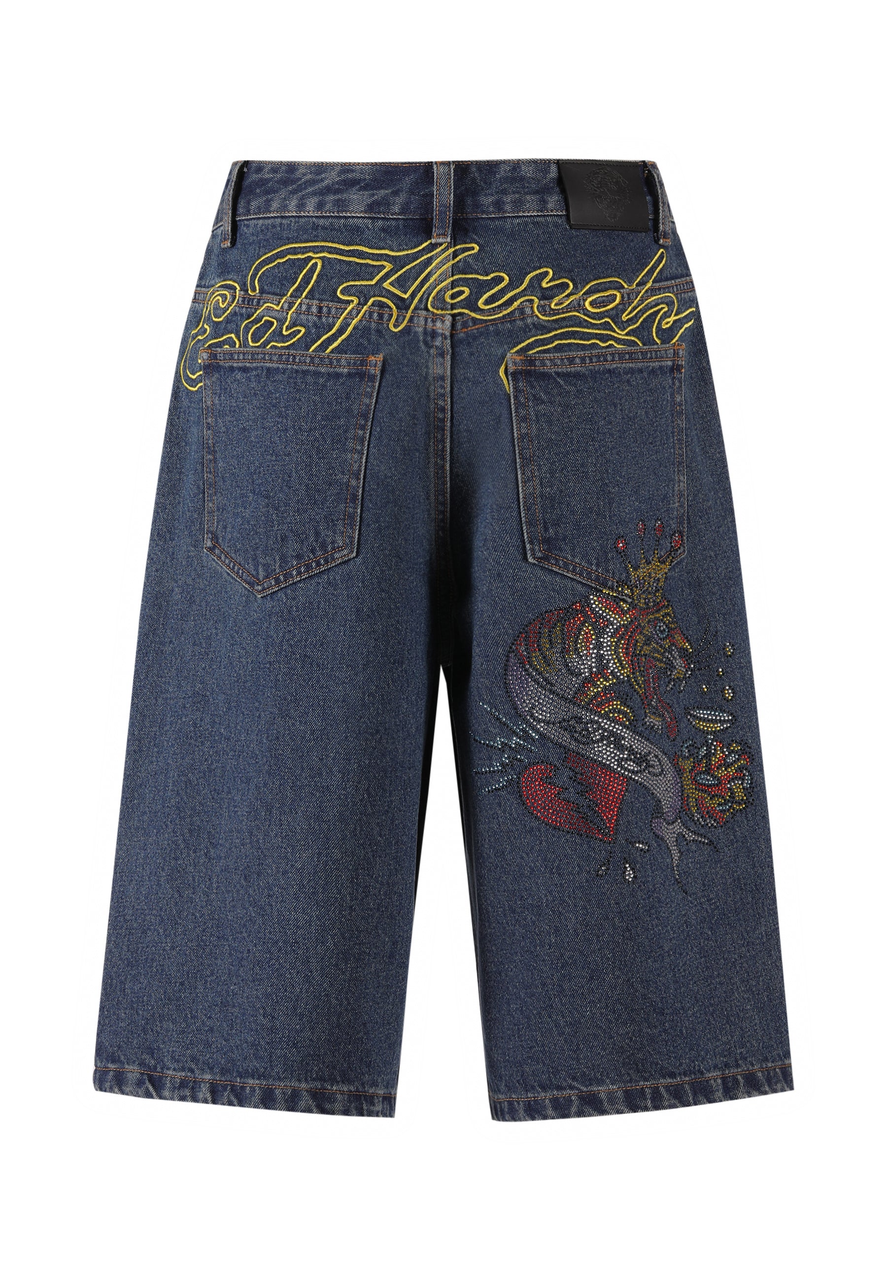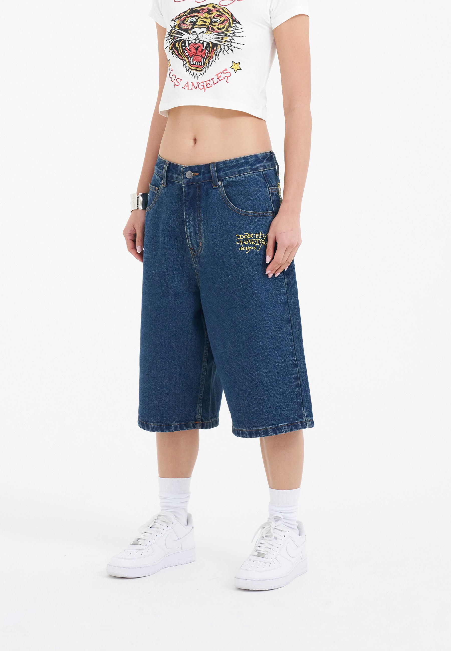 Dames Tiger King Diamante Denim Jorts Shorts - Indigo