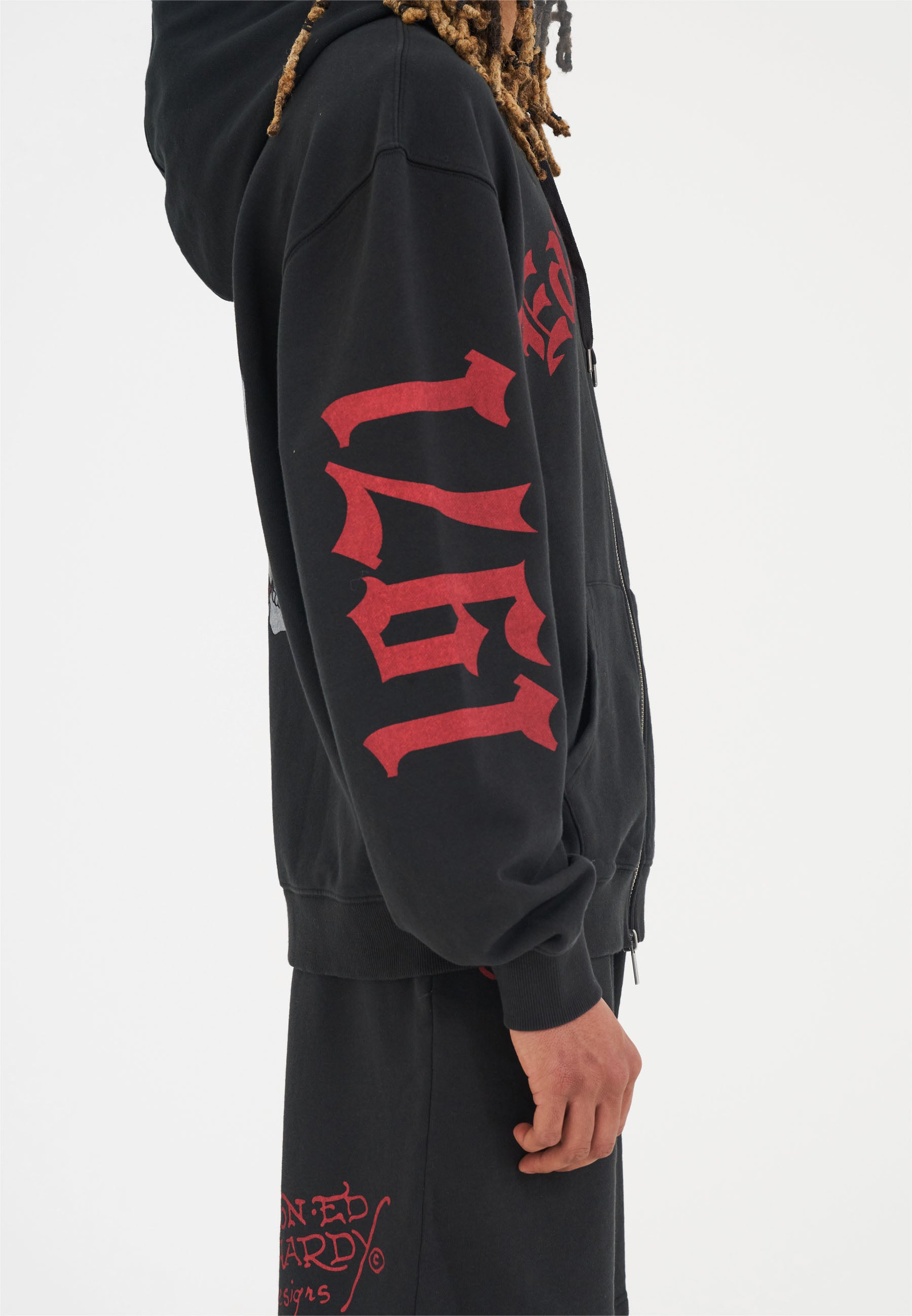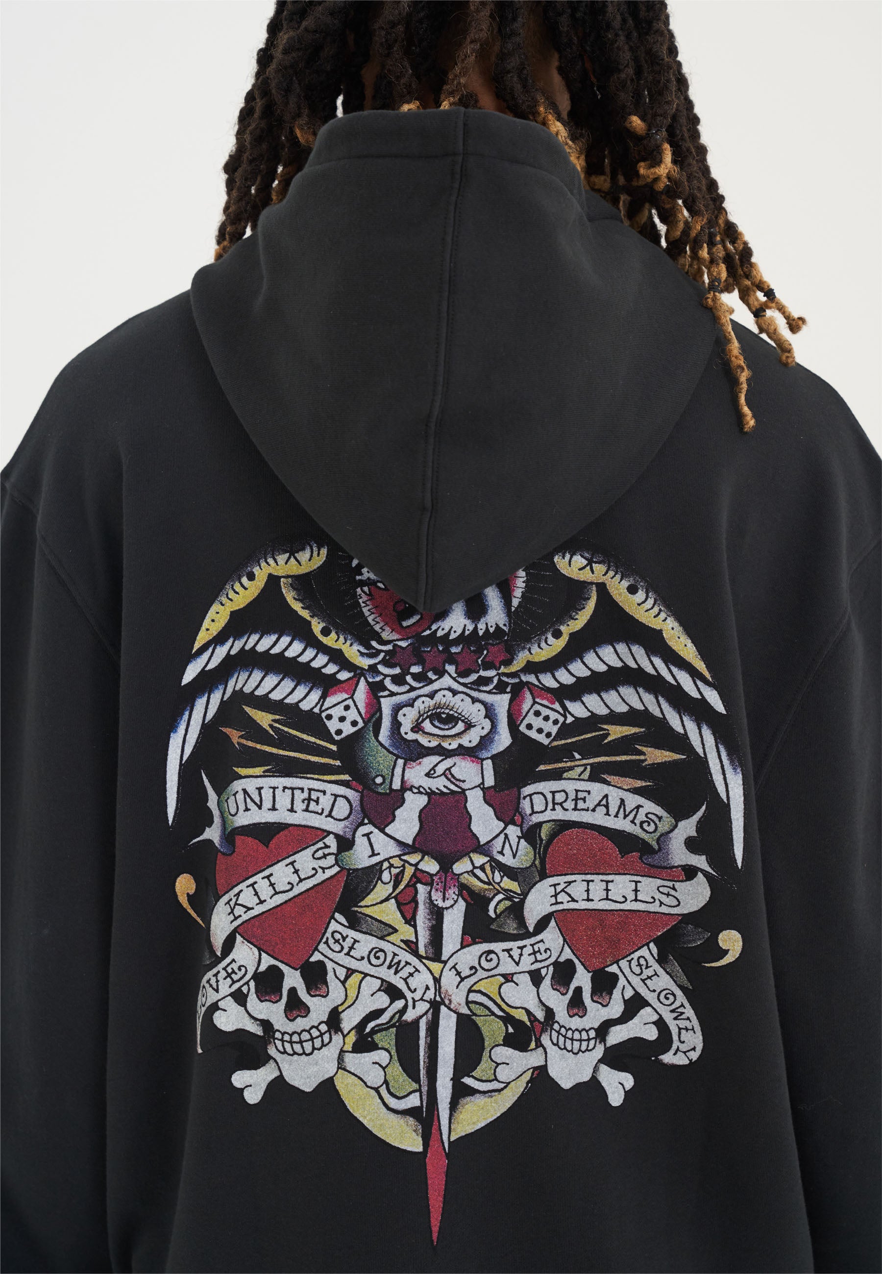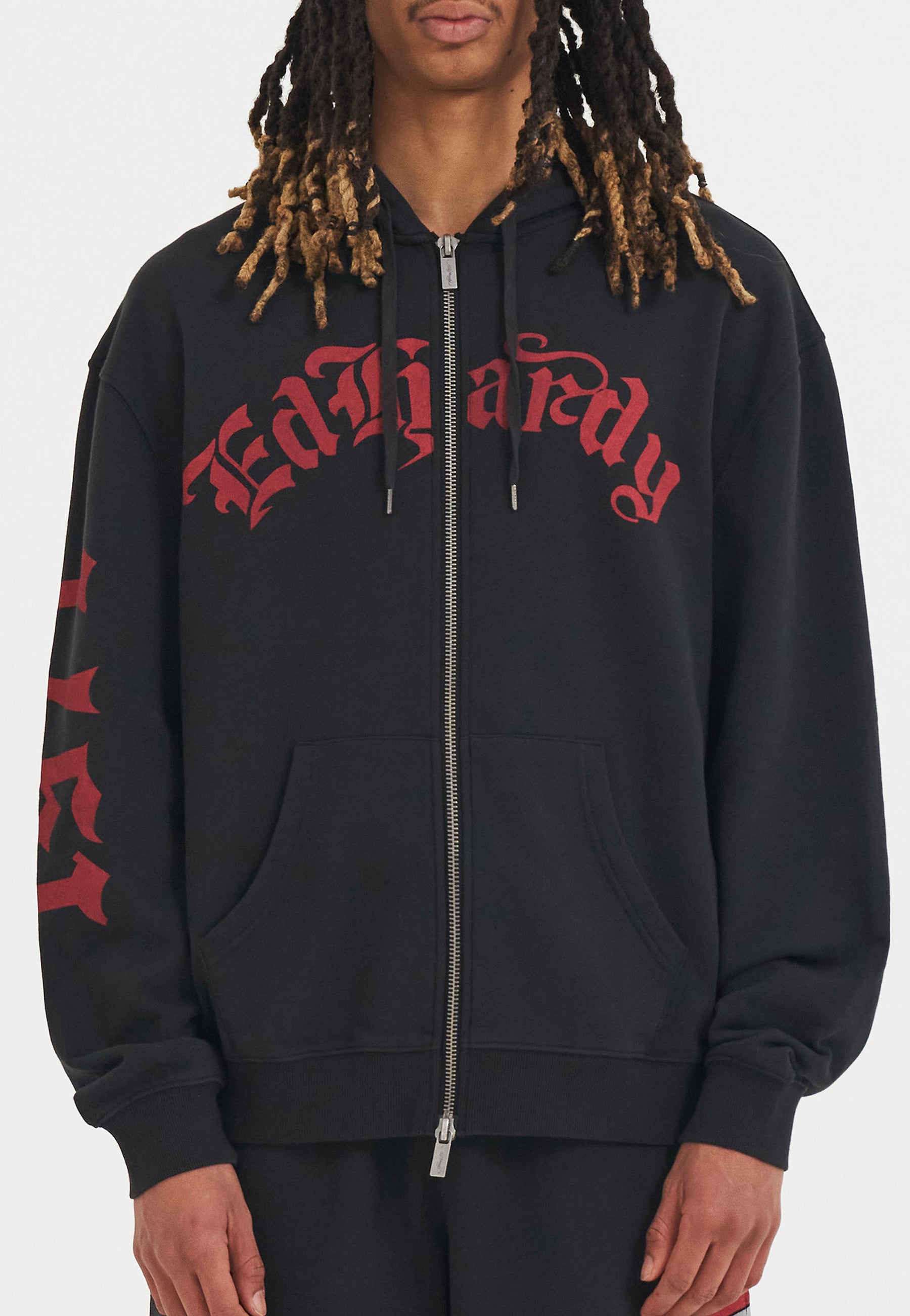 Heren abstracte liefde doodt langzaam grafische zip-thru hoodie - zwart