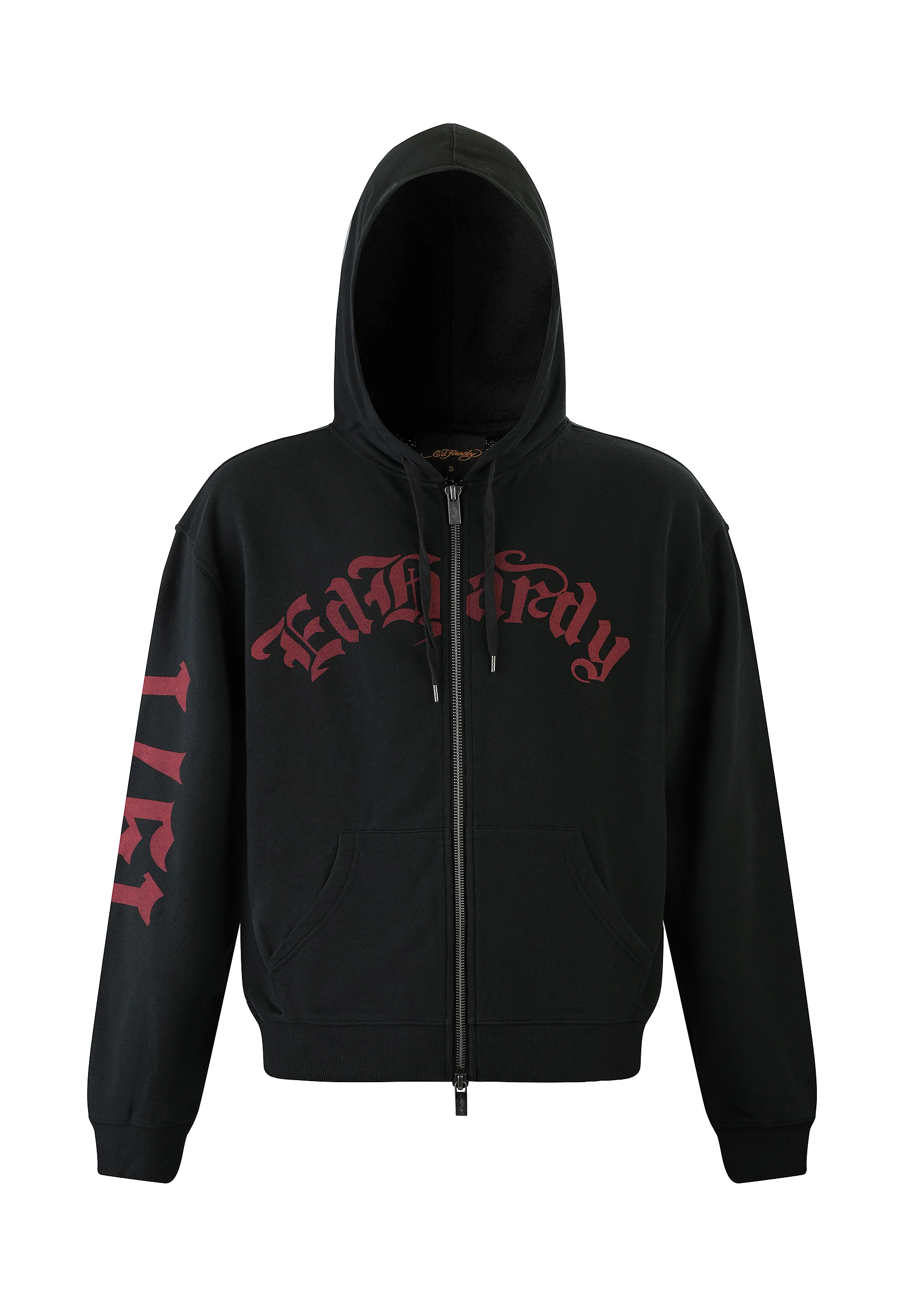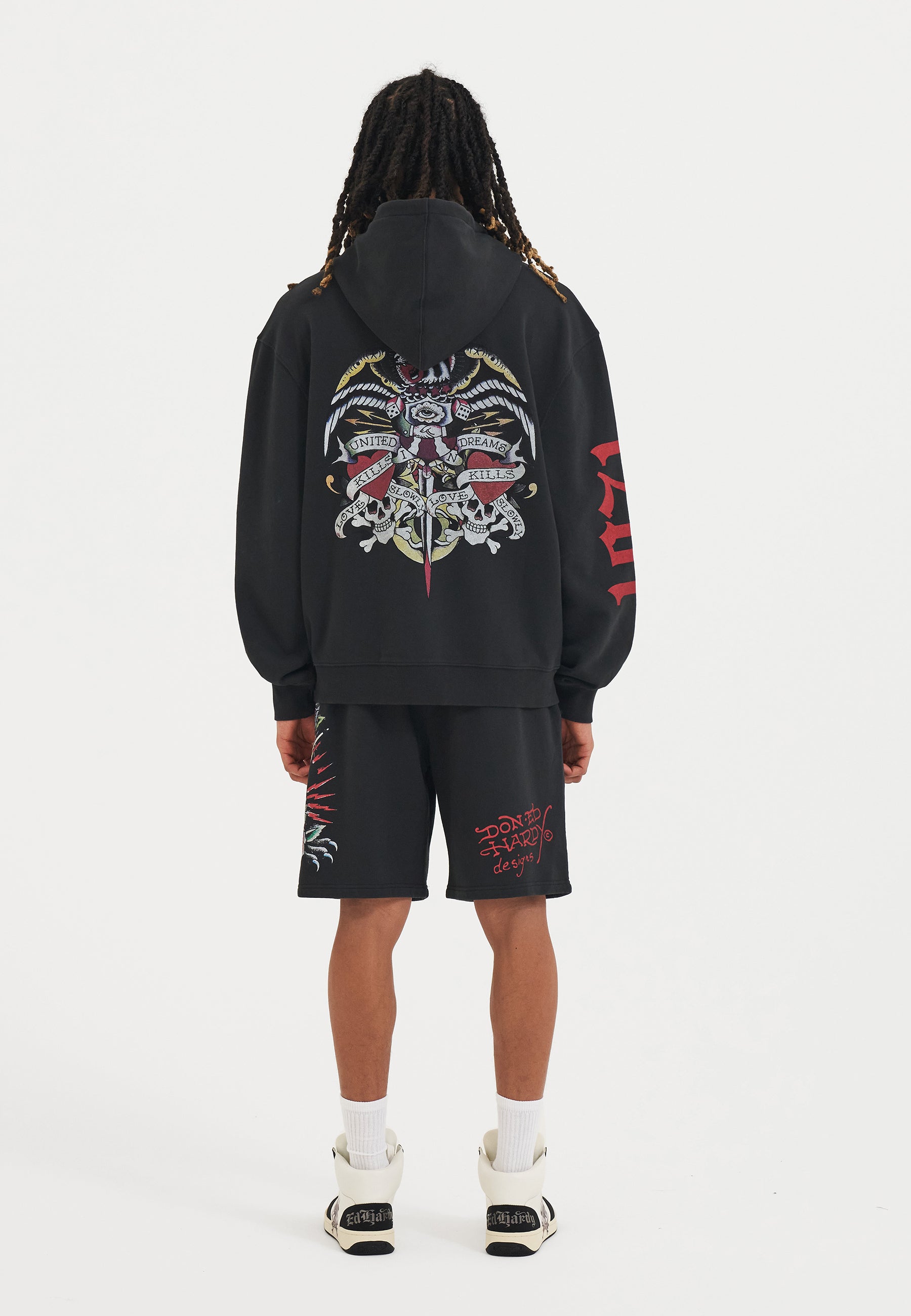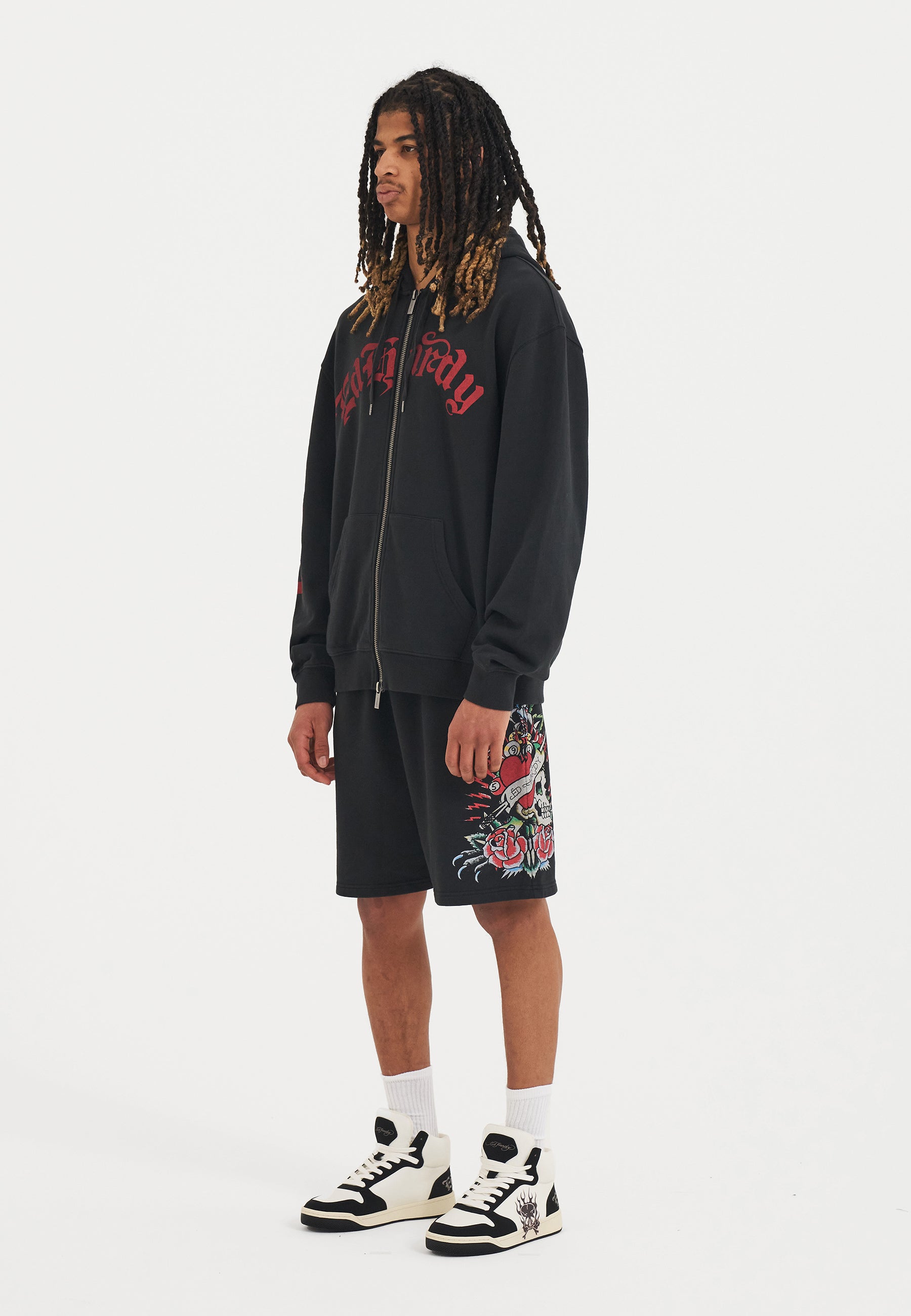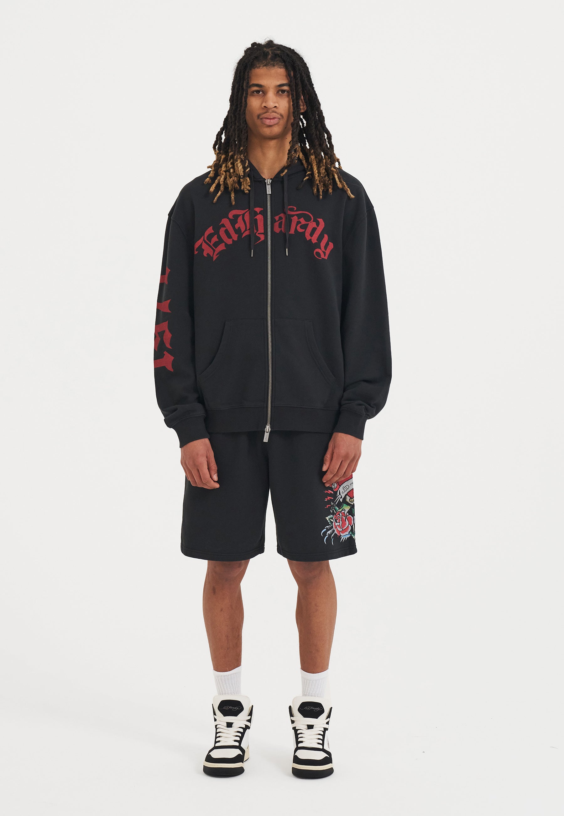 Heren abstracte liefde doodt langzaam grafische zip-thru hoodie - zwart
