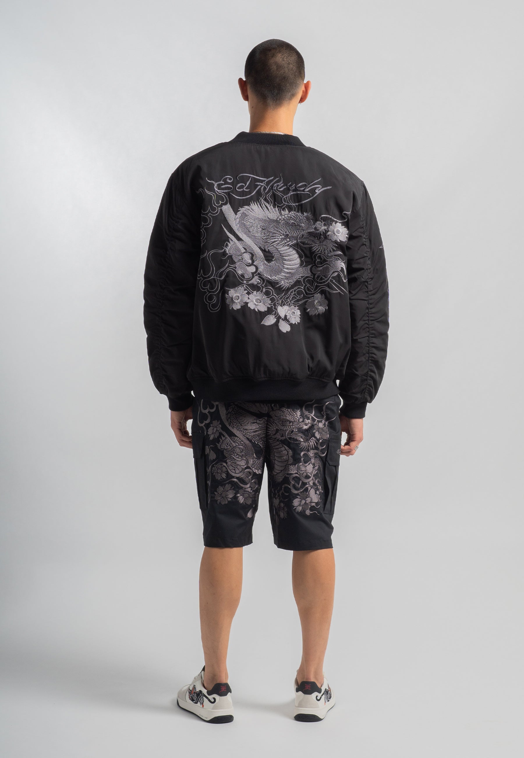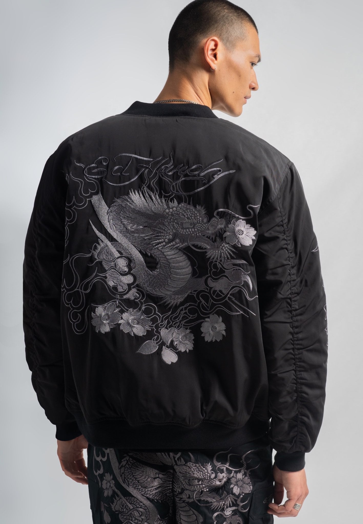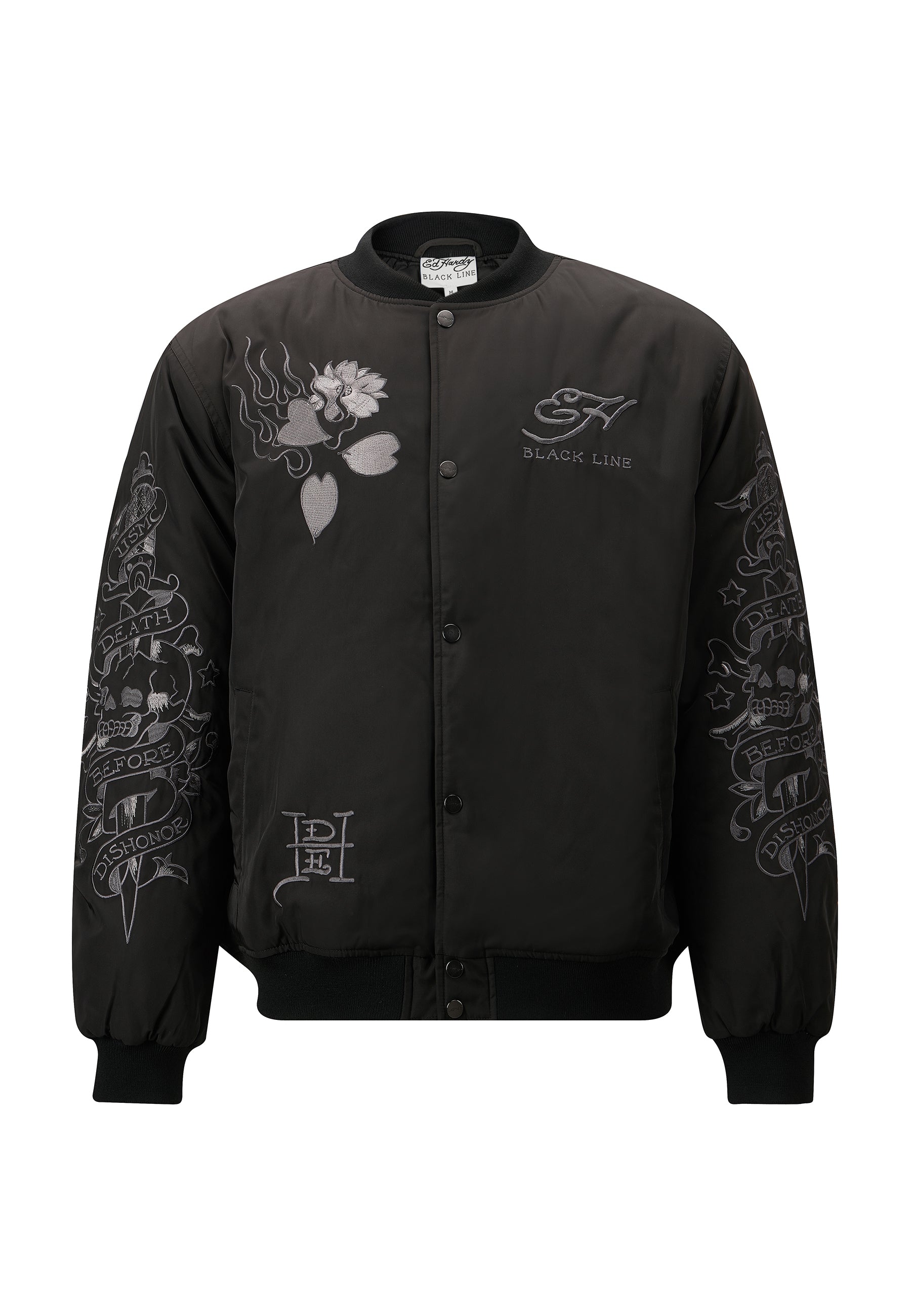 Dit premium exemplaar belichaamt Ed Hardy's talent voor het opnieuw uitvinden van iconische stijlen, waarbij ingewikkelde tonale borduursels en eersteklas vakmanschap worden gecombineerd.
